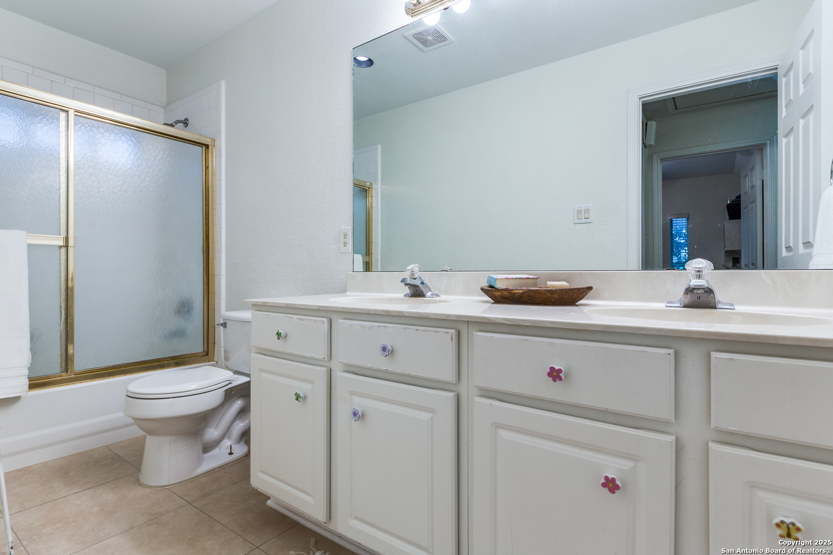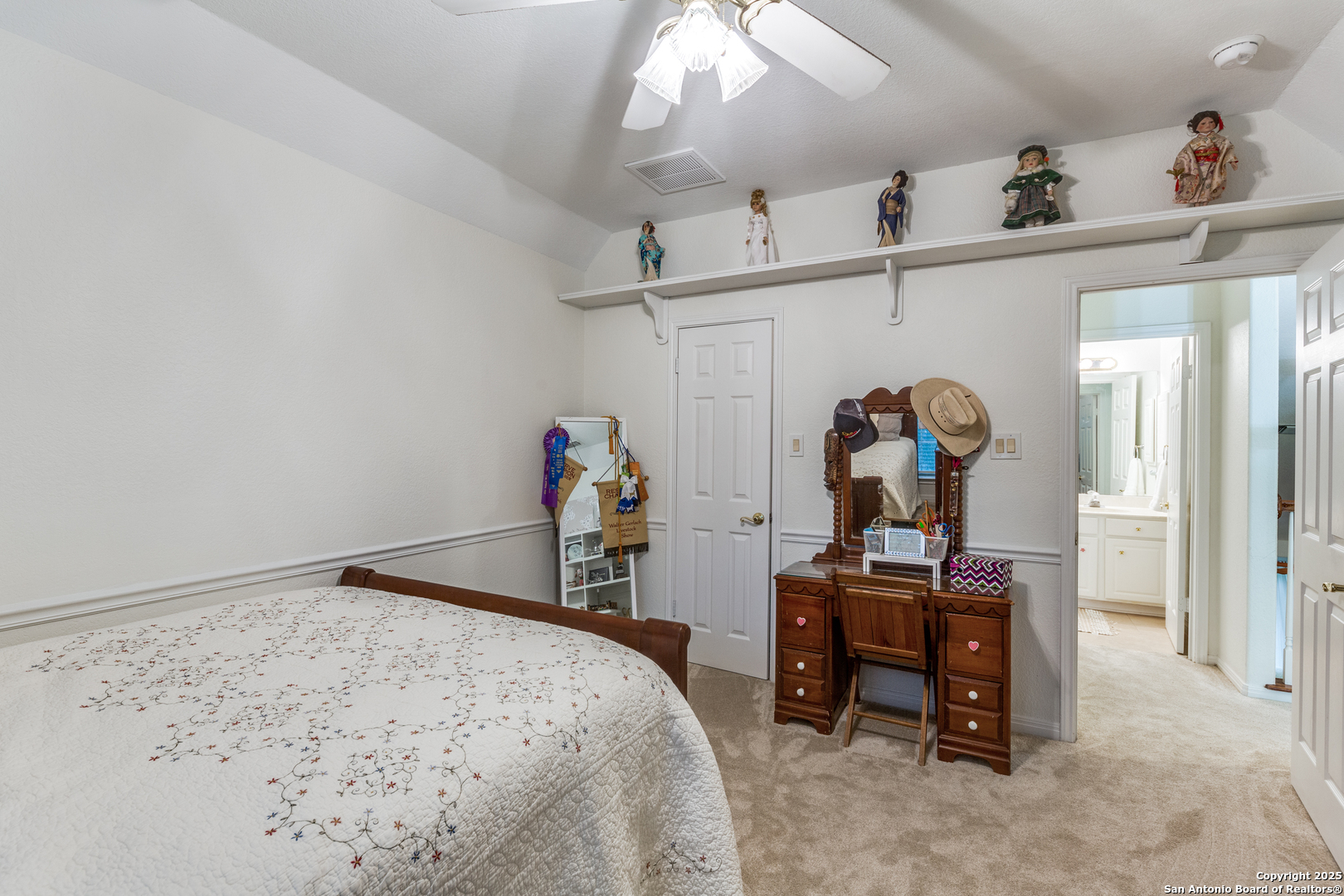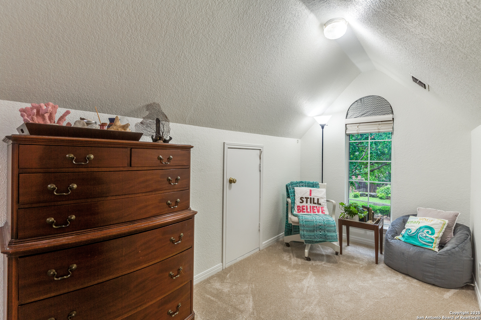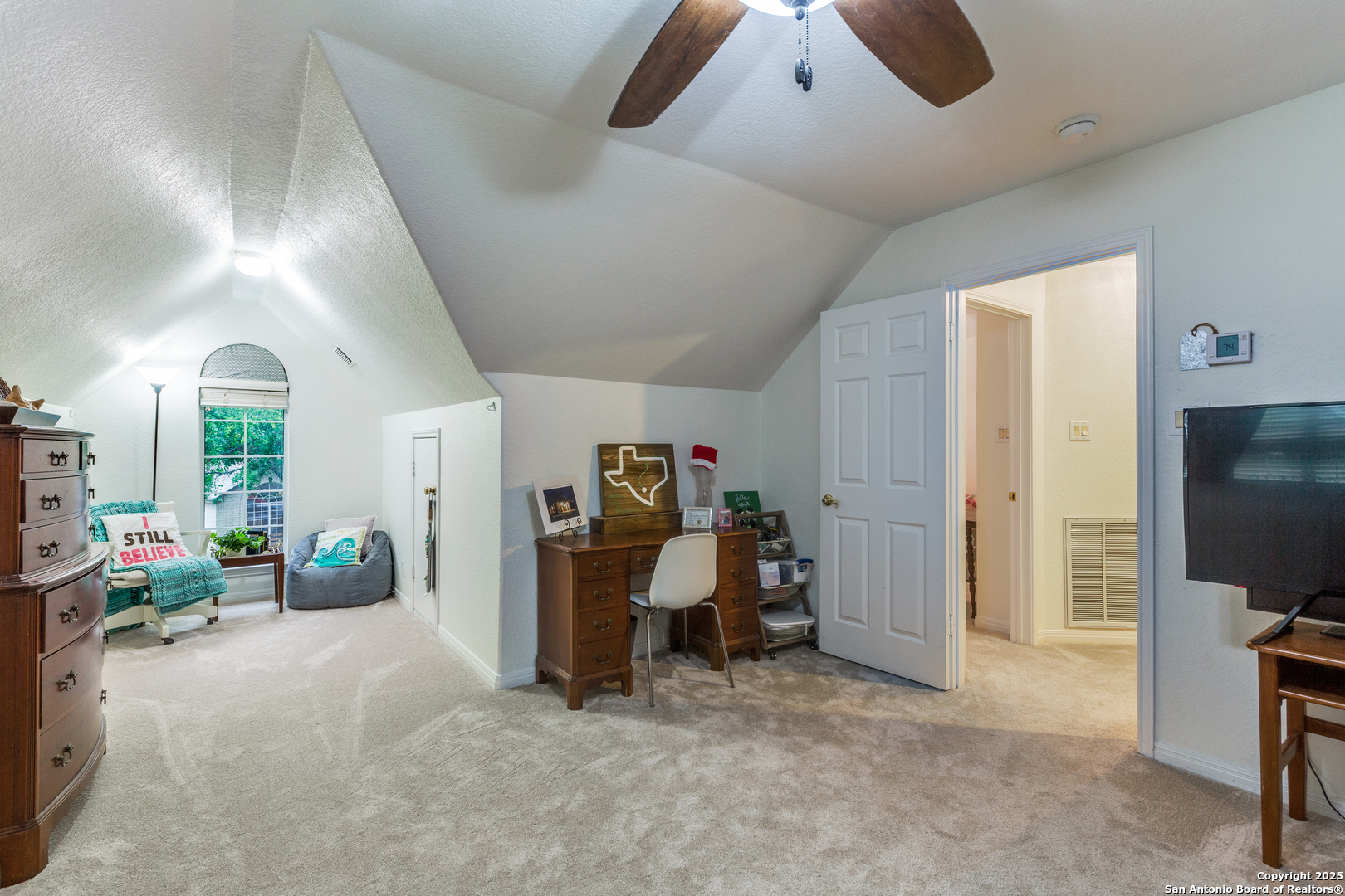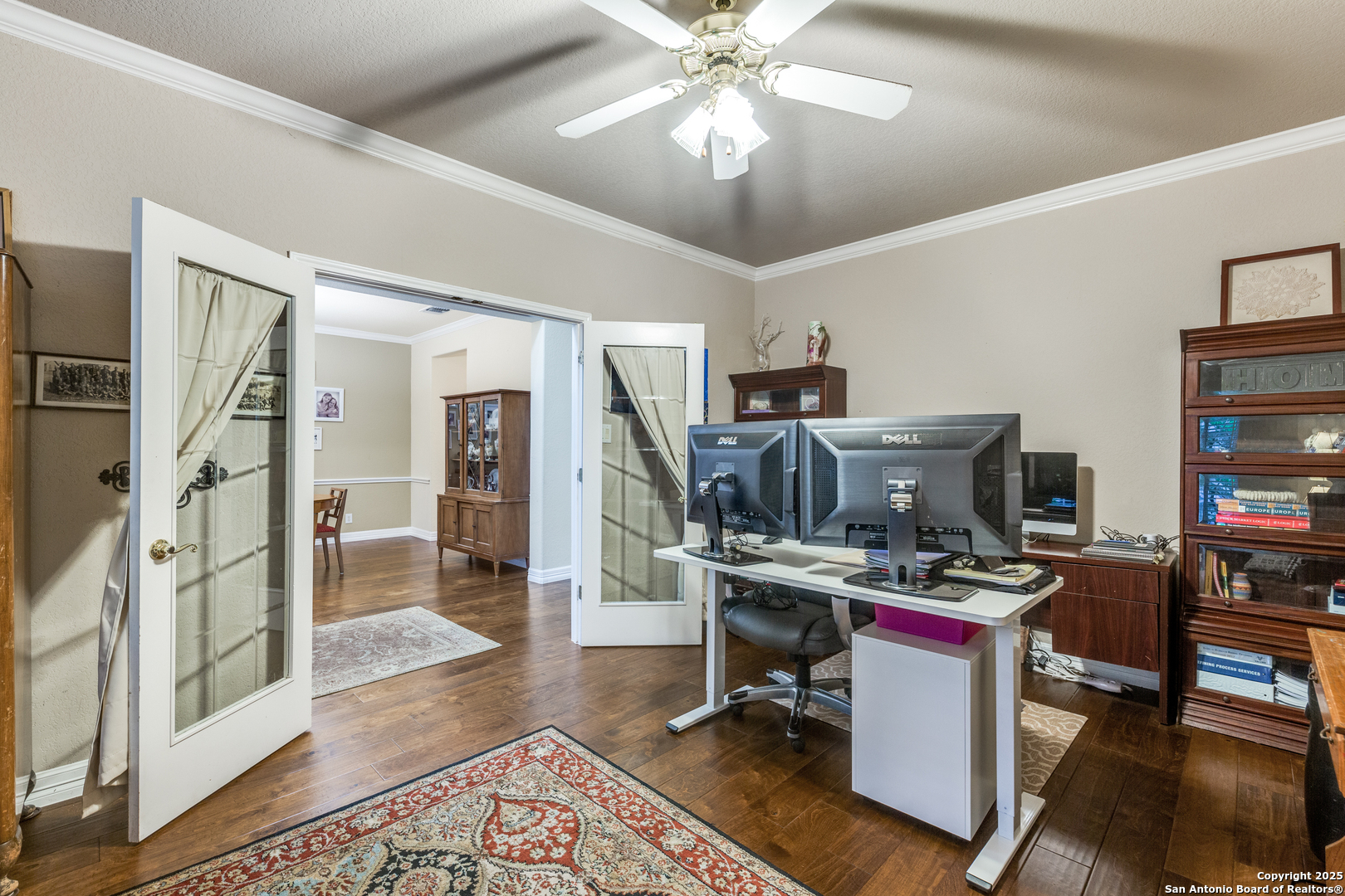 Nestled in the gated community of Cedar Springs in Helotes, this beautiful two-story 2628 sq. ft. home offers 4 bedrooms and 2.5 baths on a greenbelt lot. The spacious layout includes a formal dining room, a dedicated office, and a generous family room with stone fireplace-perfect for entertaining. The kitchen features granite countertops and overlooks the main living space with rich hardwood flooring. The primary bedroom is conveniently located downstairs and boasts a stunning remodeled en-suite bath with updated shower, tub, countertops, tile, and fixtures. Upstairs, you'll find three large bedrooms and a full bathroom. One of the bedrooms includes attic access and is already plumbed for a potential additional bathroom. The fenced backyard provides a serene retreat, with the lot extending to the creek bed for added privacy and space. Enjoy the fantastic neighborhood amenities, including a pool, tennis courts, clubhouse, and a park/playground. Located just minutes from H-E-B, Home Depot, and nearby shopping centers, this home combines comfort, convenience, and community. ** swing in backyard does not convey**