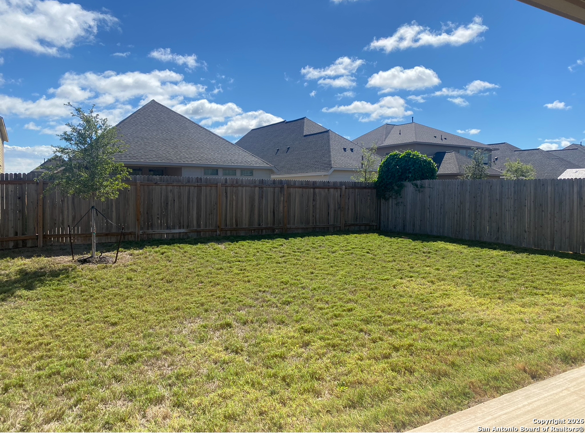 Stunning single-story home available at 9358 Boiling Rapid in the highly sought-after Kallison Ranch community in Northwest San Antonio.This four-bedroom, three-full-bath home features a modern open-concept layout connecting the kitchen, dining, and living areas. The kitchen is fully equipped with stainless steel appliances, granite countertops, stylish white cabinetry, and brushed nickel hardware. Additional features include a washer and dryer, a water softener, stylish high ceilings, and upgraded modern fans throughout. The home offers several high-end amenities, including A master bath with a dual vanity, a garden tub, and a separate extended shower and a secondary bedroom with it's own full ensuite bath and an extended walk-in closet. Outdoor living features include a covered and extended backyard patio and fully fenced yard. Kallison Ranch community offers an ideal blend of tranquility and convenience, with seamless access to Loop 1604 and Highway 211, ensuring a swift commute to local shopping, dining, and entertainment. The neighborhood provides resort-style living with amenities such as two community pools, a pavilion with a fireplace, playground, playscape, and a gated dog park. 9358 Boiling Rapid is zoned to the highly rated Northside ISD schools, including an onsite elementary school. Schedule a tour of this exceptional home today!