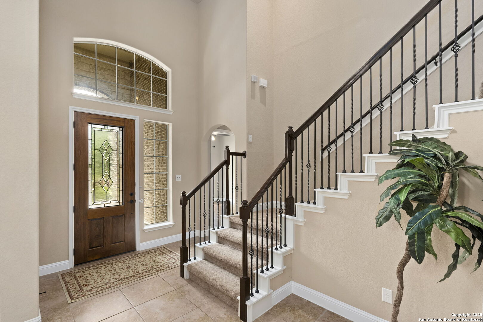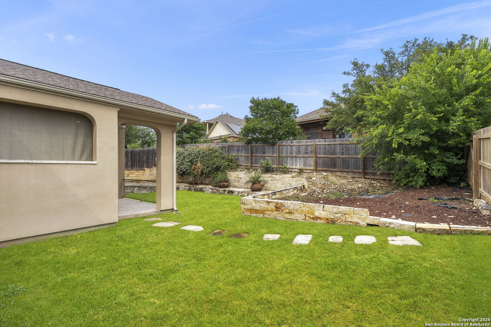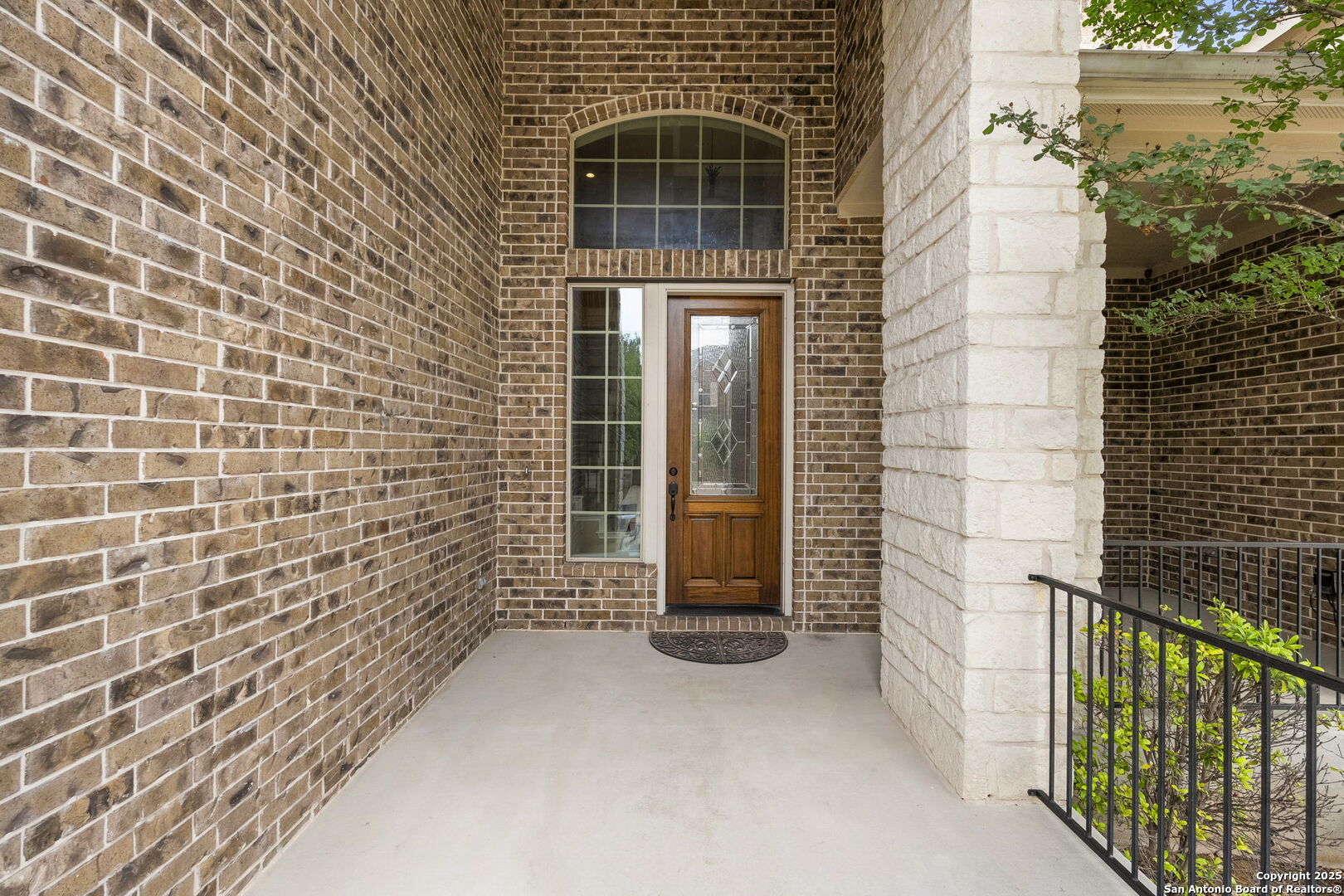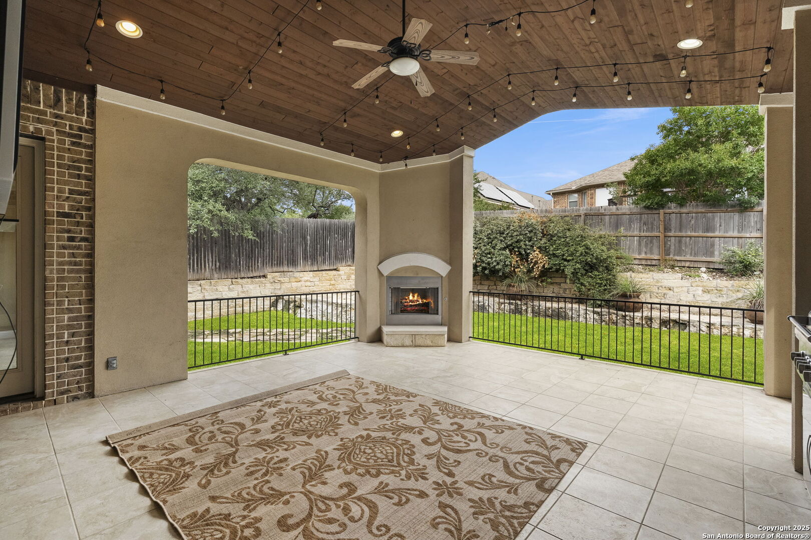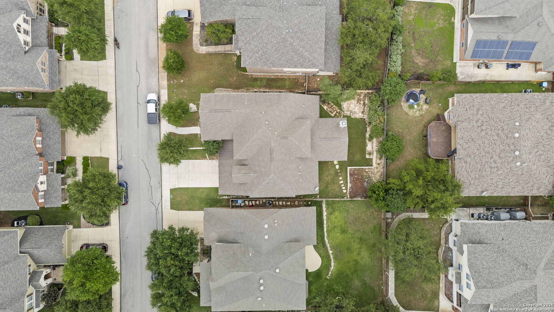 Stunning executive home in the prestigious gated community of Terra Bella! This spacious 4-bed, 3.5-bath residence offers over 4,000 sq. ft. of luxurious living space with a grand two-story entry, Juliet balconies, and an elegant stone/brick exterior. Enjoy a chef's kitchen featuring granite countertops, built-in stainless steel appliances, gas cooking, large island, and upgraded cabinetry with crown molding and under-cabinet lighting. The spacious primary suite is located downstairs and includes his-and-hers closets and an upgraded walk-in shower. Upstairs, find a large game room, media room, and two bedrooms with a Jack-and-Jill bath. Another spacious bedroom separate from the others. A dedicated study, formal dining room with courtyard access, and open-concept living areas complete the interior. Outdoor living shines with a 15x19 covered patio with fireplace, sink, stainless steel grill, and cedar ceiling-plus a large 17x14 exterior storage area. Additional features include Elfa shelving in closets, pre-wired surround sound, water softener with reverse osmosis, two fireplaces, high ceilings, and a two-car garage. Located in highly rated NEISD and fantastic neighborhood amenities: pool, clubhouse, park & playground. Welcome home!