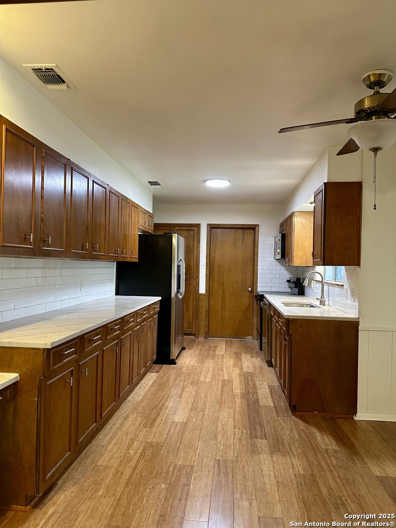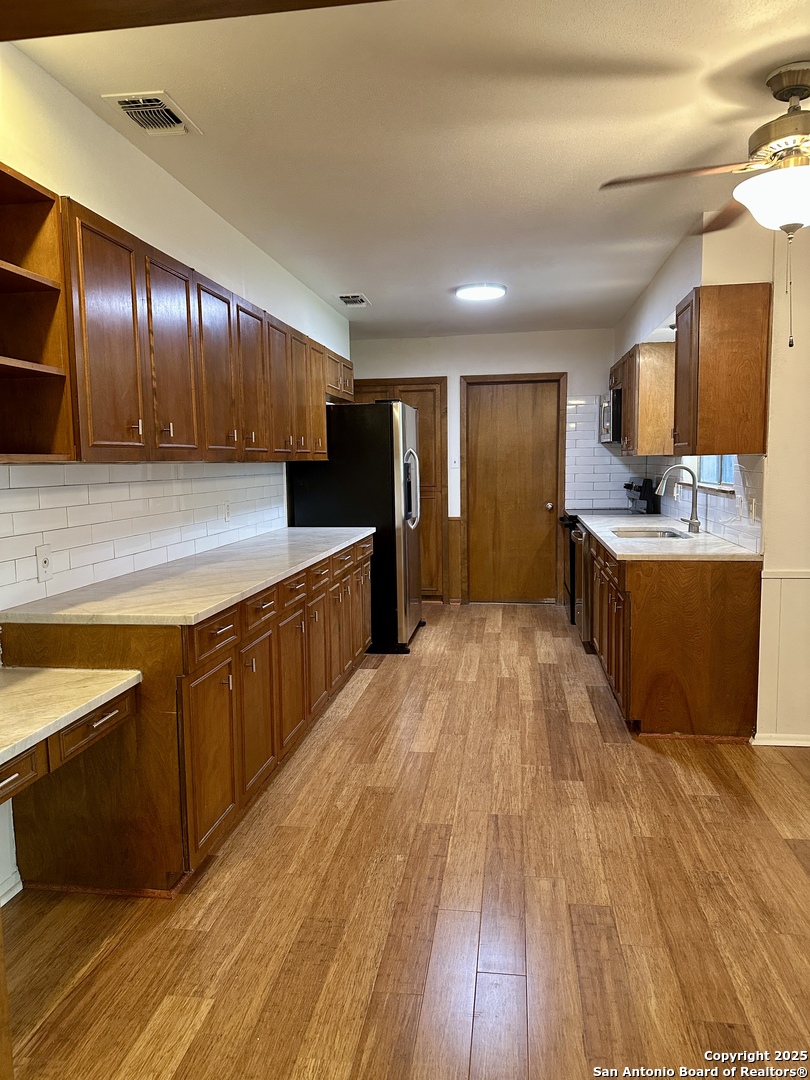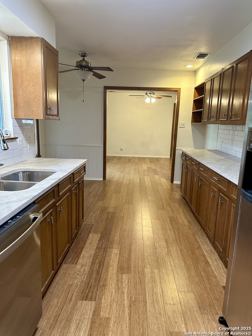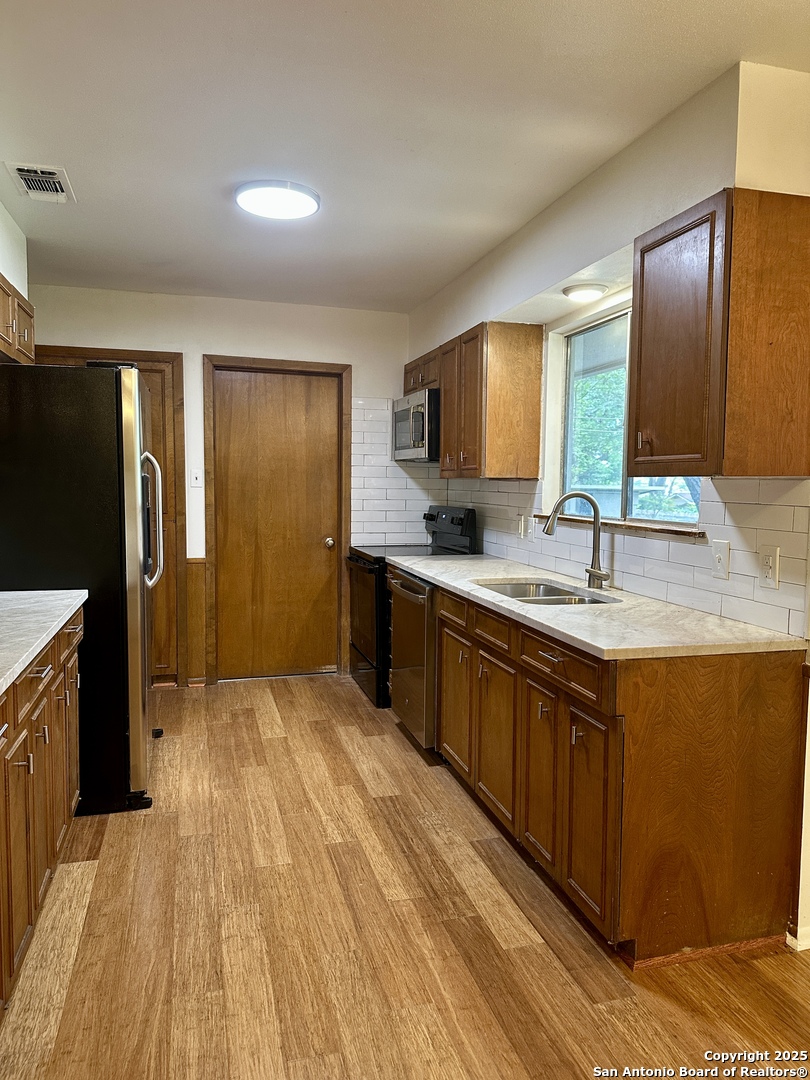 Centrally Located Home with Yard Maintenance Included! Highlights: Yard maintenance included in rent | Located in the highly rated NEISD school district Welcome to this lovely, centrally located home featuring a charming xeriscape courtyard that offers great curb appeal and low maintenance. Inside, you'll find fresh interior paint, bamboo wood flooring, and quartzite countertops in the kitchen and bathrooms. The kitchen is a standout with plenty of counter space, ample cabinetry, and all appliances including a stove, microwave, dishwasher, and refrigerator. A built-in desk in the breakfast area provides a convenient space for daily tasks. The home includes a formal living and dining area at the front, as well as a comfortable family room with a wood-burning fireplace that opens to the kitchen-ideal for gatherings and entertaining. An oversized laundry room includes washer and dryer and has new tile flooring. Easy access to the backyard from laundry room. The primary suite features a walk-in shower and walk-in closet, while two additional bedrooms share a nicely sized secondary bathroom. Step outside to a large covered patio, spacious backyard, mature trees, and a storage shed-perfect for enjoying the outdoors and additional storage. Pets considered on a case-by-case basis with owner approval. This move-in-ready home offers comfort, space, and convenience-schedule your showing today!