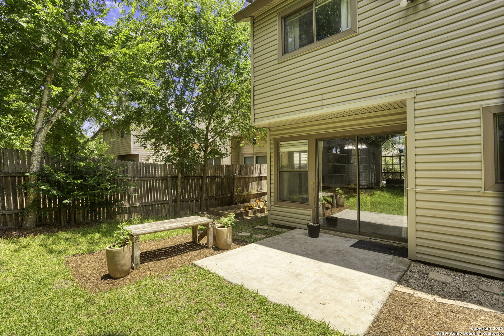 Charming 2-Story home, master bed/bath are placed on the main level of the home. The home features a quiet shaded back yard with mature trees, as well as a storage area in the back, with no neighbors attached behind the home giving the backyard a more private feel. Nice community pool area. Great schools nearby. The home is near Lackland Airforce Base, Sea World, as well as shopping and dining areas.