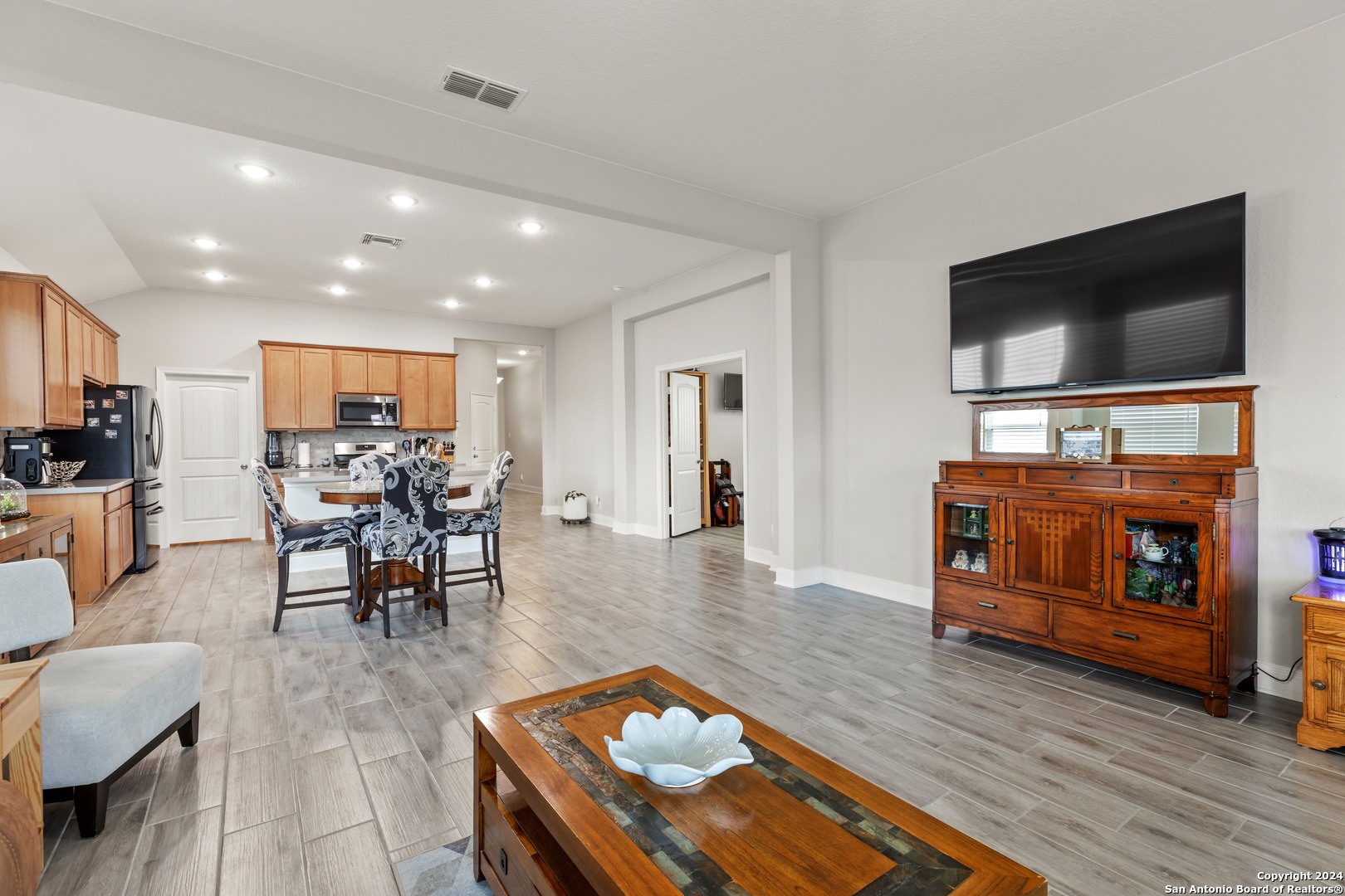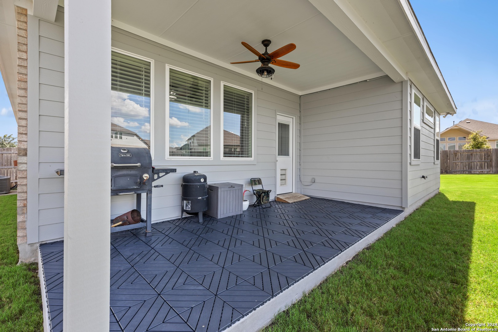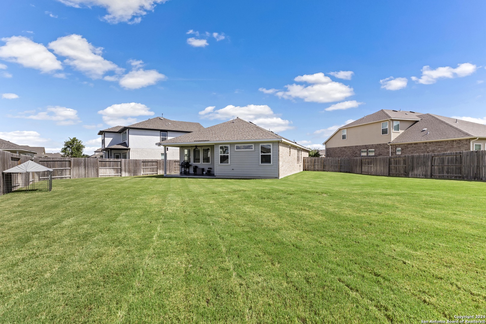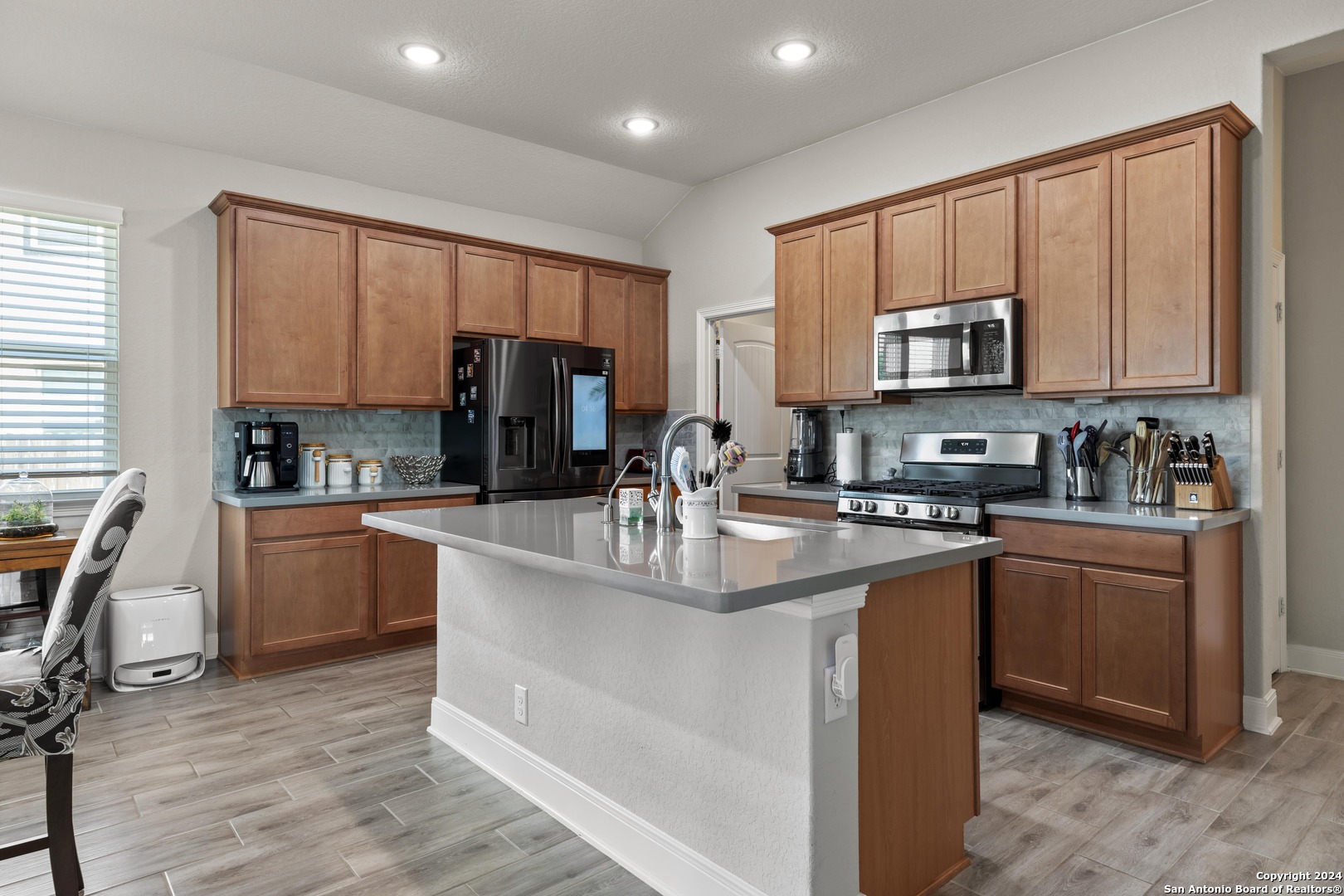 This recently upgraded ranch-style home features luxury vinyl plank flooring in all bedrooms and the office/flex space, seamlessly complementing the modern wood-look tile in the main living areas. 1/4 ACRE LOT, OFFICE / FLEX ROOM WITH 1/2 BATH w/gas stove, gas dryer and gas tankless water heater. With high ceilings and abundant natural light, this home is both spacious and inviting. Key features include: * Modern Upgrades: Luxury vinyl plank flooring, modern wood-look tile, high ceilings, and timeless finishes throughout. Ceiling fans throughout every room. Very rare 1/2 bathroom in flex room. * Kitchen: A large island overlooks the open-concept dining and living areas, making it perfect for entertaining. Enjoy cooking with a gas stove and drinking from the 3-point UV light filtration system coupled with a whole-house water filter and softener. Quartz countertops throughout and under-cabinet lighting. * Utilities: Instant hot water is available from the gas tankless water heater. House has pantry and utility room. There is also a hookup for either gas or electric dryer.* Smart Home Features: Includes a RING security system and a SMART refrigerator. * Flexible Space: A versatile room off the kitchen with solid French doors and a half bath can be used as an office, playroom, or additional bedroom.. Underground sprinkler system installed. * Prime Location: Conveniently located halfway between San Antonio and Austin, with easy access to live music and shopping in Gruene (10 minutes away) and downtown New Braunfels, HEB, Schlitterbahn (15minutes away) Canyon Lake, San Marcos Outlet malls, and Comal ISD's highly acclaimed schools. This home perfectly balances modern amenities with comfortable living, making it a must-see!