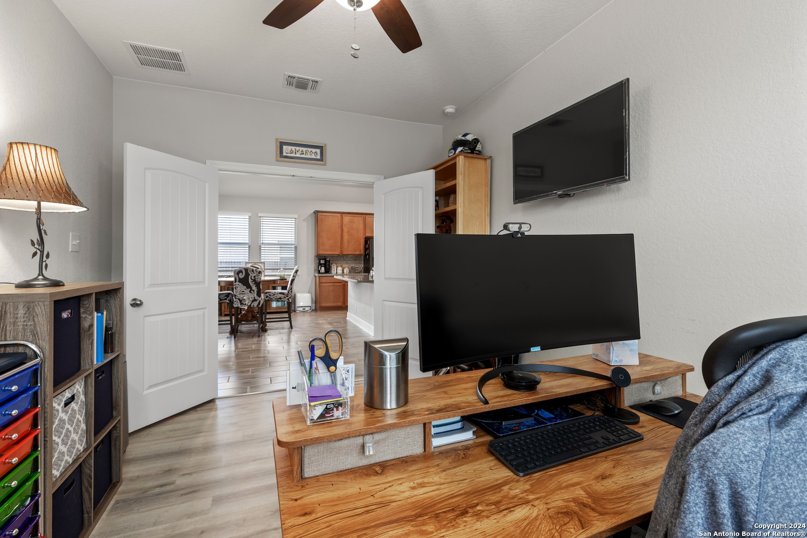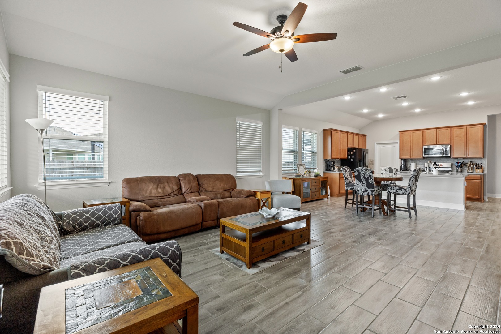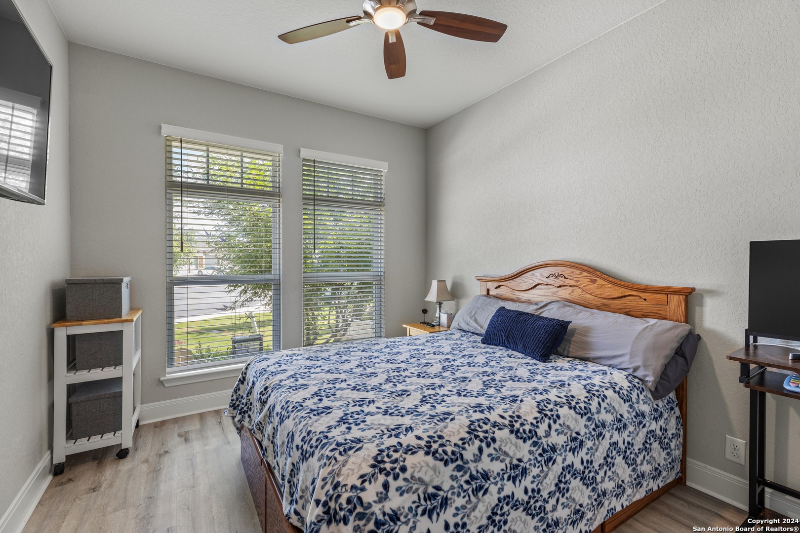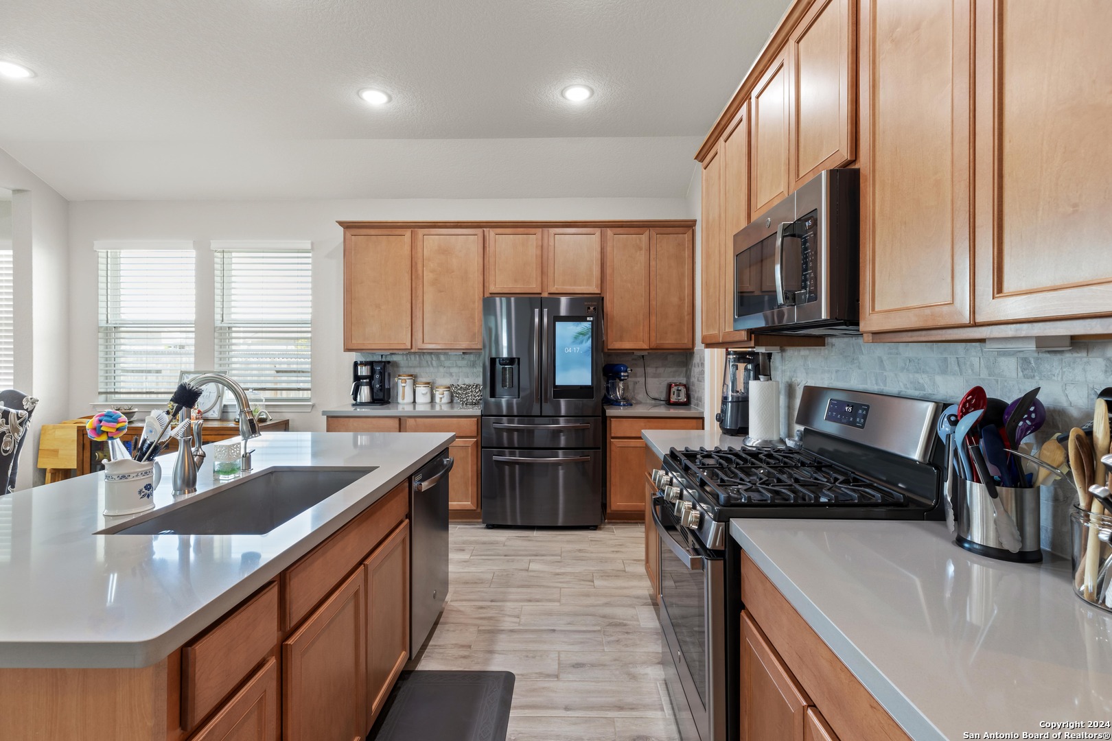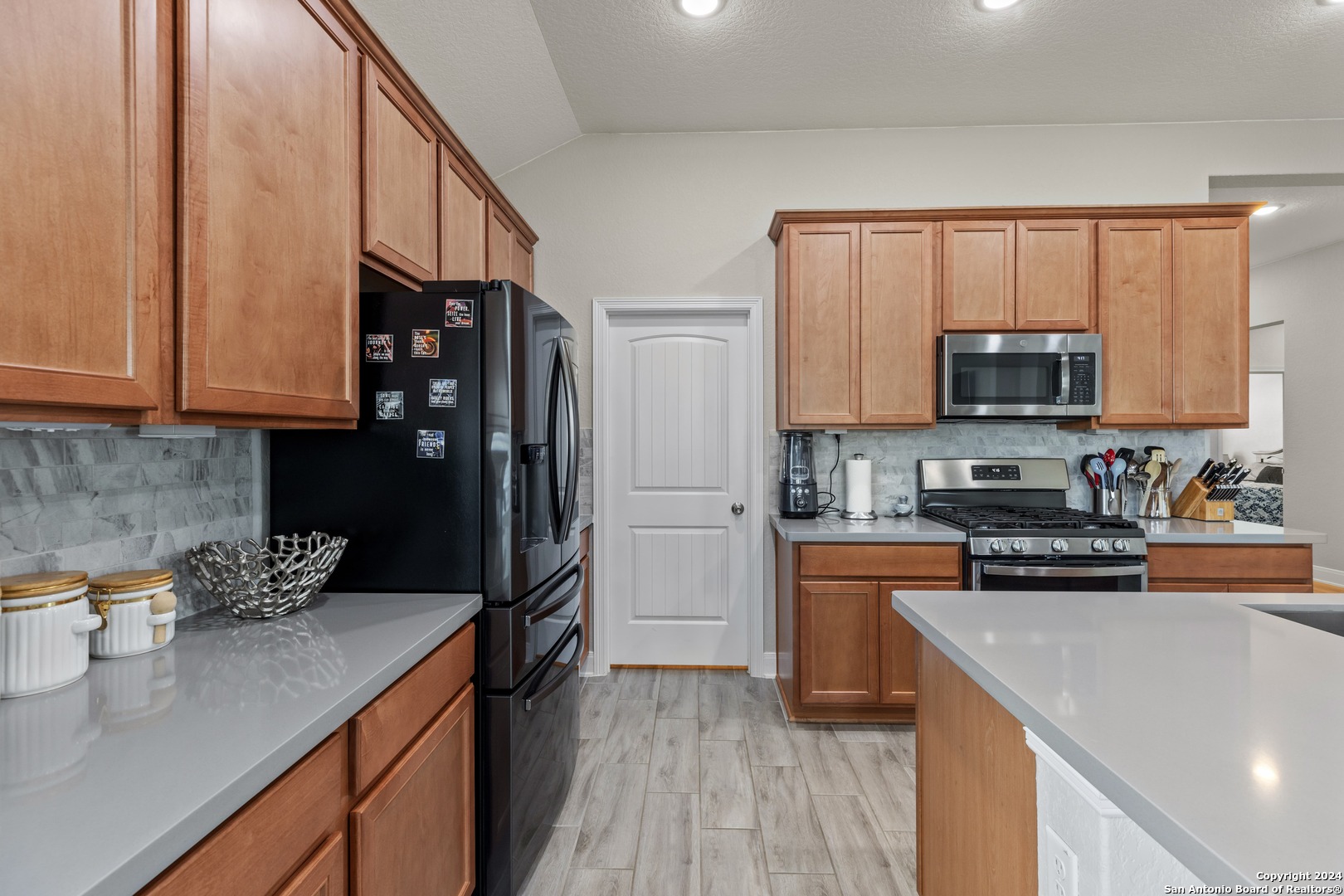 This recently upgraded ranch-style home features luxury vinyl plank flooring in all bedrooms and the office/flex space, seamlessly complementing the modern wood-look tile in the main living areas. 1/4 ACRE LOT, OFFICE / FLEX ROOM WITH 1/2 BATH w/gas stove, gas dryer and gas tankless water heater. With high ceilings and abundant natural light, this home is both spacious and inviting. Key features include: * Modern Upgrades: Luxury vinyl plank flooring, modern wood-look tile, high ceilings, and timeless finishes throughout. Ceiling fans throughout every room. Very rare 1/2 bathroom in flex room. * Kitchen: A large island overlooks the open-concept dining and living areas, making it perfect for entertaining. Enjoy cooking with a gas stove and drinking from the 3-point UV light filtration system coupled with a whole-house water filter and softener. Quartz countertops throughout and under-cabinet lighting. * Utilities: Instant hot water is available from the gas tankless water heater. House has pantry and utility room. There is also a hookup for either gas or electric dryer.* Smart Home Features: Includes a RING security system and a SMART refrigerator. * Flexible Space: A versatile room off the kitchen with solid French doors and a half bath can be used as an office, playroom, or additional bedroom.. Underground sprinkler system installed. * Prime Location: Conveniently located halfway between San Antonio and Austin, with easy access to live music and shopping in Gruene (10 minutes away) and downtown New Braunfels, HEB, Schlitterbahn (15minutes away) Canyon Lake, San Marcos Outlet malls, and Comal ISD's highly acclaimed schools. This home perfectly balances modern amenities with comfortable living, making it a must-see!