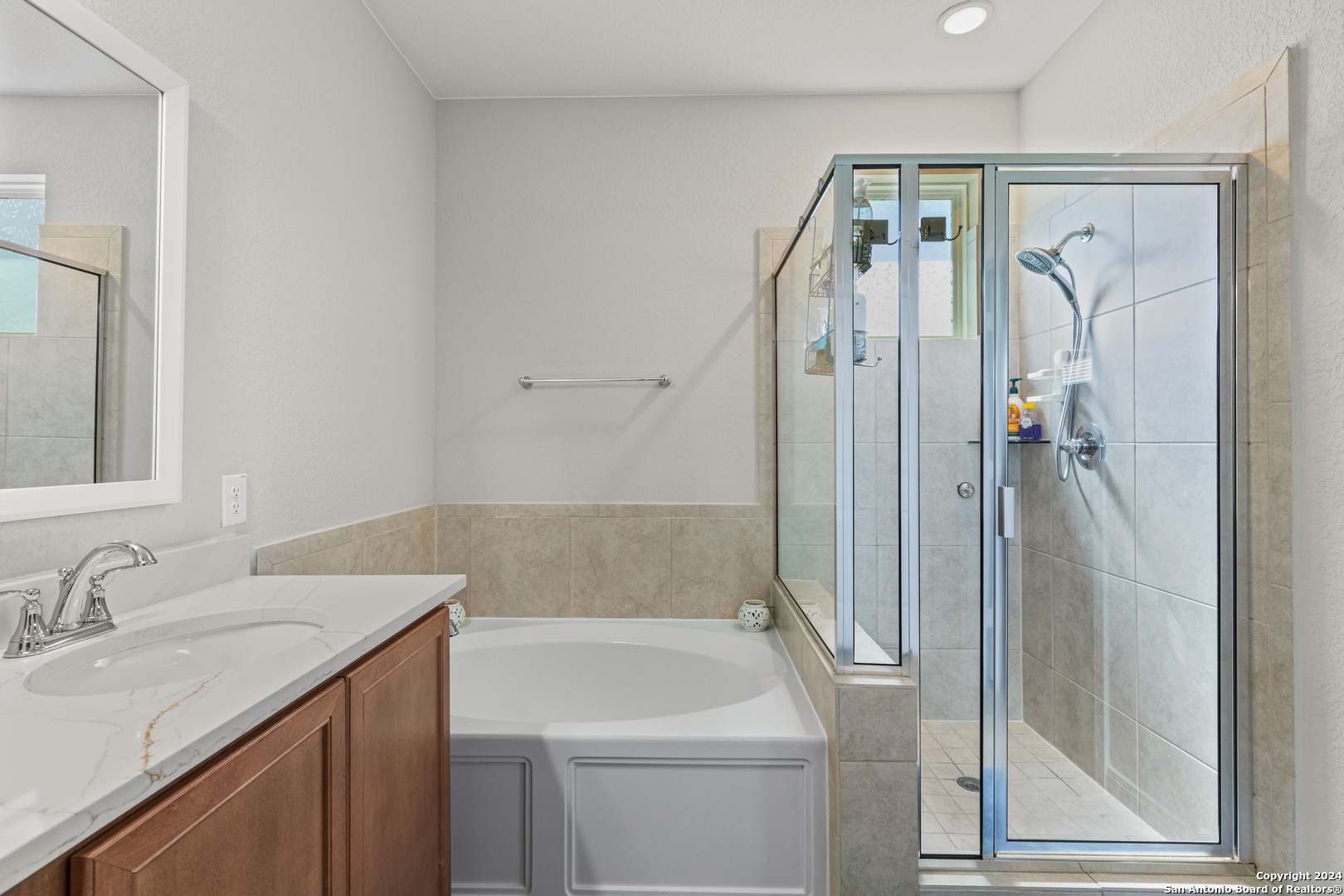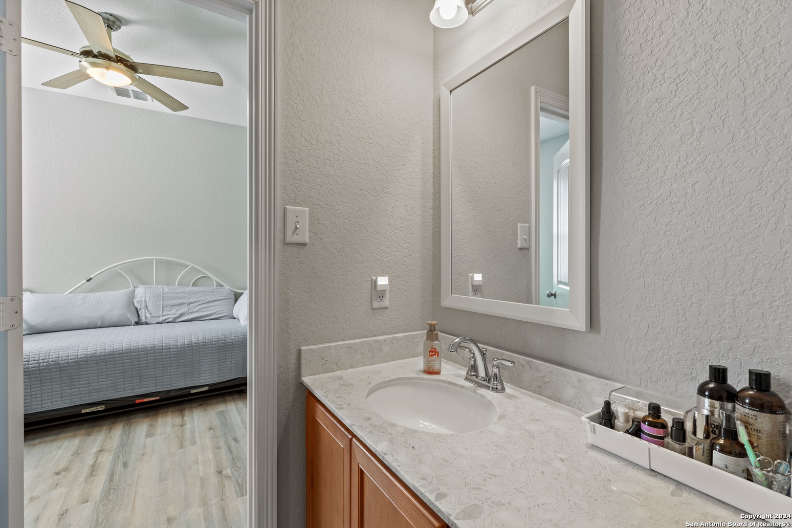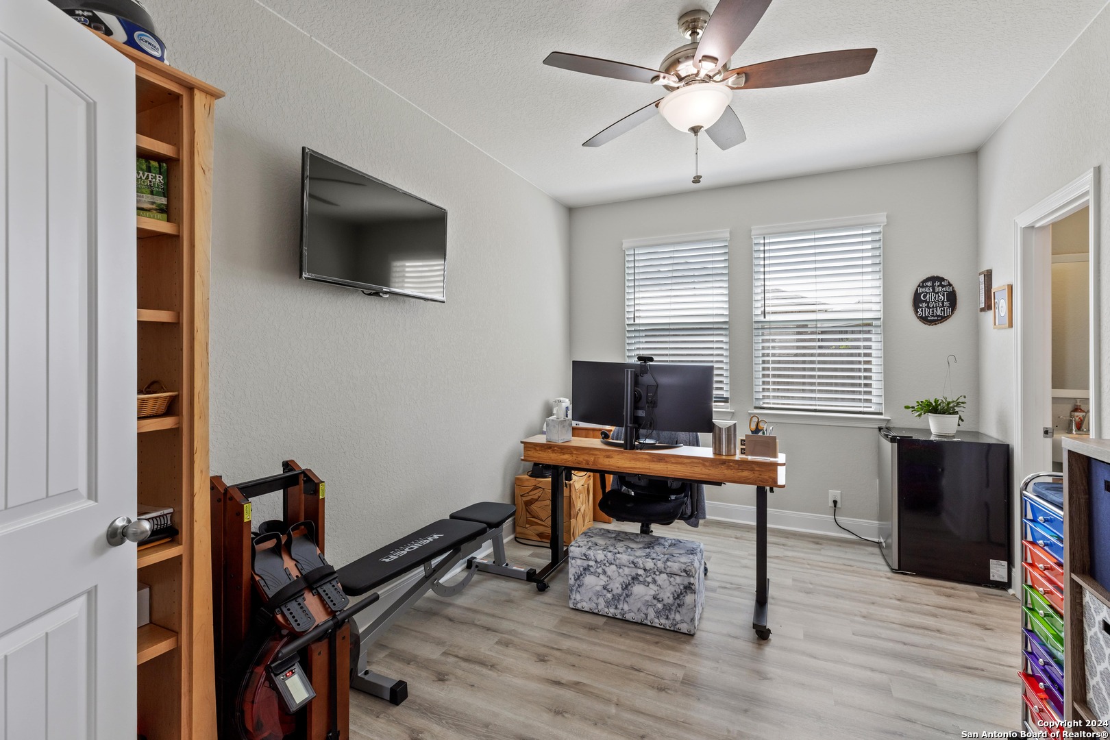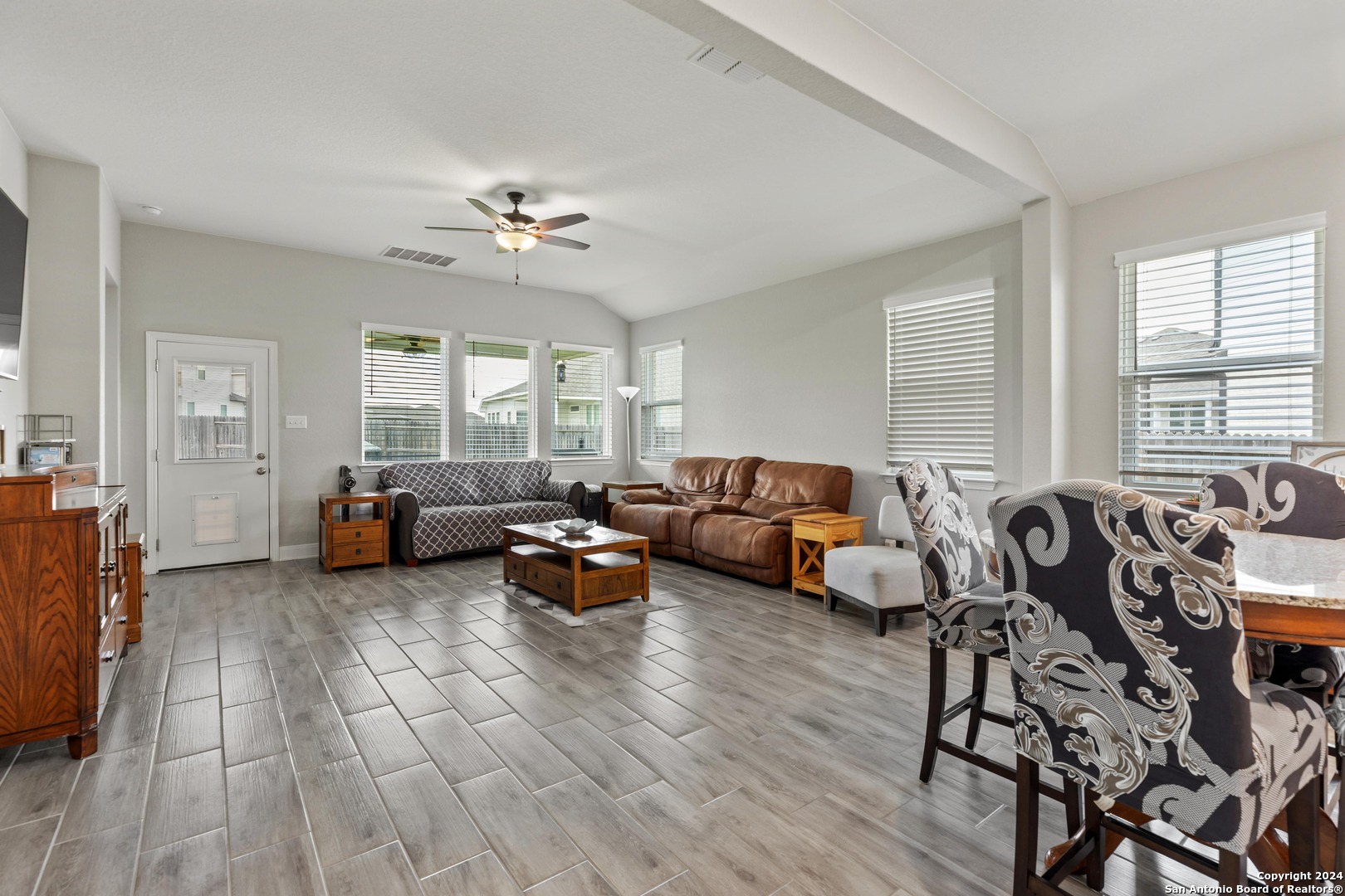 This recently upgraded ranch-style home features luxury vinyl plank flooring in all bedrooms and the office/flex space, seamlessly complementing the modern wood-look tile in the main living areas. 1/4 ACRE LOT, OFFICE / FLEX ROOM WITH 1/2 BATH w/gas stove, gas dryer and gas tankless water heater. With high ceilings and abundant natural light, this home is both spacious and inviting. Key features include: * Modern Upgrades: Luxury vinyl plank flooring, modern wood-look tile, high ceilings, and timeless finishes throughout. Ceiling fans throughout every room. Very rare 1/2 bathroom in flex room. * Kitchen: A large island overlooks the open-concept dining and living areas, making it perfect for entertaining. Enjoy cooking with a gas stove and drinking from the 3-point UV light filtration system coupled with a whole-house water filter and softener. Quartz countertops throughout and under-cabinet lighting. * Utilities: Instant hot water is available from the gas tankless water heater. House has pantry and utility room. There is also a hookup for either gas or electric dryer.* Smart Home Features: Includes a RING security system and a SMART refrigerator. * Flexible Space: A versatile room off the kitchen with solid French doors and a half bath can be used as an office, playroom, or additional bedroom.. Underground sprinkler system installed. * Prime Location: Conveniently located halfway between San Antonio and Austin, with easy access to live music and shopping in Gruene (10 minutes away) and downtown New Braunfels, HEB, Schlitterbahn (15minutes away) Canyon Lake, San Marcos Outlet malls, and Comal ISD's highly acclaimed schools. This home perfectly balances modern amenities with comfortable living, making it a must-see!