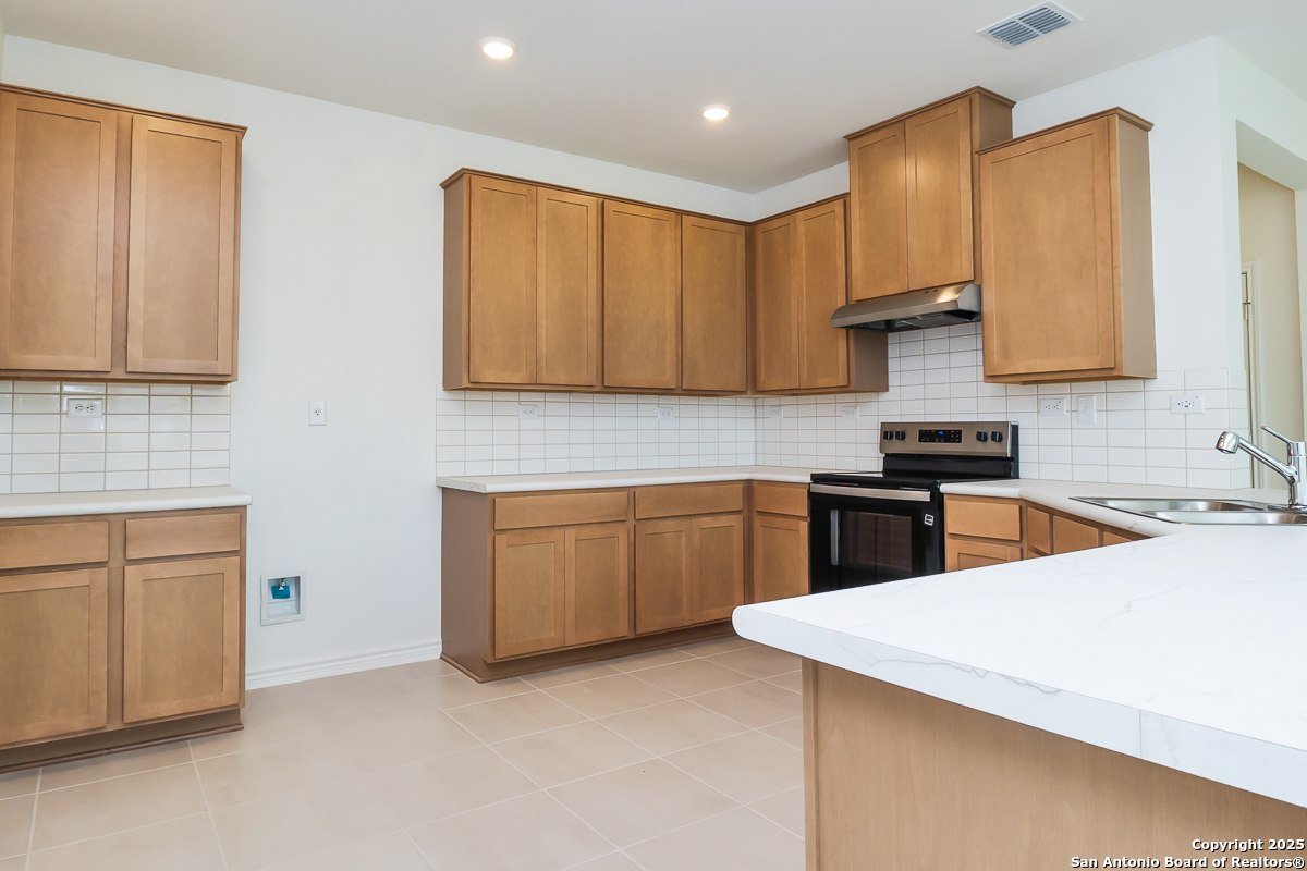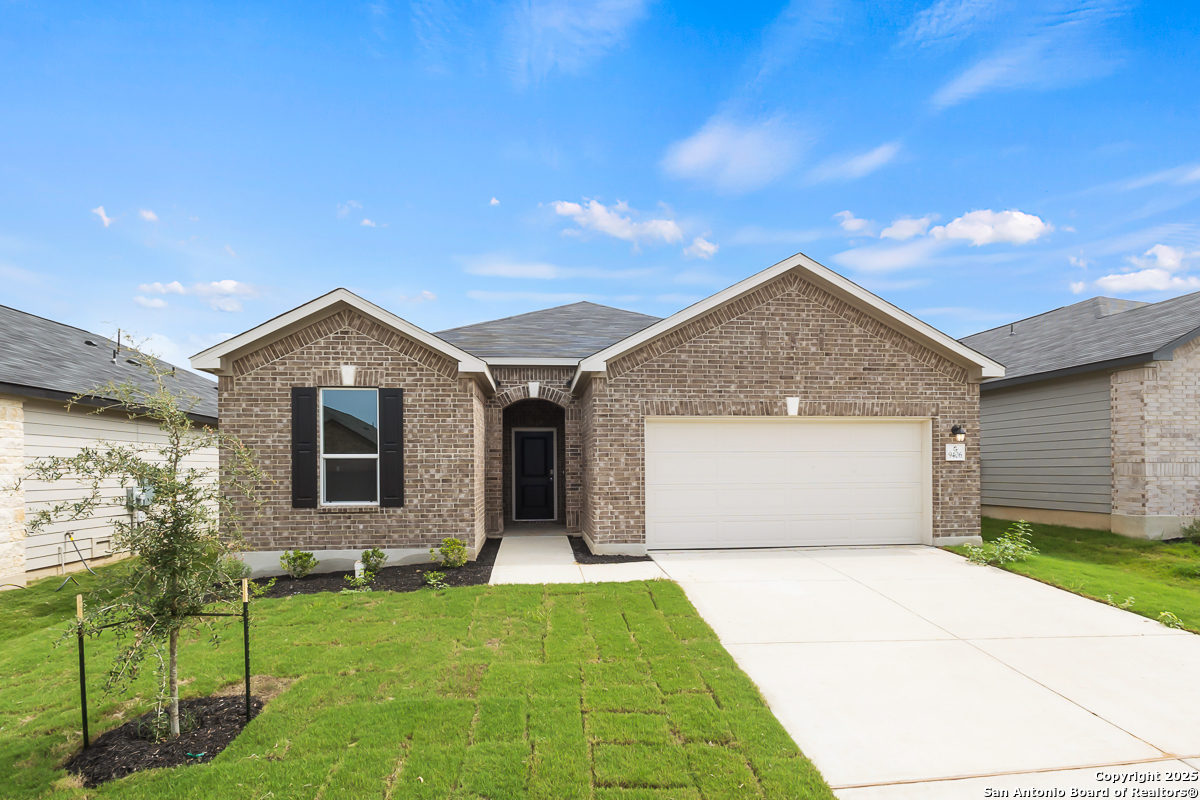 This stunning home features 9-ft. first-floor ceilings, creating a bright and open living space. The kitchen boasts Whirlpool stainless steel appliances, Woodmont Dakota Shaker panel 42-in. upper cabinets, an extended breakfast bar, Daltile tile backsplash, and a convenient double sink. The primary bath offers elegance and comfort with upgraded cabinets and a 42-in. shower adorned with Daltile tile surround. Stylish touches include Kwikset Polo knob interior hardware and Stella Vista ceramic tile flooring in the kitchen and great room. Additional conveniences include a wireless security system and an automatic sprinkler system for effortless outdoor care.