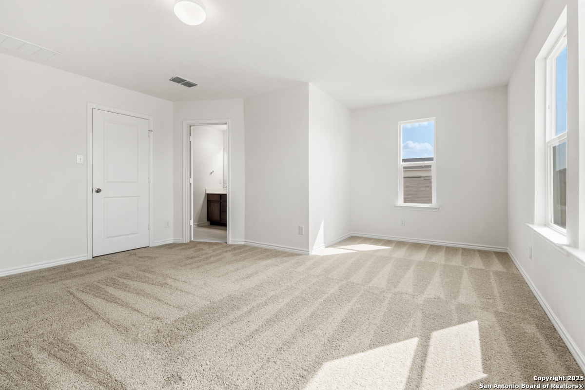 This inviting home features 9-ft. ceilings on the first floor, creating an open and airy feel. The kitchen is a standout with Whirlpool stainless steel appliances, Woodmont Cody 42-in. upper cabinets, an extended breakfast bar, and Dallas White granite countertops, along with a spacious pantry. The primary bath offers upgraded cabinets and a relaxing 42-in. garden tub/shower with Daltile tile surround. Decorative touches include a Carrara style entry door, Kwikset Polo knob interior door hardware, and elegant Stella Vista ceramic tile flooring in the bathrooms, great room, and kitchen. Additional features include a wireless security system, soft water loop, automatic sprinkler system, and a fully sodded yard.