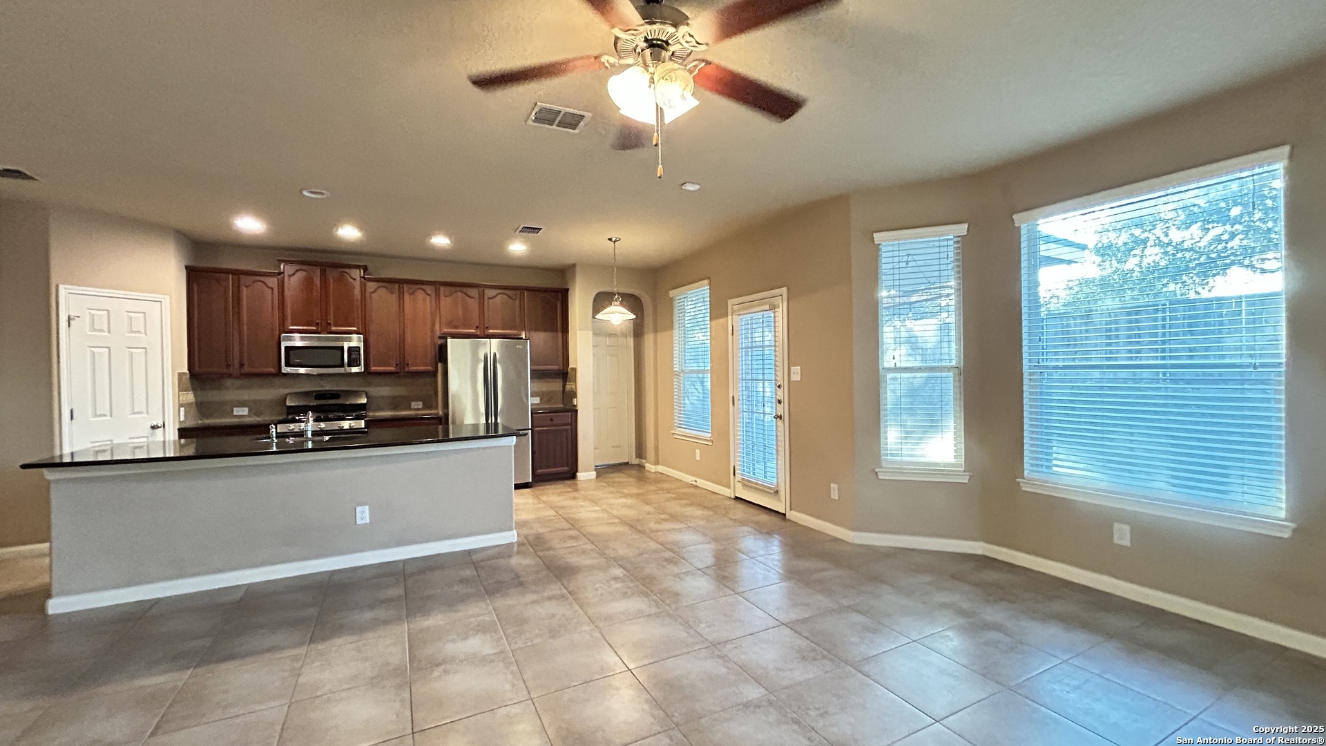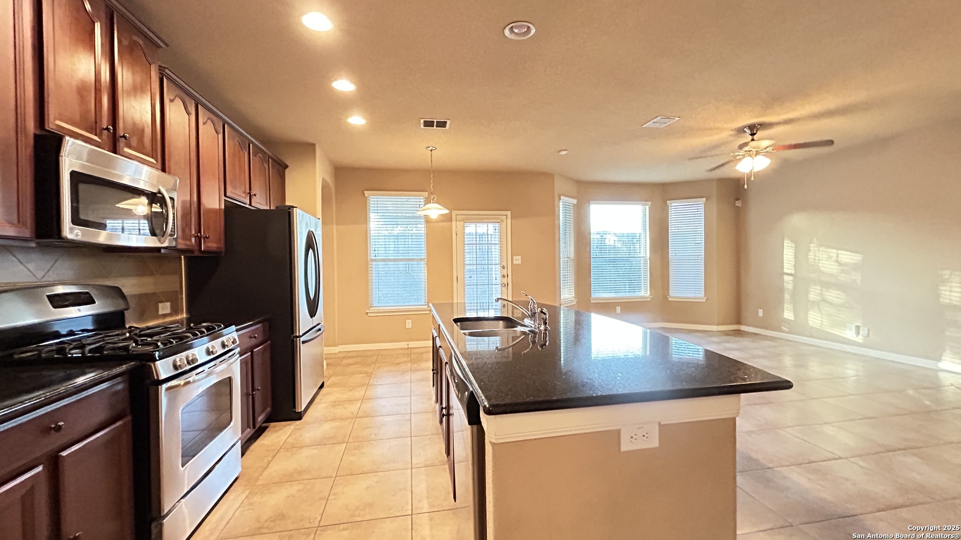 Beautiful 3 Bed, 2 Bath 1795 sq ft Single Story Home. Neutral Colors, Blinds, Ceramic Tile Floors throughout. Carpet only in Beds, Office. Open Floor Plan w/Formal Dining Room, Large Living Room w/Gas Fireplace. Open Kitchen w/Dark Granite Counters, Breakfast Bar. Stainless Appliances: Fridge, Gas Stove, Microwave, Dishwasher. Large Primary Bedroom w/Ceiling Fan, Walk-in Closet. Primary Bath w/Sep Shower/Garden Tub, Dual Sinks. Fenced Yard w/CVD Patio. Comm Pool. Near 151, Loop 410, 1604, Sea World, Lackland.