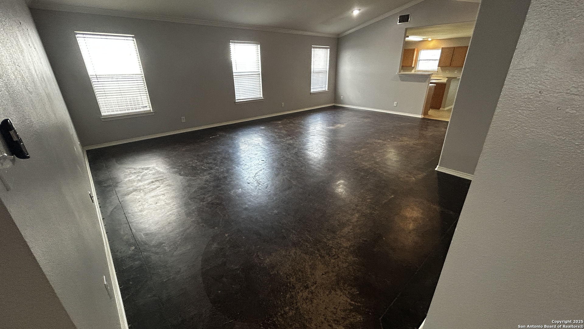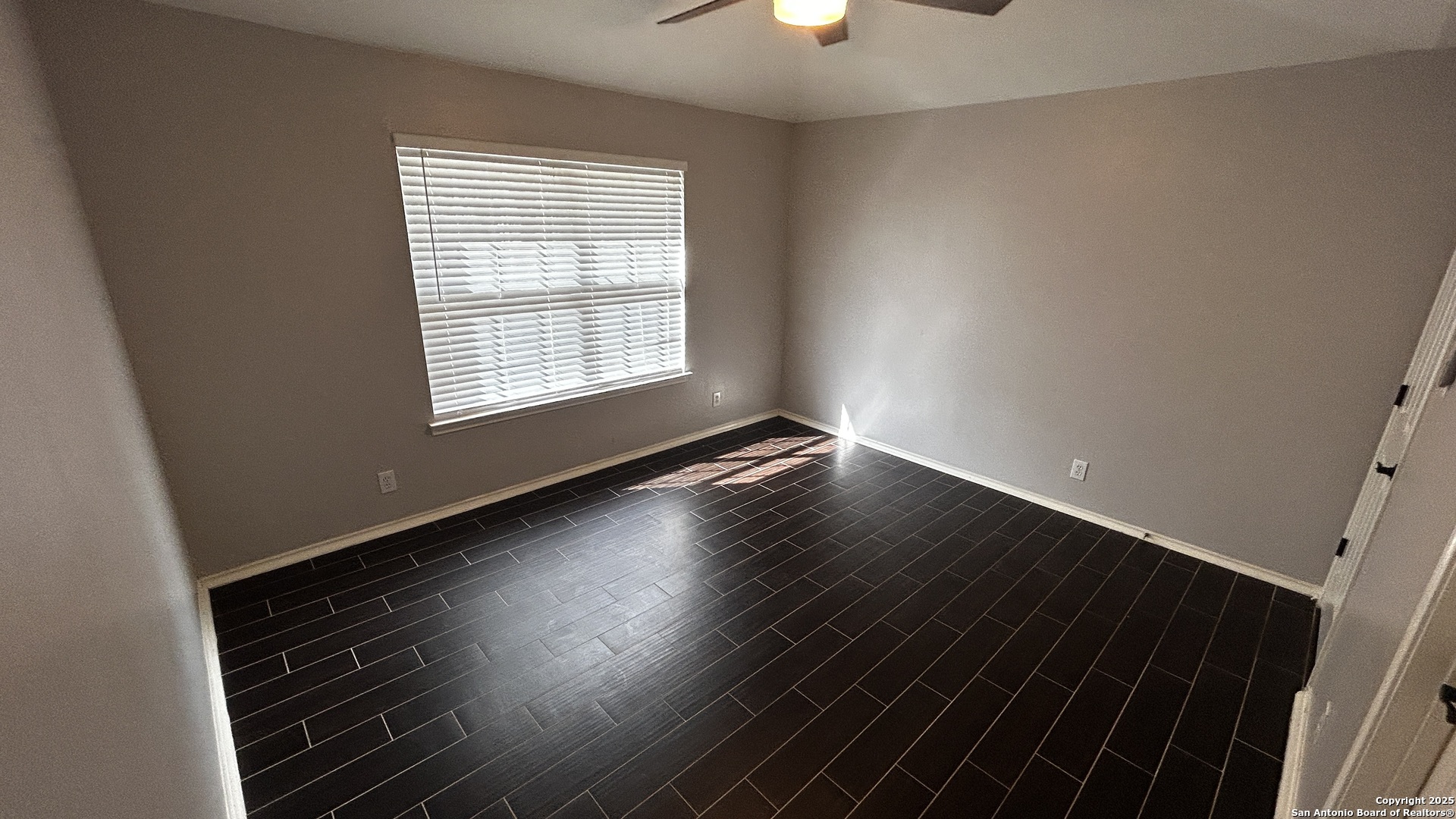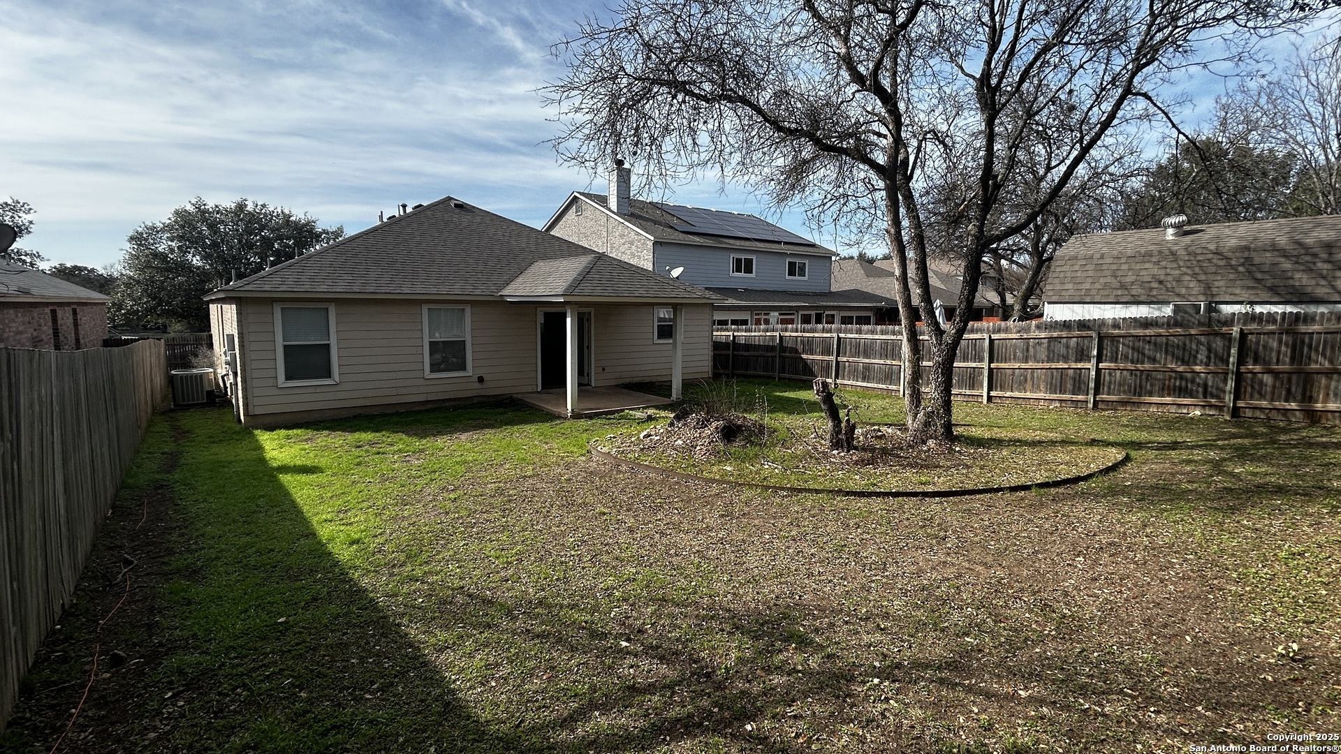 MOVE IN SPECIAL: 2 WEEKS FREE** Nestled in the great community of Stoney Farms near Medical Center area, this single story home on a 0.16-acre greenbelt lot features 1992 sq. Ft., 3 bedrooms, 3 full bathrooms, and a 2-car garage. Adorned with neutral walls, ceiling fans, blinds, stained concrete floors in the living room/dining room combo, wood like tiles in bedrooms and hallways, this home will not fail to impress. NO CARPETS IN THE HOUSE!!! This gem is set up for entertainment with its incredible kitchen boasting lots of cabinet space for storage and beautiful breakfast bar with built in seating space. The main primary suite comes with dual vanity, oversized garden tub and shower stall, and a walk-in closet. From the breakfast area, you can access the covered patio overlooking mature trees and greenbelt-- simply perfect for your weekend and holiday entertaining. Just minutes to Medical Center area, La Cantera Mall, UTSA, and Valero. Close to shopping and restaurants. With quick access to 1604 and I-10 freeways.