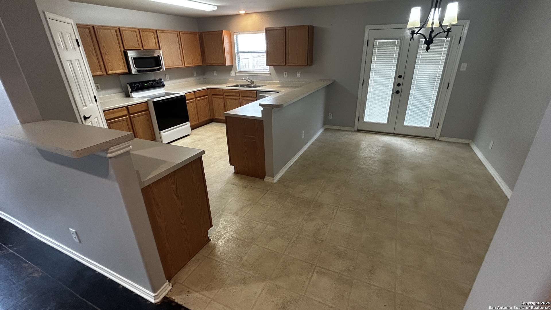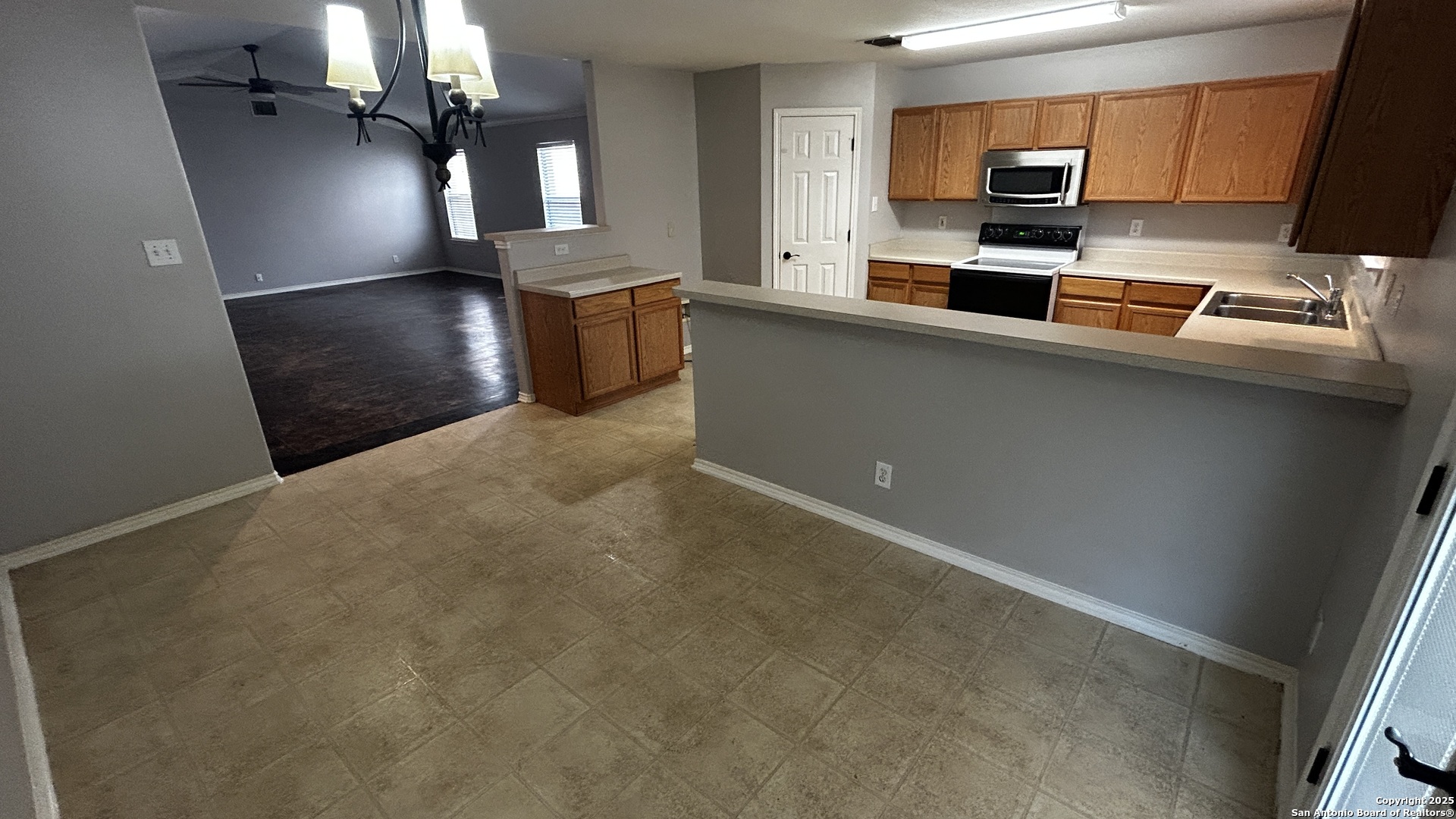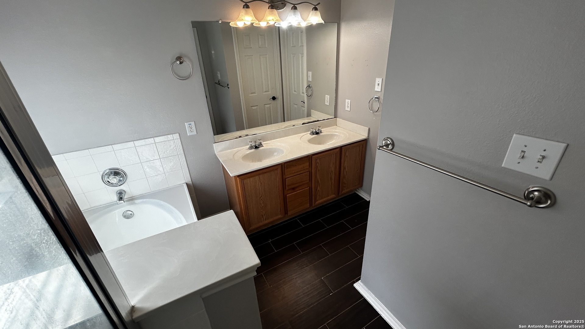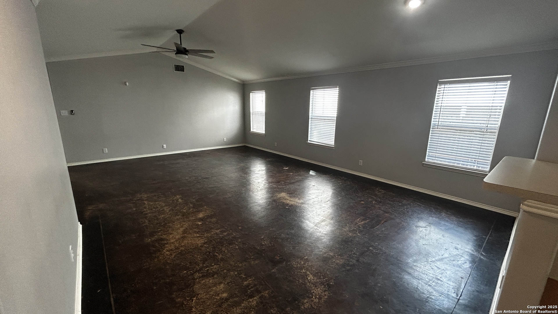 MOVE IN SPECIAL: 2 WEEKS FREE** Nestled in the great community of Stoney Farms near Medical Center area, this single story home on a 0.16-acre greenbelt lot features 1992 sq. Ft., 3 bedrooms, 3 full bathrooms, and a 2-car garage. Adorned with neutral walls, ceiling fans, blinds, stained concrete floors in the living room/dining room combo, wood like tiles in bedrooms and hallways, this home will not fail to impress. NO CARPETS IN THE HOUSE!!! This gem is set up for entertainment with its incredible kitchen boasting lots of cabinet space for storage and beautiful breakfast bar with built in seating space. The main primary suite comes with dual vanity, oversized garden tub and shower stall, and a walk-in closet. From the breakfast area, you can access the covered patio overlooking mature trees and greenbelt-- simply perfect for your weekend and holiday entertaining. Just minutes to Medical Center area, La Cantera Mall, UTSA, and Valero. Close to shopping and restaurants. With quick access to 1604 and I-10 freeways.