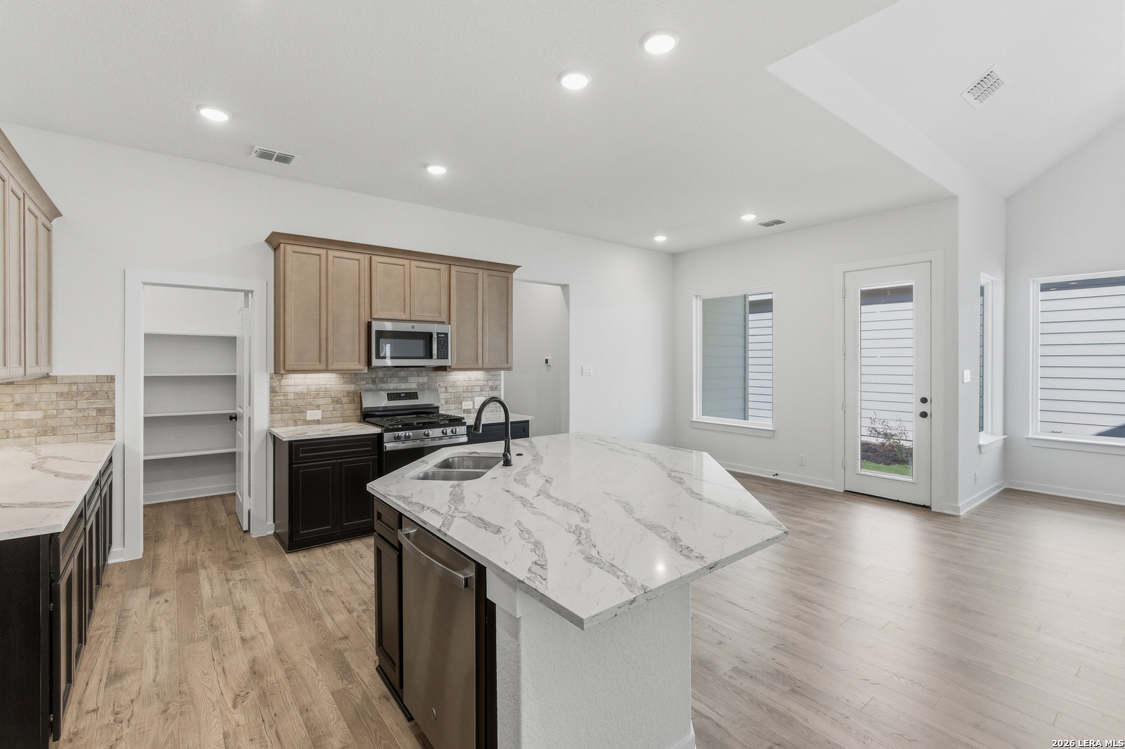 Welcome to this beautifully designed single-story home, where every detail is crafted for comfort and ease. Featuring three spacious bedrooms and two well-appointed bathrooms, this home offers an open floorplan that effortlessly connects the living, dining, and kitchen areas, creating the perfect flow for everyday life or entertaining guests. The primary suite is a serene retreat, complete with a large walk-in closet for all your wardrobe needs. Just off the dining area, step outside to an inviting outdoor living space, perfect for al fresco meals or quiet evenings under the stars. The two-car garage comes with additional storage space, providing plenty of room for your belongings and hobbies. This home combines modern functionality with timeless style, offering the ideal blend of indoor and outdoor living.