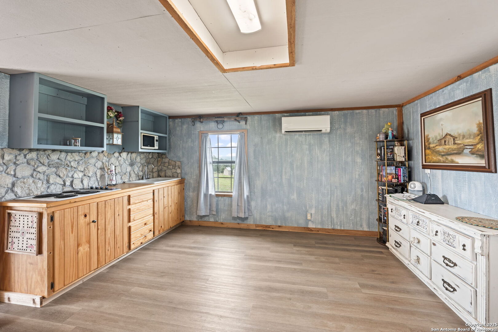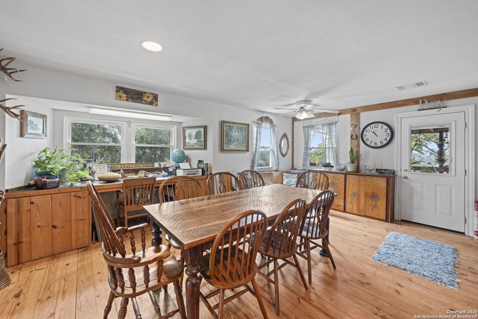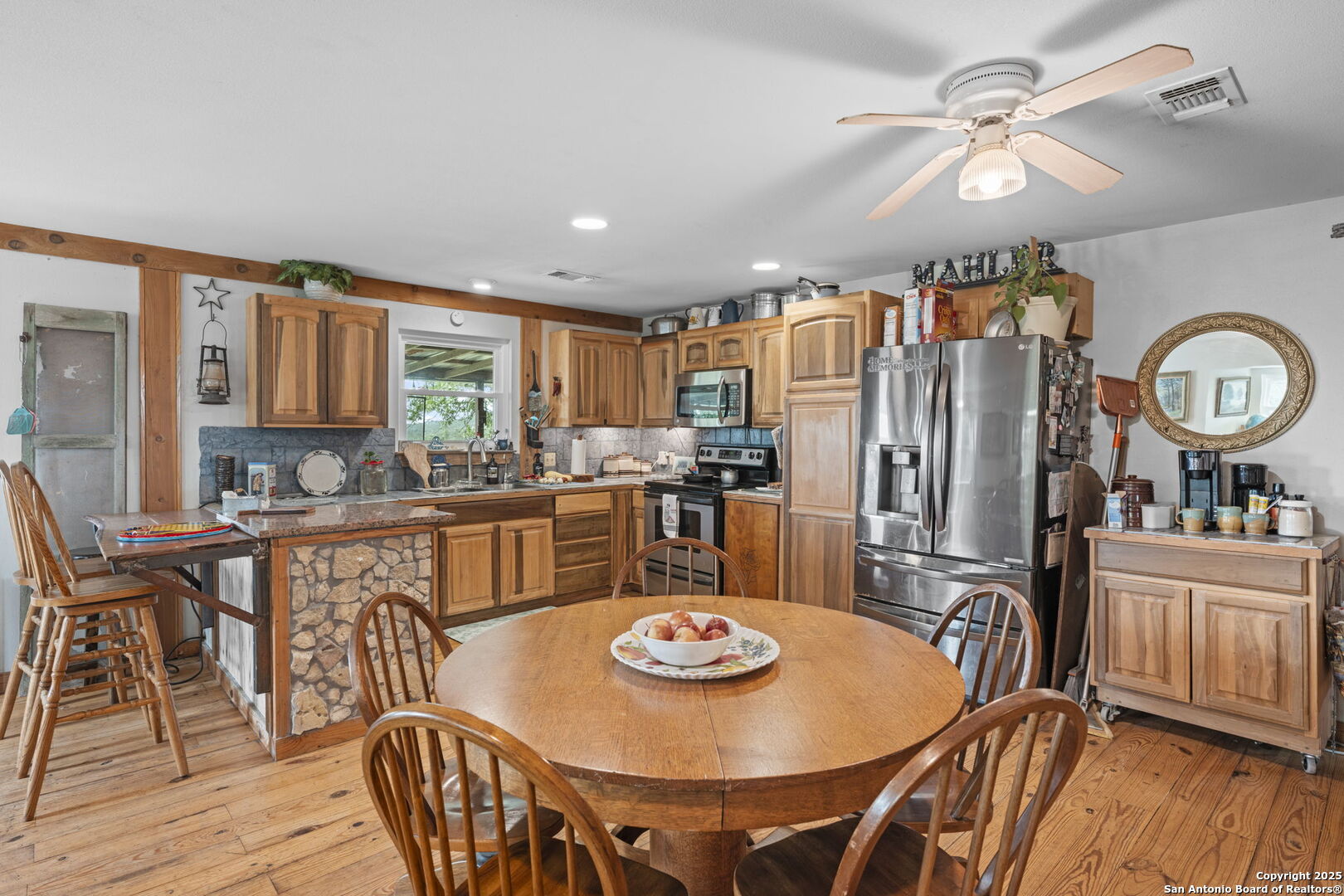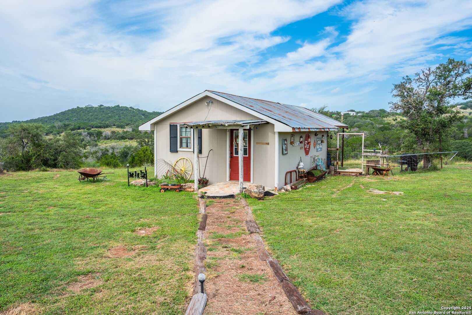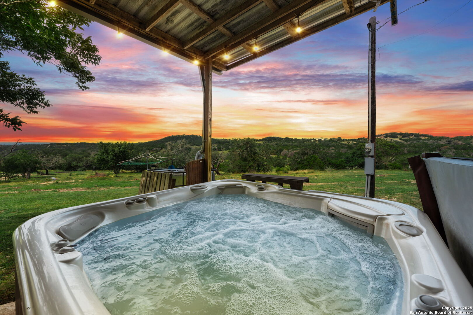 Welcome home to 943 Stoneleigh Road in Center Point, Texas-your own piece of Hill Country heaven. Imagine waking up to the sun cresting over almost 16 unrestricted acres of rolling Texas landscape, with two serene ponds nestled among mature oak trees. Inside the main three-bedroom, two-bath home, you'll find the warmth of hardwood floors and the peace of mind that comes with a solid metal roof. The living room's wood-burning stove invites cozy winter evenings, while the covered back porch is perfect for sipping coffee on your rocking chairs as you watch the world wake up. Step out onto the patio and take in the sweeping views of your private mini-orchard bursting with plum, peach, and apricot trees. Entertain in style with a dedicated outdoor grill and dining area, and don't forget the luxurious hot tub for starlit soaks. Guests will feel right at home in the charming mother-in-law suite, complete with a kitchenette and full bath. With your own private water well, two large storage tanks, and a fully insulated pump house, you have everything you need for self-sufficient country living. With abundant wildlife, hunting opportunities, and breathtaking sunsets and sunrises, this property is the perfect blend of rustic charm and modern comfort. It's not just a home-it's the dream you've been waiting for. Come see why this is the country oasis where your heart belongs.