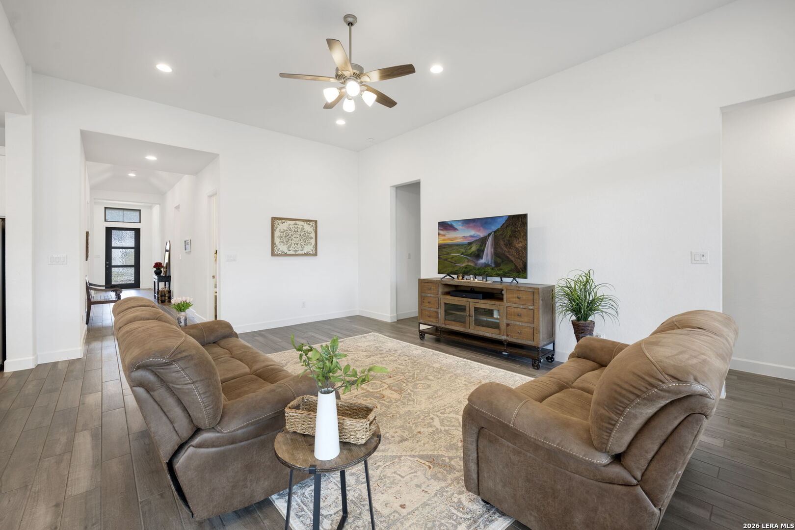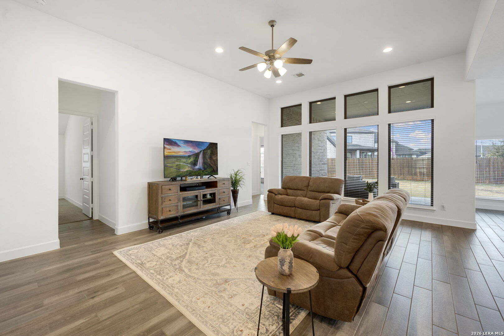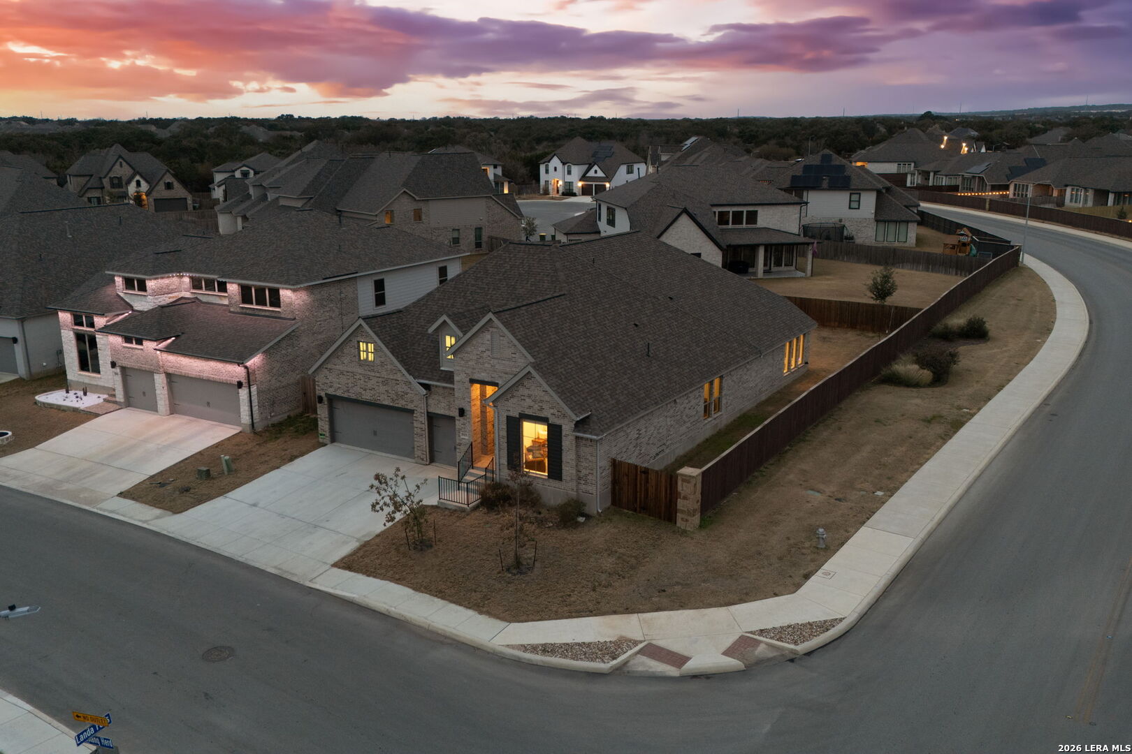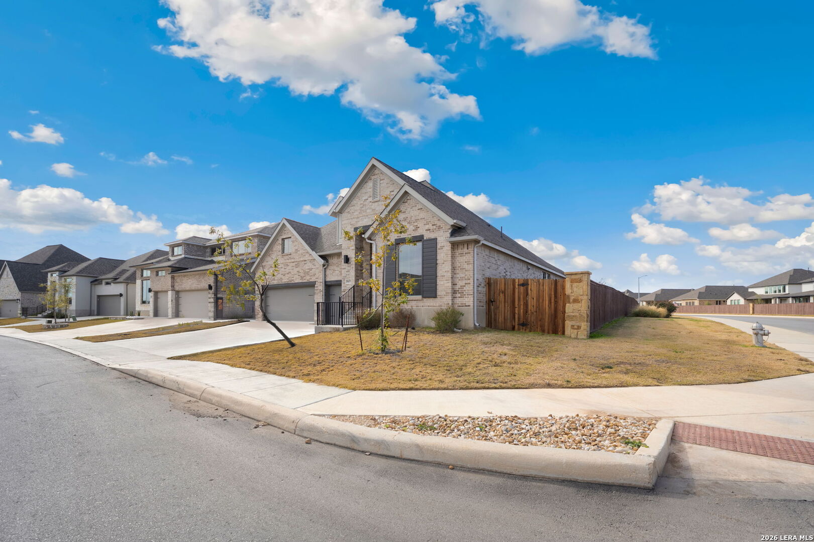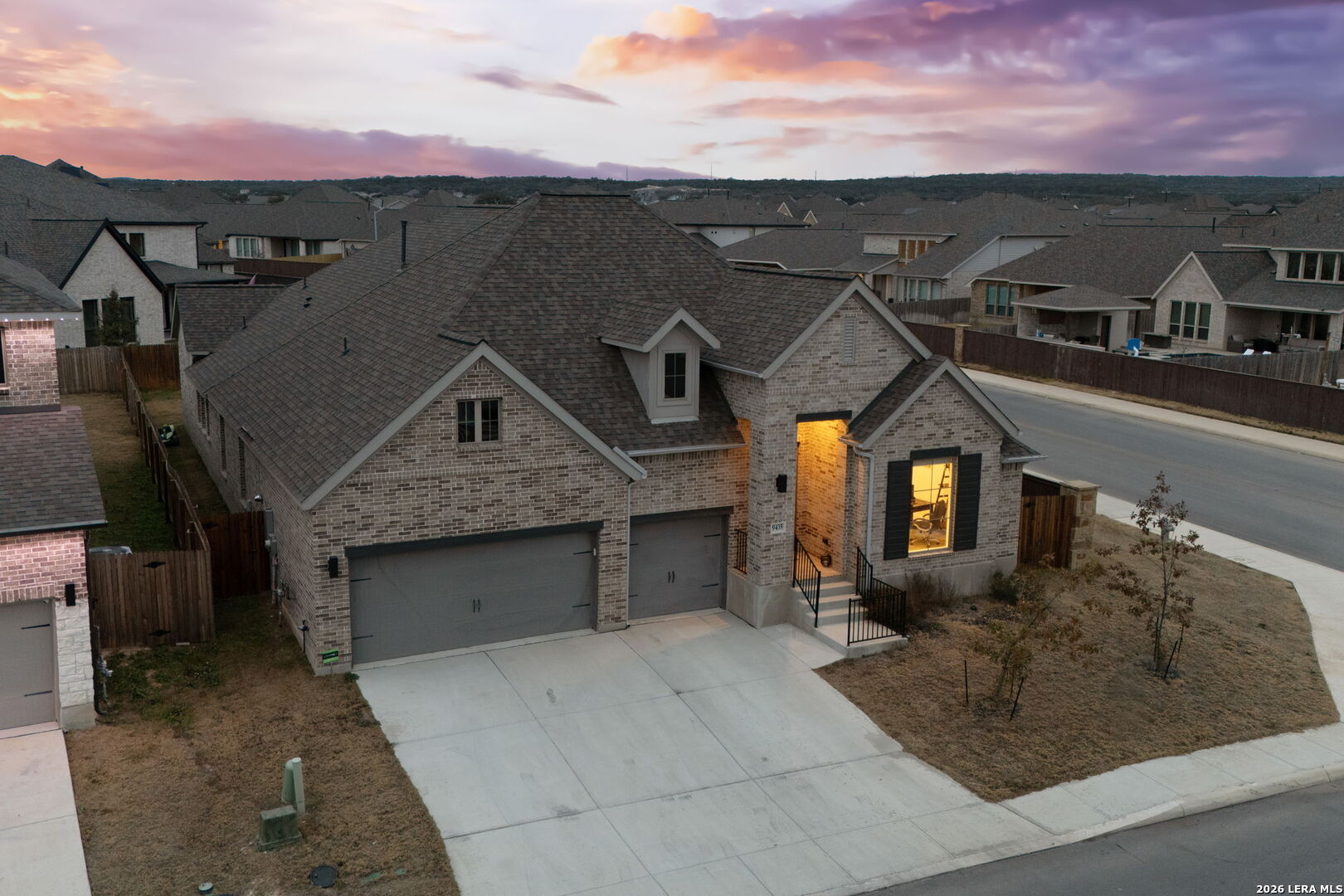 Welcome to 9435 Mustang Herd - where "like-new" actually means something. Yeah I said it, so what.. wanna fight about it? Ok... I'm sorry. Here's the rest of the house info for your glorious reading pleasure! This stunning Perry Home sits proudly on a premium corner lot in the highly sought-after Kallison Ranch community and checks boxes you didn't even know you had. ALL of em baby!! Step inside and you're greeted with natural light for days, gorgeous wood-look tile flooring, and an open-concept layout that just works-whether you're hosting friends, wrangling kids, or enjoying a quiet night in. The oversized office is a standout feature and easily flexes as a playroom, game room, or work-from-home command center (Zoom background approved). Now let's talk about the heart of the home-this kitchen is a certified showstopper. Upgraded quartz countertops, a stylish herringbone subway tile backsplash, stainless steel appliances, and a large island with bar seating make it equally perfect for meal prep, entertaining, or supervising homework while dinner's on the stove. EXTRA PERK: the open sightlines mean you can cook, entertain, and keep eyes on everything at once (yes, even your favorite show-Landman fans, you know who you are). The primary suite is a true retreat, offering space, privacy, and a spa-like bathroom that ends all vanity arguments. Dual vanities, TWO walk-in closets, a soaking tub, oversized walk-in shower, and upgraded tile flooring deliver both luxury and everyday functionality. Outside, enjoy your oversized covered patio with upgraded tile flooring, ideal for morning coffee, evening unwinding, or weekend hangouts. Add in the rare three-car garage-perfect for vehicles, storage, or your future workshop-and you've got a home that truly goes the extra mile. Located in Northside ISD and just minutes from top-tier neighborhood amenities including a pool, parks, walking trails, schools, shopping, dining, and major highways-this home is move-in ready and ready to impress. Homes like this don't last long-especially in Kallison Ranch. Schedule your showing today and come see why this one stands out from the rest.