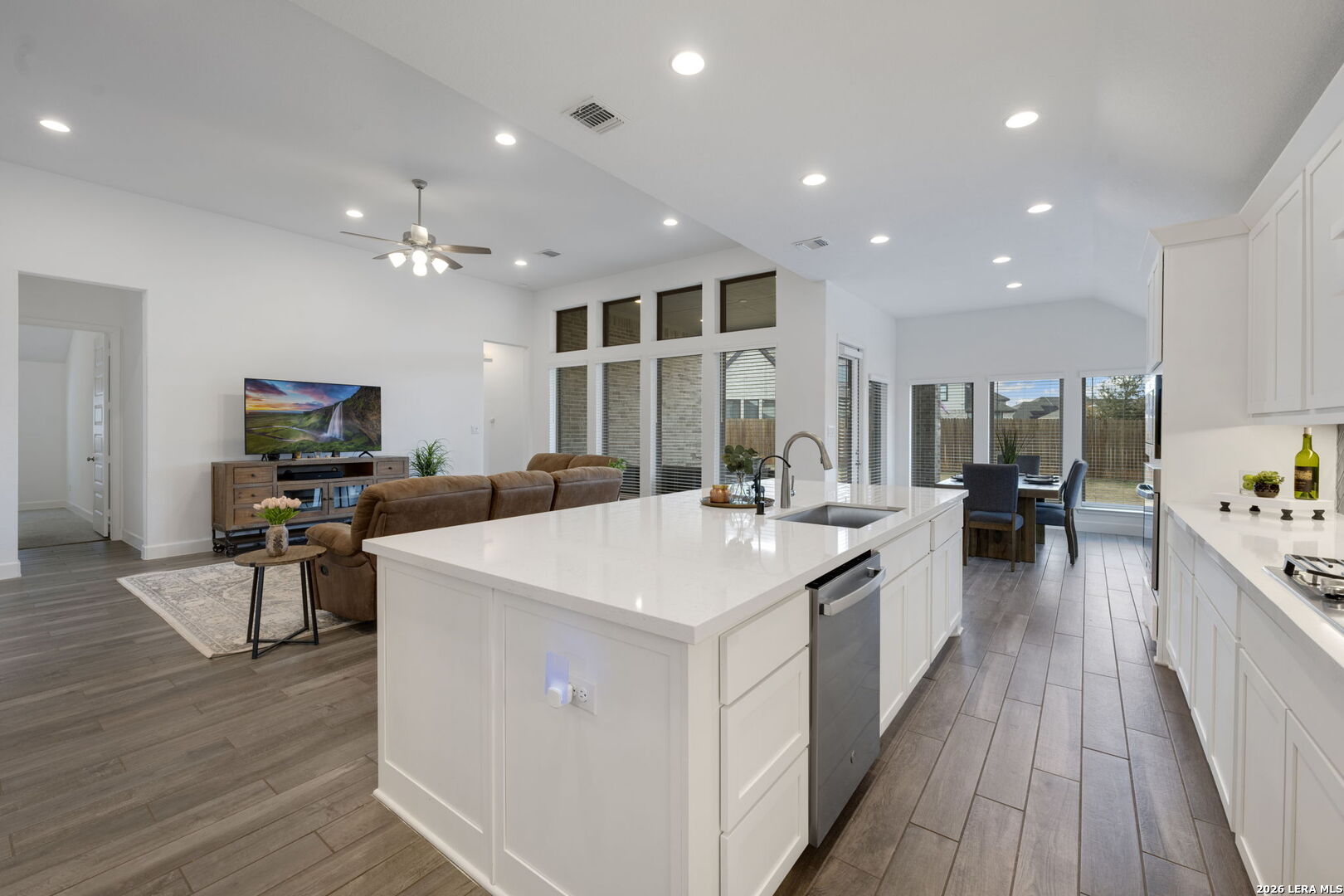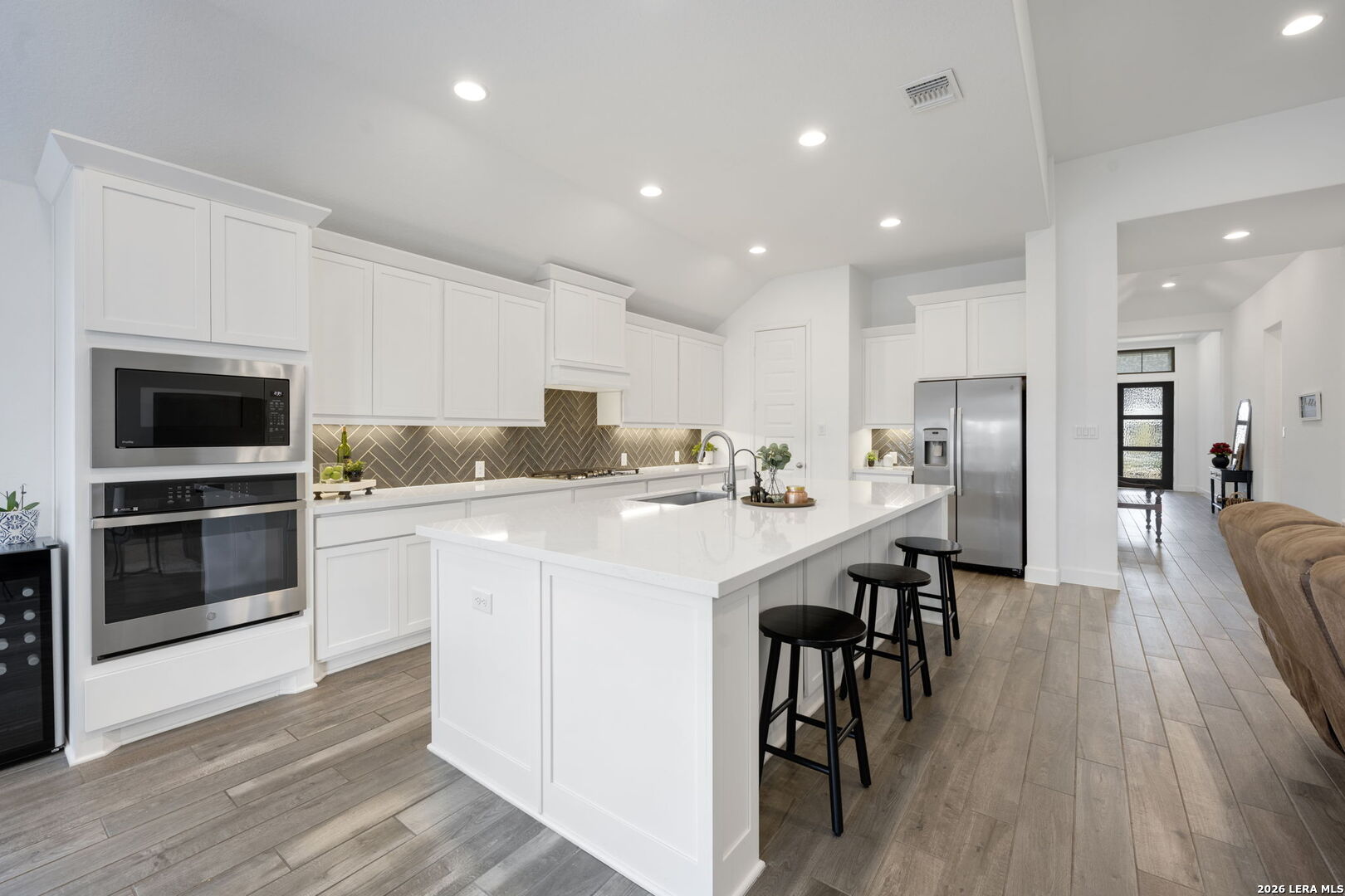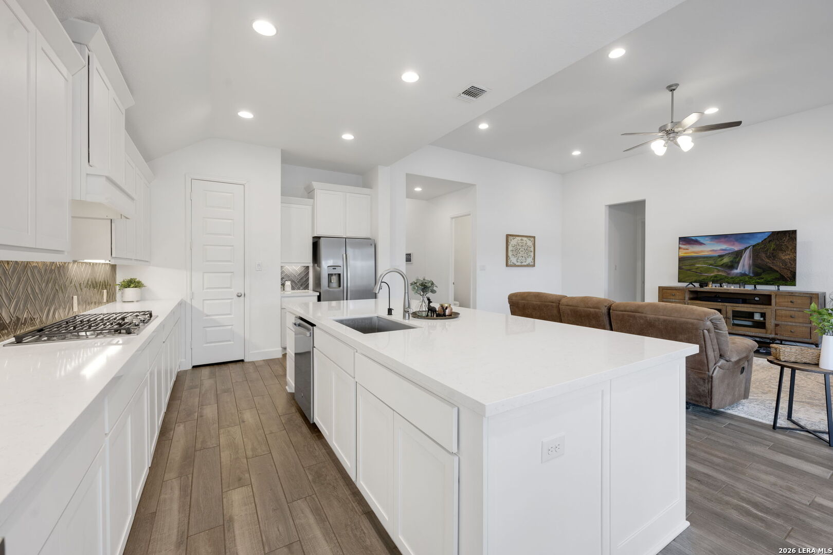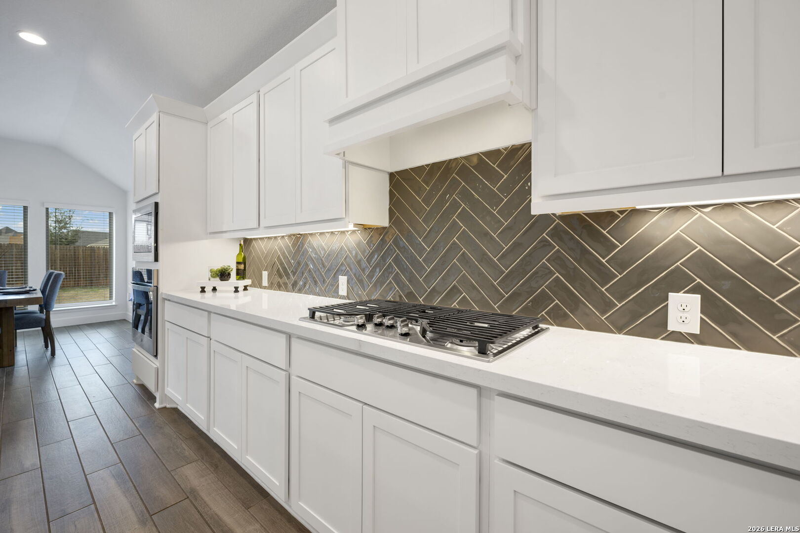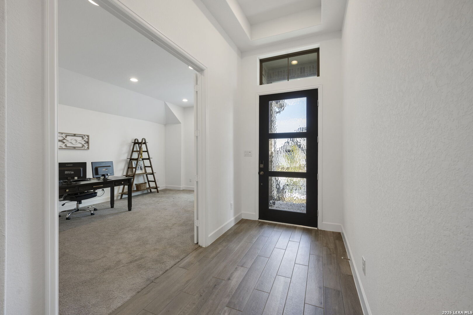Welcome to 9435 Mustang Herd - where "like-new" actually means something. Yeah I said it, so what.. wanna fight about it? Ok... I'm sorry. Here's the rest of the house info for your glorious reading pleasure! This stunning Perry Home sits proudly on a premium corner lot in the highly sought-after Kallison Ranch community and checks boxes you didn't even know you had. ALL of em baby!! Step inside and you're greeted with natural light for days, gorgeous wood-look tile flooring, and an open-concept layout that just works-whether you're hosting friends, wrangling kids, or enjoying a quiet night in. The oversized office is a standout feature and easily flexes as a playroom, game room, or work-from-home command center (Zoom background approved). Now let's talk about the heart of the home-this kitchen is a certified showstopper. Upgraded quartz countertops, a stylish herringbone subway tile backsplash, stainless steel appliances, and a large island with bar seating make it equally perfect for meal prep, entertaining, or supervising homework while dinner's on the stove. EXTRA PERK: the open sightlines mean you can cook, entertain, and keep eyes on everything at once (yes, even your favorite show-Landman fans, you know who you are). The primary suite is a true retreat, offering space, privacy, and a spa-like bathroom that ends all vanity arguments. Dual vanities, TWO walk-in closets, a soaking tub, oversized walk-in shower, and upgraded tile flooring deliver both luxury and everyday functionality. Outside, enjoy your oversized covered patio with upgraded tile flooring, ideal for morning coffee, evening unwinding, or weekend hangouts. Add in the rare three-car garage-perfect for vehicles, storage, or your future workshop-and you've got a home that truly goes the extra mile. Located in Northside ISD and just minutes from top-tier neighborhood amenities including a pool, parks, walking trails, schools, shopping, dining, and major highways-this home is move-in ready and ready to impress. Homes like this don't last long-especially in Kallison Ranch. Schedule your showing today and come see why this one stands out from the rest.