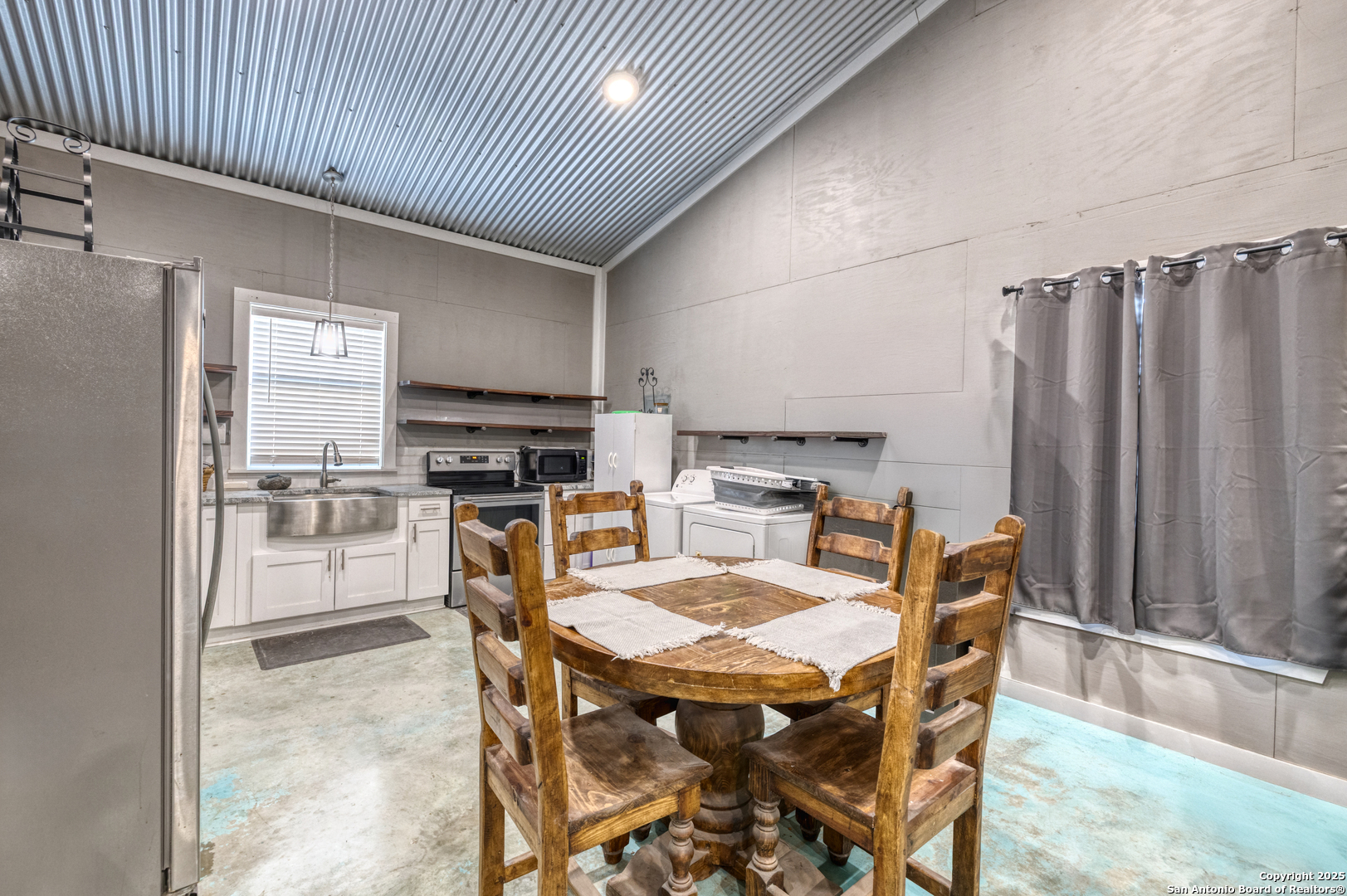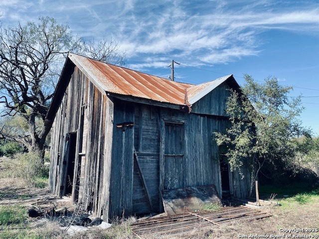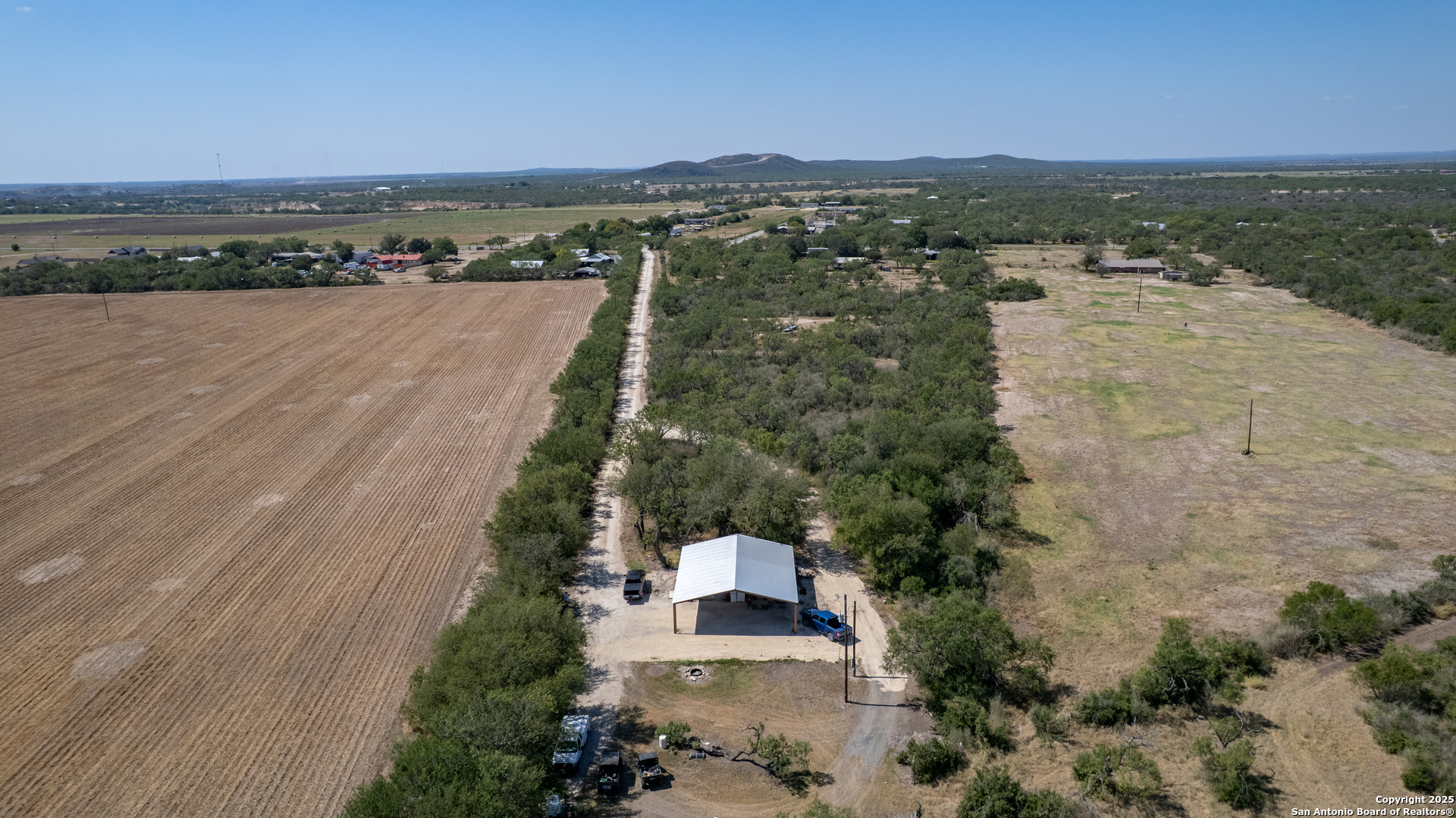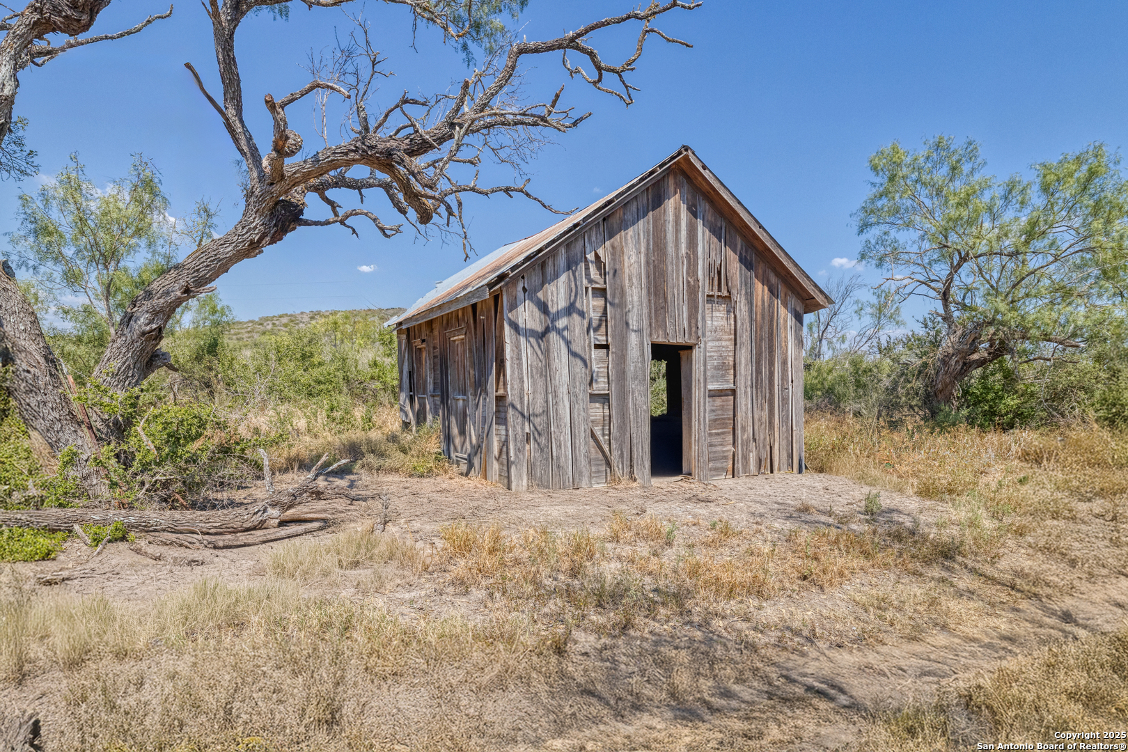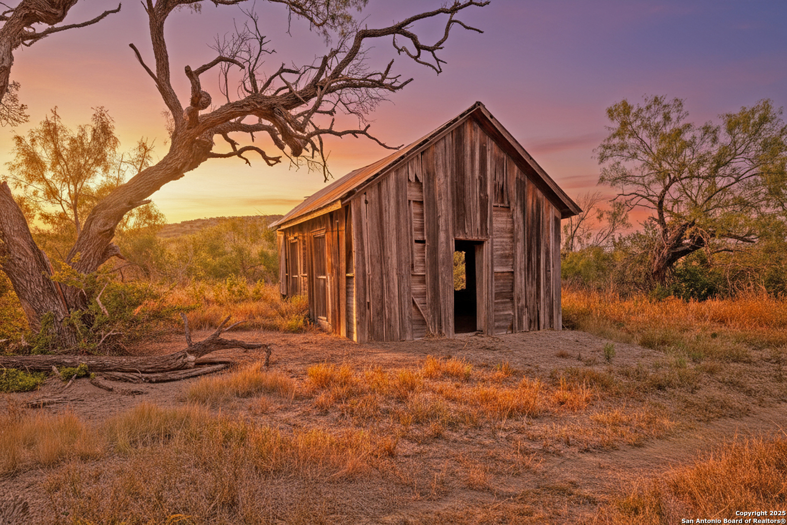 Just minutes from the highly-desired Knippa ISD, this 55-acre property offers the perfect balance of peaceful country living and modern comfort. It's ideal for a weekend getaway, horse or grazing land, or a prime investment opportunity. A beautifully designed 800-sq ft studio-style barndominium boasts an open-concept layout and thoughtfully chosen high-end finishes throughout. The kitchen and bathroom areas feature granite countertops, custom cabinetry, and quality fixtures that give the space a luxurious feel. Step outside and enjoy the massive 1,000 sq ft covered porch for relaxing and entertaining, and two outbuildings for storage, workshop use, or agricultural needs. The land is perimeter fenced and serviced by an electric pole and meter loop, city water, a private water well (pumps 1 gal per minute--not currently hooked up), and septic system. A beautiful variety of mature native trees and shrubs, including mountain laurel, persimmon, huisache, and cenizo, add to the natural charm and attract local wildlife. White tail deer, axis, javelina, quail, dove, turkey, fox, bobcat, and other native varmints roam the property. The ranch is ag exempt, which means the yearly tax burden is far lighter! Enjoy panoramic views of the rolling hills that surround the area, with peaceful, starry nights and wide-open skies. Just a short drive to Uvalde or Hondo (and about an hour from San Antonio), you'll have convenient access to dining, shopping, and daily essentials-while still enjoying the quiet of a true country lifestyle. With its flexible use potential, this property is a rare and valuable find in the heart of South Texas!