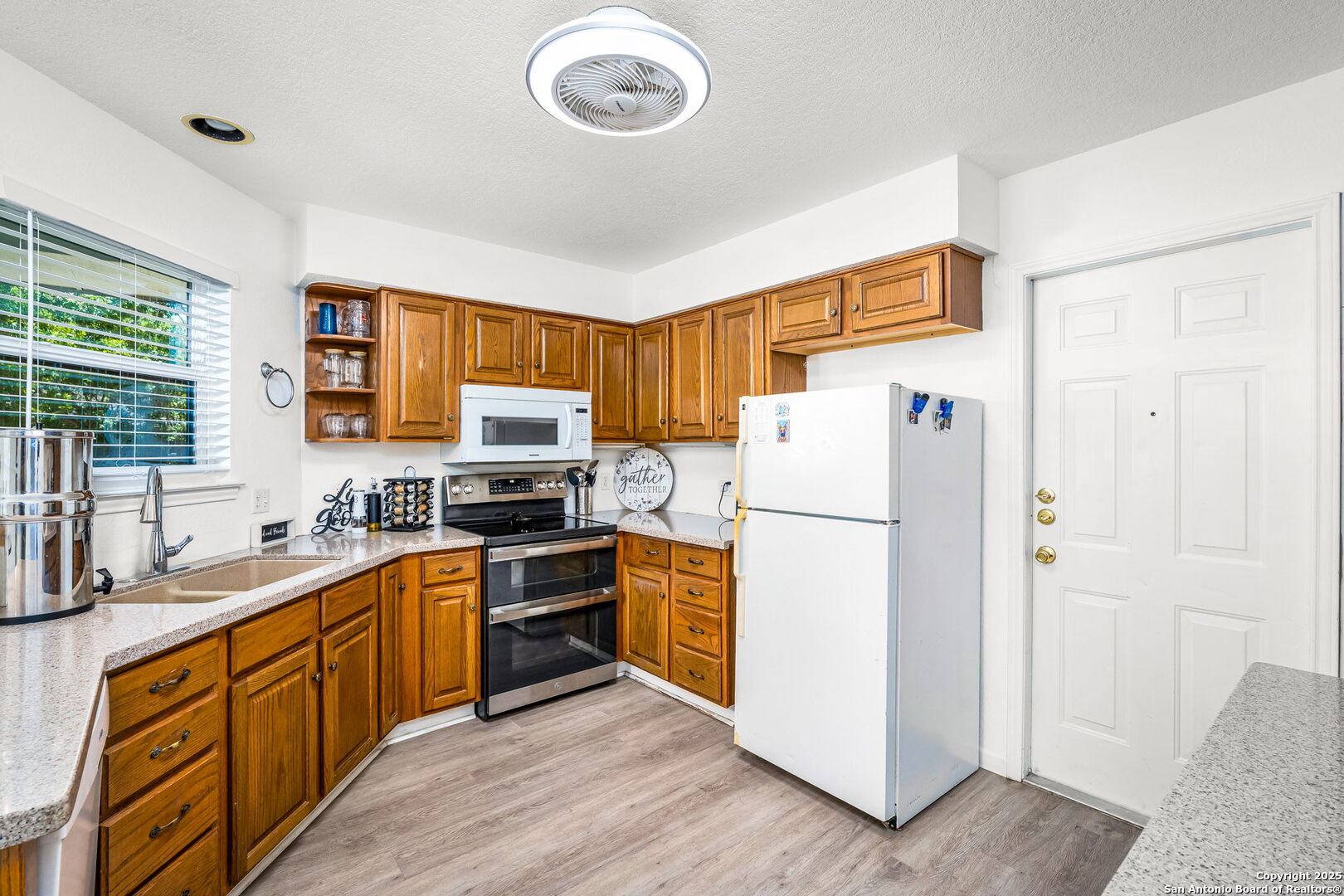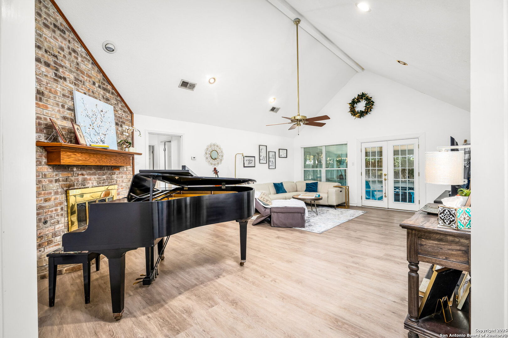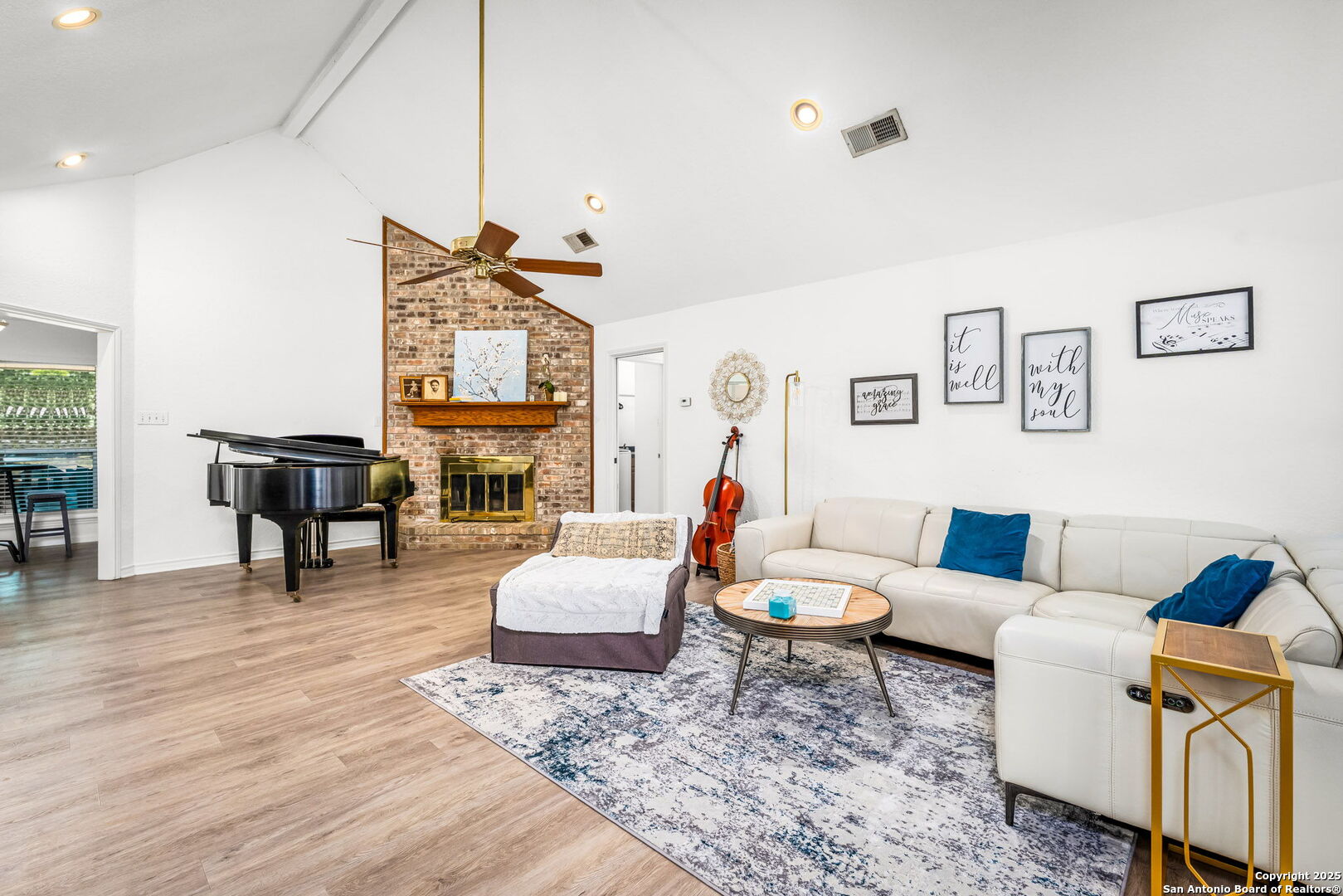 Located just three homes away from the 3-acre Lake Park in a golf cart friendly community, this beautifully maintained 3-bedroom, 2-bath home offers resort-style amenities right outside your door. Lake Park features a private neighborhood boat ramp, boat docks, sandy beach, grills, and a playscape, while the community also offers a clubhouse, tennis and pickleball courts, and a swimming pool. Since 2022, the home has received over $50,000 in upgrades, showcasing modern finishes and thoughtful improvements throughout. Enjoy a screen-enclosed patio for year-round outdoor living, and take advantage of seasonal boat parking in the driveway from Memorial Day to Labor Day. This property offers the perfect blend of comfort, convenience, and lake lifestyle in one of New Braunfels' most sought-after neighborhoods.