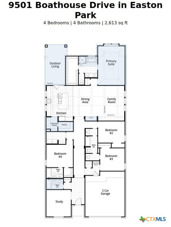 This 2,546-square-foot home offers a perfect blend of modern living and functionality, featuring 4 bedrooms and 4 bathrooms. Upon entering, you are welcomed by a spacious entryway that leads you to the heart of the home. The open concept layout seamlessly connects the living, dining, and kitchen areas, creating an idea space for both entertaining and everyday life. The primary suite is thoughtfully situated at the back of the home, providing a private retreat complete with a luxurious ensuite bathroom. At the front of the home, a dedicated study offers a quiet and focused space for work or relaxation. Additional features include a two-car garage that provides ample storage and convenience. This home was designed to cater to contemporary lifestyle, offering both style and practicality in every detail. Optional upgrades include- -Custom Enhanced Pantry - Extended outdoor living - Extended primary suite - Freestanding tub with shower in primary bath - Built in hutch in dining room - Built in cabinets in family room - Bath ILO storage