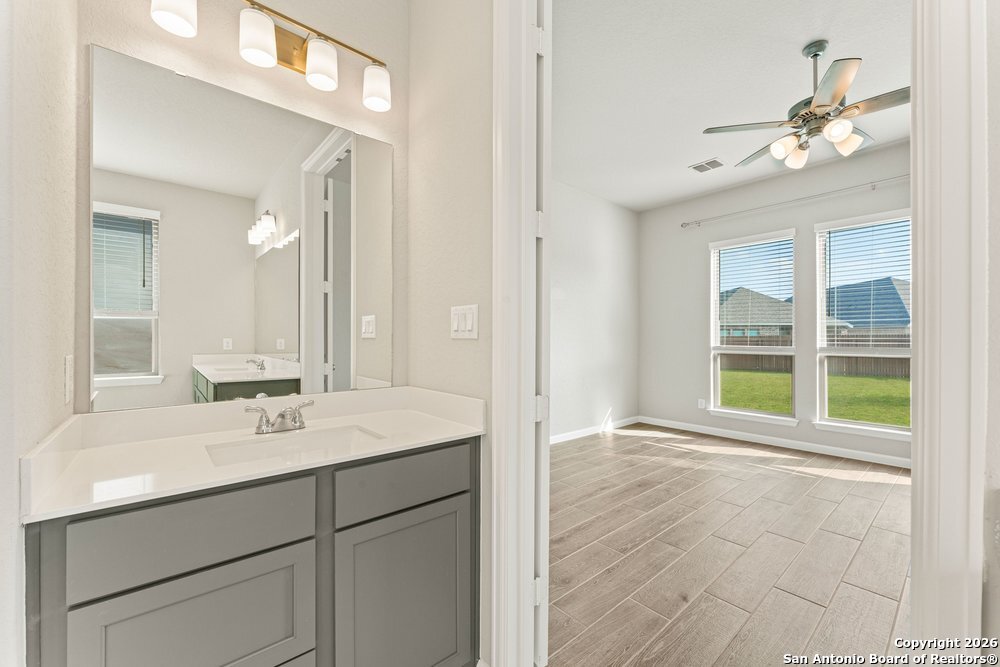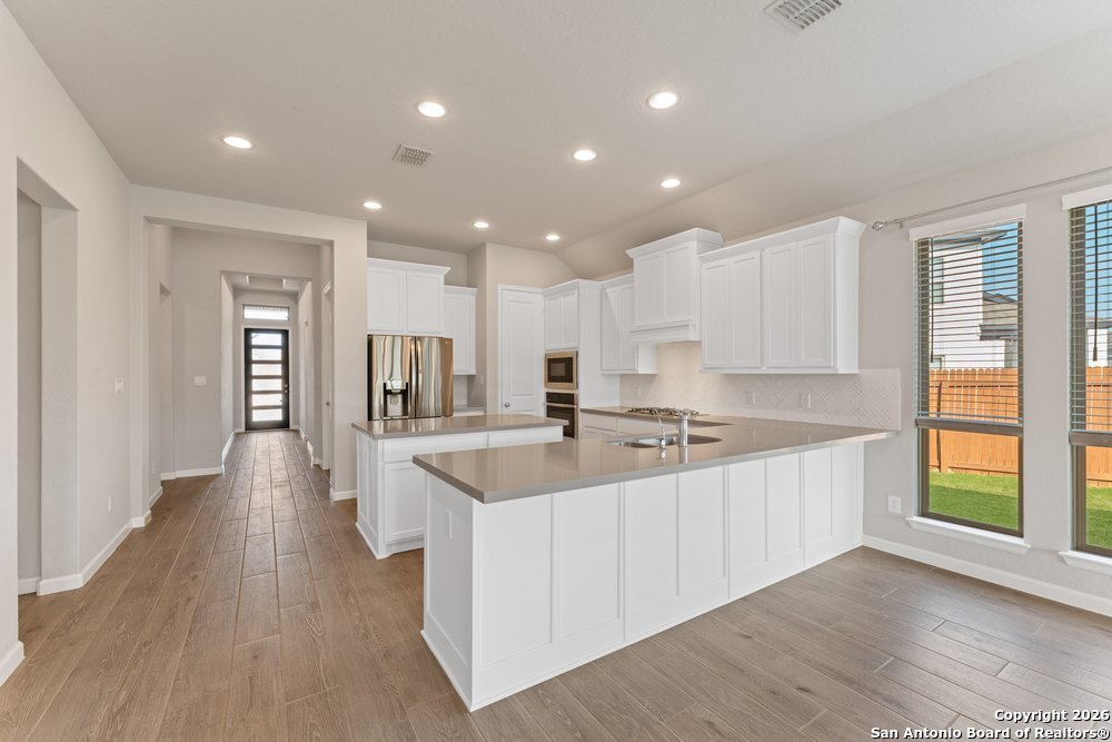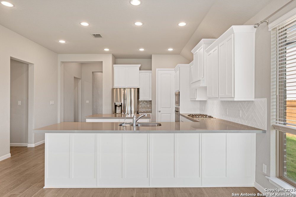 Get ready to fall in love with this gorgeous 4-bedroom, 3-bathroom gem. Step through the spacious entry that gracefully opens up into a fantastic open-concept living area. Imagine whipping up meals in the kitchen, complete with a cool center island and sleek stainless steel appliances, all while staying connected with your loved ones in the adjoining dining and family rooms with its soaring high ceilings and a wall of windows that lets in all that lovely natural light. This home includes a guest suite with its own private bathroom, making it perfect for visitors or even a home office. And when it's time to enjoy the outdoors, step out onto the covered backyard patio - it's just waiting for your weekend BBQs and lazy afternoon coffees .