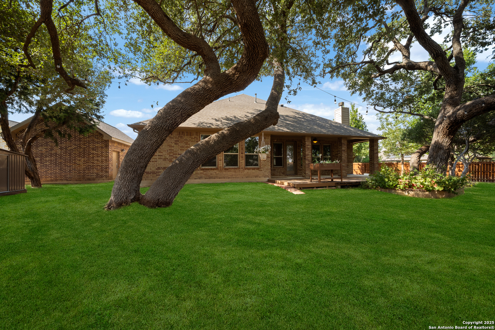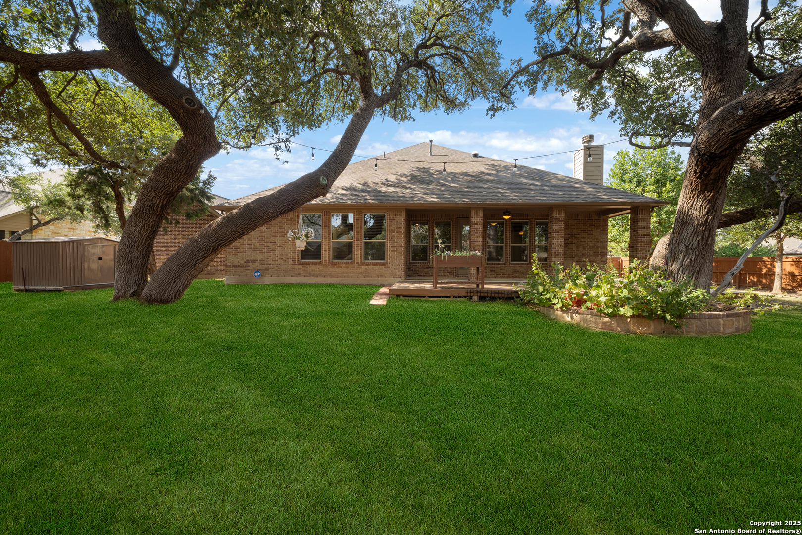 Welcome to Wind Gate Ranch, a beautiful gated community located on the northwest side of San Antonio! This beautifully maintained 1.5-story home offers the perfect blend of comfort, convenience, and thoughtful upgrades. Featuring 4 spacious bedrooms and 3 bathrooms all on the main floor with a gameroom/media room upstairs with a half bath, this residence is designed with modern living in mind. Step inside and you'll notice the elegant touches throughout-crown molding, high ceilings, and natural light enhanced by two sola tubes. The inviting floor plan features two living areas, a formal dining room, and a game/media room, providing ample space to gather and entertain. The office provides the perfect spot for working from home. Parking spots are abundant as well, with a 2-car garage plus a 3rd-car garage with upstairs storage. This offers plenty of room for hobbies and organization. The beautifully designed kitchen boasts a center island with a footrest bar, stainless steel appliances, gas cooking, custom pull-out cabinet drawers, stone around cooktop, travertine backsplash, built-in oven/microwave, reverse osmosis, and a walk-in pantry with charming string lights-perfect for the home chef. The cozy gas fireplace with faux logs creates a warm ambiance for family nights. Outdoor living shines here with a 6x20 raised garden bed, backyard deck, string lights, and a freshly stained/treated fence-all ready for entertaining. Additional exterior upgrades include solar panels, a 50 amp RV plug, generator hookups with an integrated system, and a 6x8 metal storage shed. Upgrades include solar panels, a mudroom, tray ceilings in dining room & master, crown molding throughout first floor, wood flooring, AC replacement, a replaced A/C evaporator coil, and a water softener which all add peace of mind. With its functional upgrades, thoughtful details, and prime San Antonio location, this home is more than move-in ready-it's built for the way you live today. Easy commute to highly sought-after schools, restaurants, and shopping.