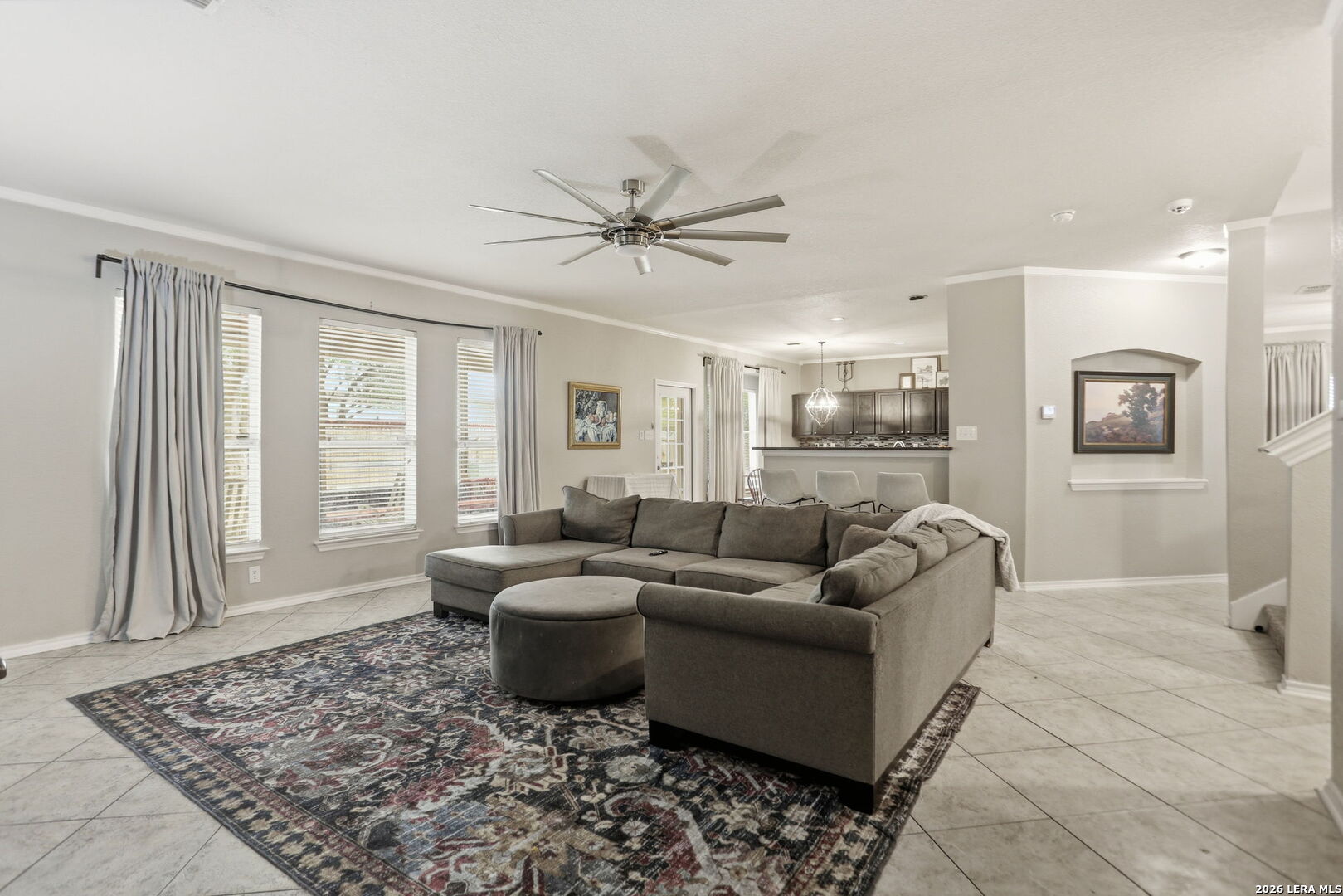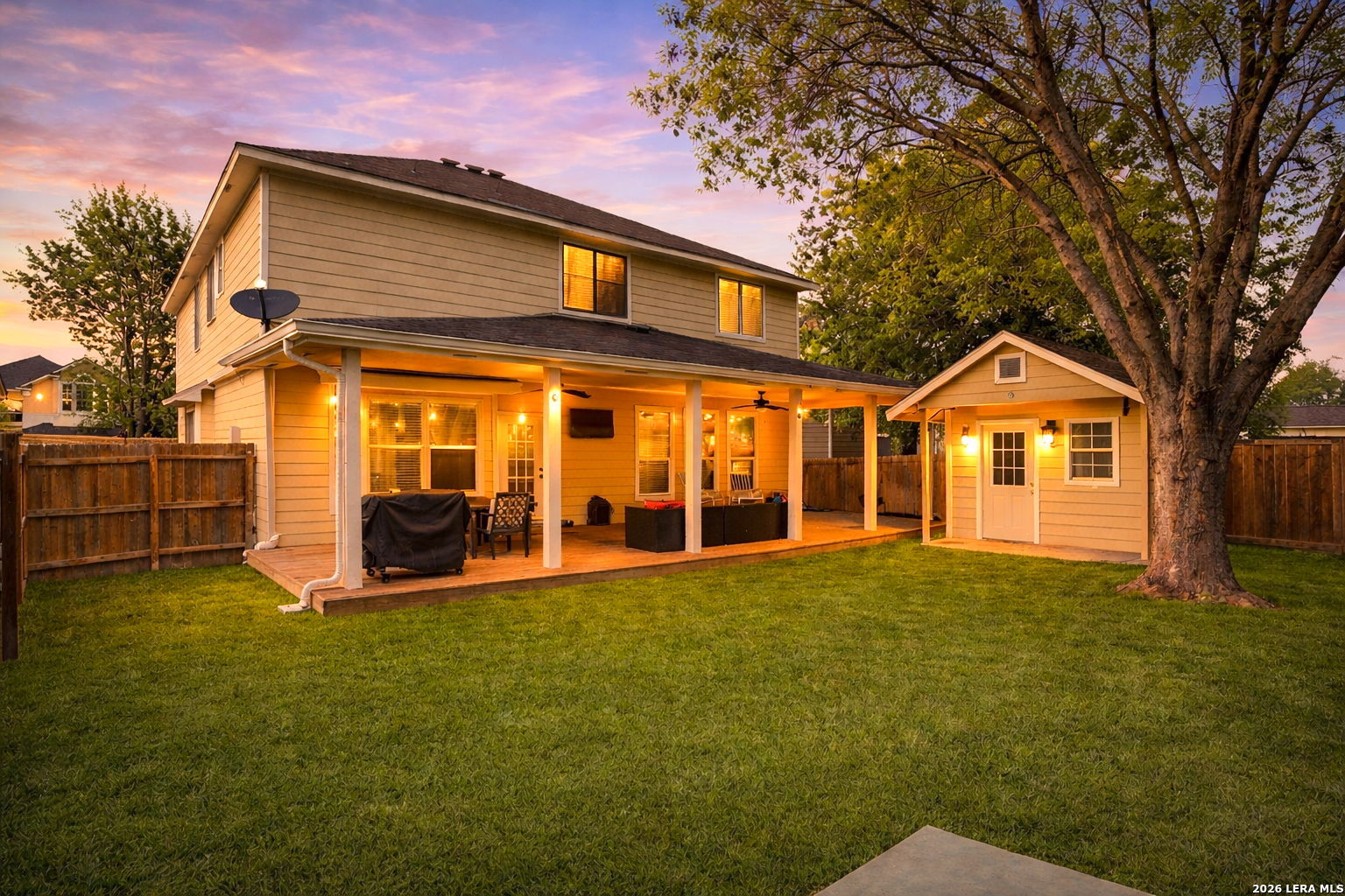 Located on a quiet cul-de-sac in the desirable Westover Place subdivision, this spacious 4-bedroom, 2.5-bath home features one of the largest floor plans in the neighborhood with approximately 3,427 square feet of thoughtfully designed living space. The open-concept layout is highlighted by elegant arched walkways, tile flooring throughout the main level, two generous living areas, and a built-in bar with shelving that adds both character and functionality for entertaining. The oversized kitchen is a true centerpiece, offering dark wood cabinetry, granite countertops, tile backsplash, gas cooking, a center island with breakfast seating, breakfast bar, walk-in pantry, and a dedicated office nook that provides the perfect workspace. The downstairs half bath also features granite countertops for a cohesive upgraded finish. Upstairs, all bedrooms are great in size, with a spacious game room that offers flexible living space for media, play, or work-from-home needs. The primary suite provides a relaxing retreat with split vanities, a seating area, tiled flooring, and a beautifully finished walk-in shower. Step outside to enjoy the huge covered deck-style patio overlooking the backyard, complete with a storage building and fenced kennel space ideal for pets, hobbies, or additional storage. Conveniently located with easy access to Loop 1604, Highway 151, and Alamo Ranch Parkway, this home is just minutes from the Westover Hills employment corridor, Lackland Air Force Base, and SeaWorld San Antonio, while also being close to major shopping, dining, and entertainment at Alamo Ranch including H-E-B Plus, Costco, Target, and numerous restaurants. Situated within the highly regarded Northside ISD and offering a manageable commute to Downtown San Antonio and the Medical Center, this home combines space, comfort, and location in one exceptional opportunity.