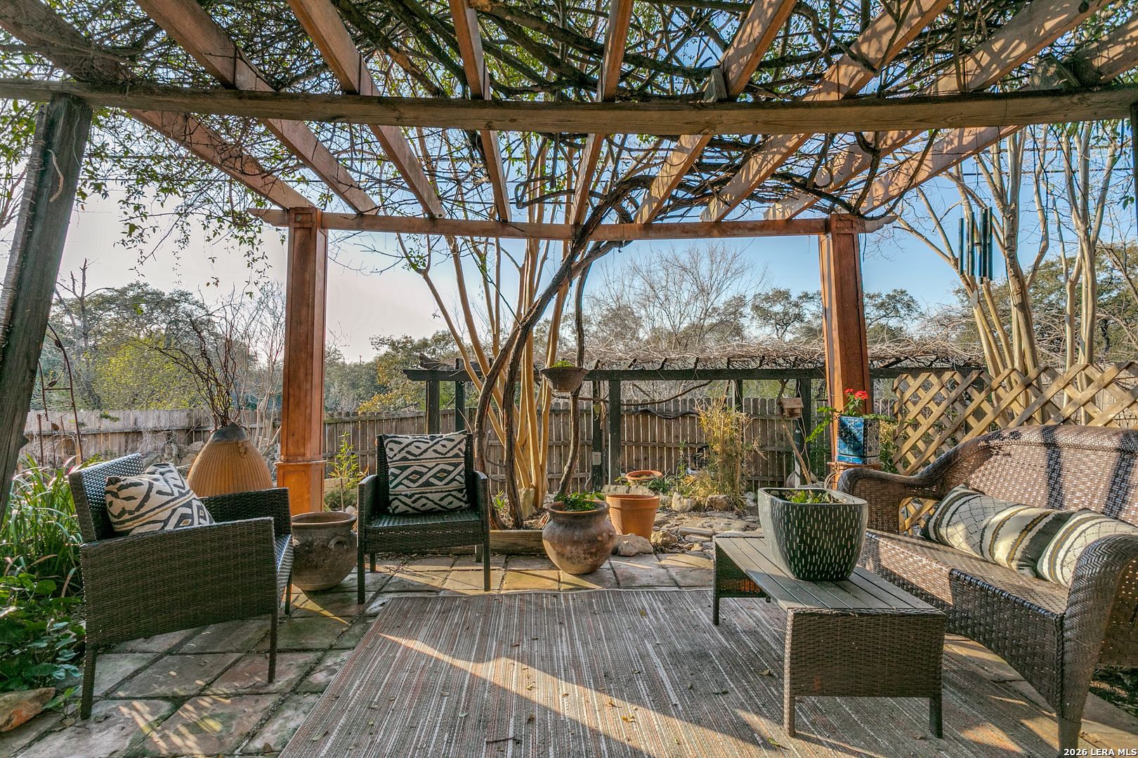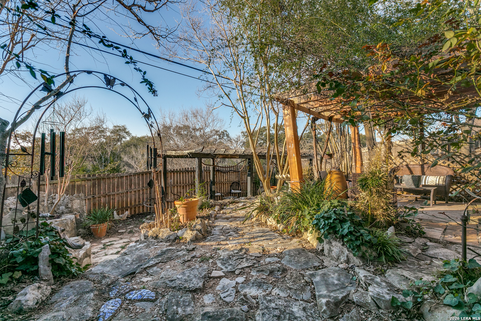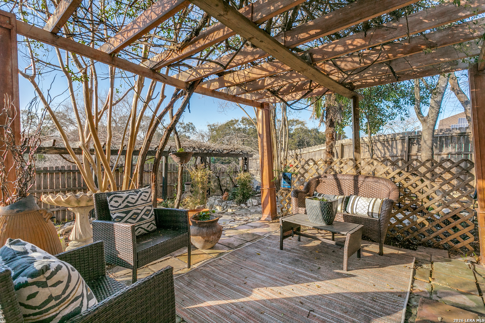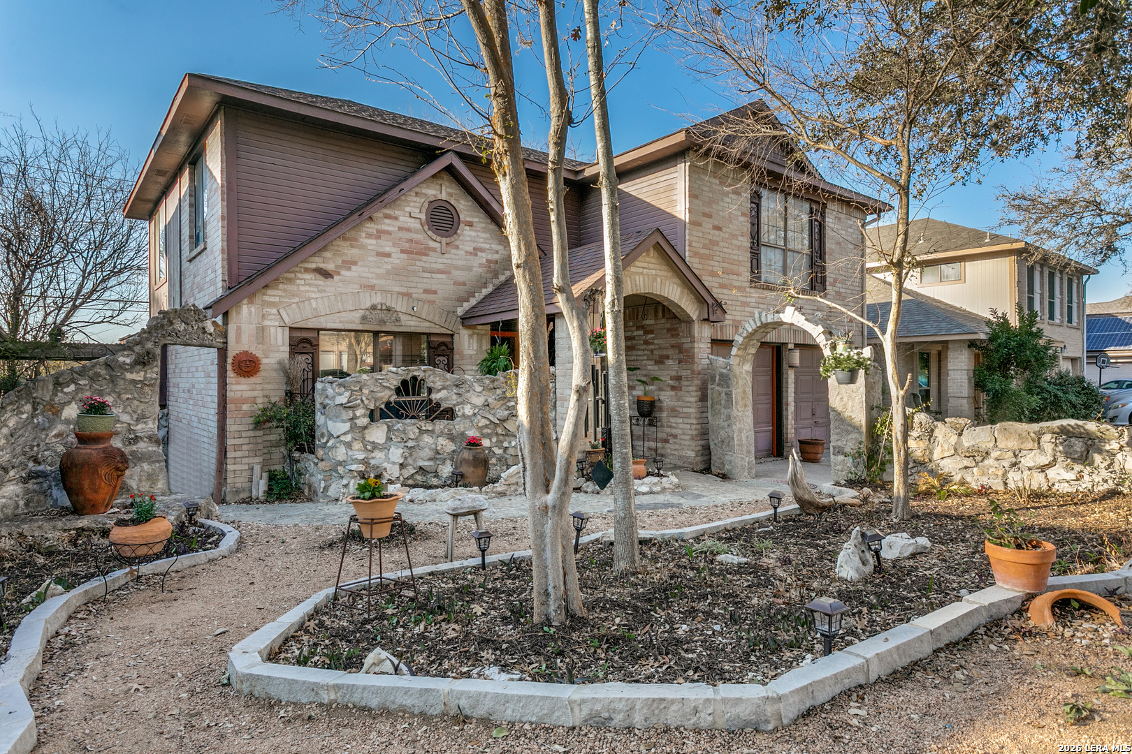 A World Unto Itself: Curated Global Masterpiece in the Heart of Stone Oak! Escape the ordinary and step into a residence where every room tells a story. Situated in the prestigious, enclave of Stone Oak, this is not just a house; it is a curated collection of international artistry, meticulously assembled for the discerning homeowner who craves character, depth, and soul. From the moment you cross the threshold, the world opens up to you. This home rejects the "cookie-cutter" aesthetic, opting instead for a rich, eclectic atmosphere that feels warm, inviting, and worldly. The grand entryway, designed with dramatic, hand-carved imported wood doors, gives way to an open floor plan where Moroccan-inspired lighting casts intricate shadows on artisan-finished walls. The living spaces are a masterclass in global design. Imagine entertaining in a formal living room featuring hand-set mosaic tile work, where jewel-toned accents blend seamlessly with rustic, hand-hewn wood beams. The gourmet kitchen is a culinary journey, featuring exotic, high-end stone countertops , paired with custom royal blue cabinetry, and brick work, that brings an international flair to the heart of Texas. The primary suite is a sanctuary of international luxury, featuring a spa-like en-suite bathroom that feels like a private hammam, with intricate tile work and luxurious, globally sourced textiles. The bedrooms offer a peaceful respite, each thoughtfully decorated to transport you to a different corner of the world-from sophisticated inspired textures to European-designed fixtures. Outside, the passion for travel continues. The backyard is an oasis reminiscent of a boutique Tulum resort, featuring lush landscaping, palm trees, and a covered loggia perfect for lounging under the stars. This home is designed for the traveler at heart, the art collector, or anyone who believes a home should be an expression of personal history and eclectic taste. Located just minutes from top-rated Stone Oak schools, fine dining, and premier shopping, this is a rare opportunity to live in a sanctuary that is globally inspired and locally positioned. Don't just live in San Antonio-live in the world. Please note that the outdoor photos were taken after a hard freeze. The yard looks like a tropical paradise in warm weather.