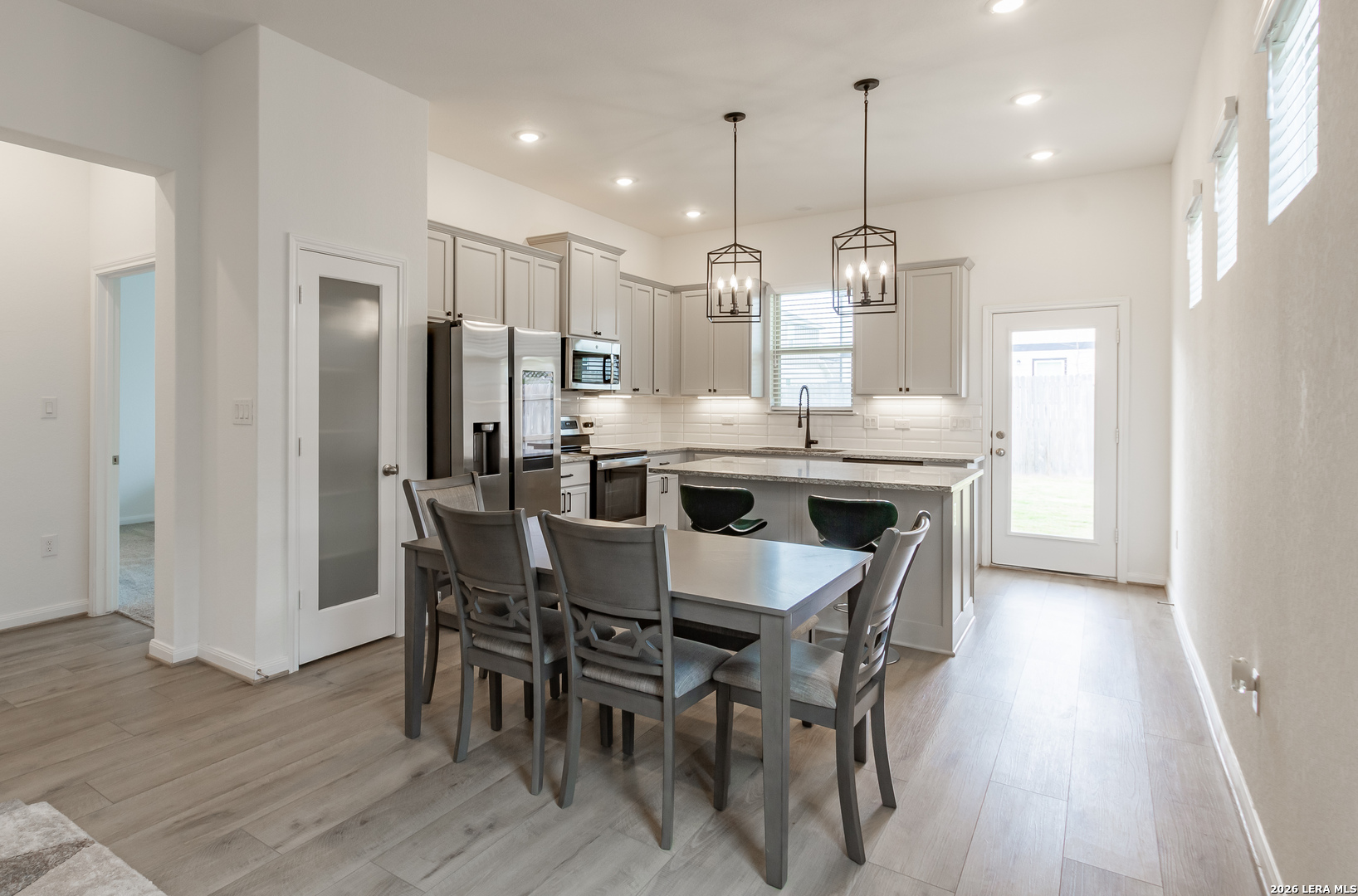 Welcome to this stunning 3-bedroom, 2-bath, single-story home located in the highly desirable Overlook at Creekside community of New Braunfels, Texas. Zoned to the highly acclaimed Comal ISD, this home offers both exceptional location and everyday convenience. Enjoy being just minutes from shopping, dining, a drive-in theater, outlet malls, and easy access to Interstate 35, making commutes to Austin and San Antonio a breeze. Plus, take advantage of the convenience of two major airports nearby. Inside, you'll find a high-end finish-out, soaring 10-foot ceilings, and a spacious open-concept living, dining, and kitchen layout designed for both comfort and entertaining. The chef's kitchen is a true highlight, featuring a large center granite island, abundant cabinetry, and beautiful natural light throughout. The generously sized primary suite offers a peaceful retreat with a charming bay window, while the additional bedrooms provide flexibility for guests, home office, or hobbies. You will fall in love with all this home has to offer. Schedule your private showing today!