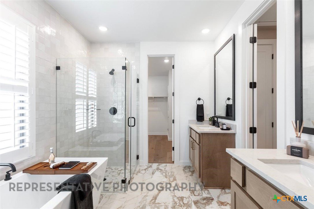 Step into this beautiful two-story home where soaring vaulted ceilings and expansive windows create a bright, open atmosphere filled with natural light. The spacious, airy layout is perfect for both everyday living and entertaining. At the heart of the home, you'll find a gorgeous chef's kitchen featuring sleek countertops, ample cabinetry, and a large island that invites gathering. The open-concept design flows seamlessly into the dining and living areas, making it easy to host family and friends. Upstairs, you'll discover generous bedrooms and flexible spaces designed for comfort and style. Every corner of this home showcases thoughtful design, from the light-filled great room to the elegant finishes throughout. Enjoy a perfect balance of warmth and sophistication in a home that feels both grand and inviting-a true showcase of craftsmanship and natural beauty.
