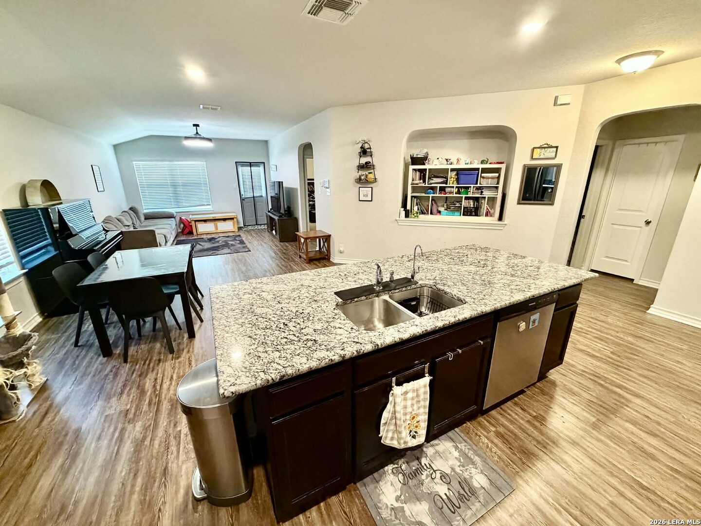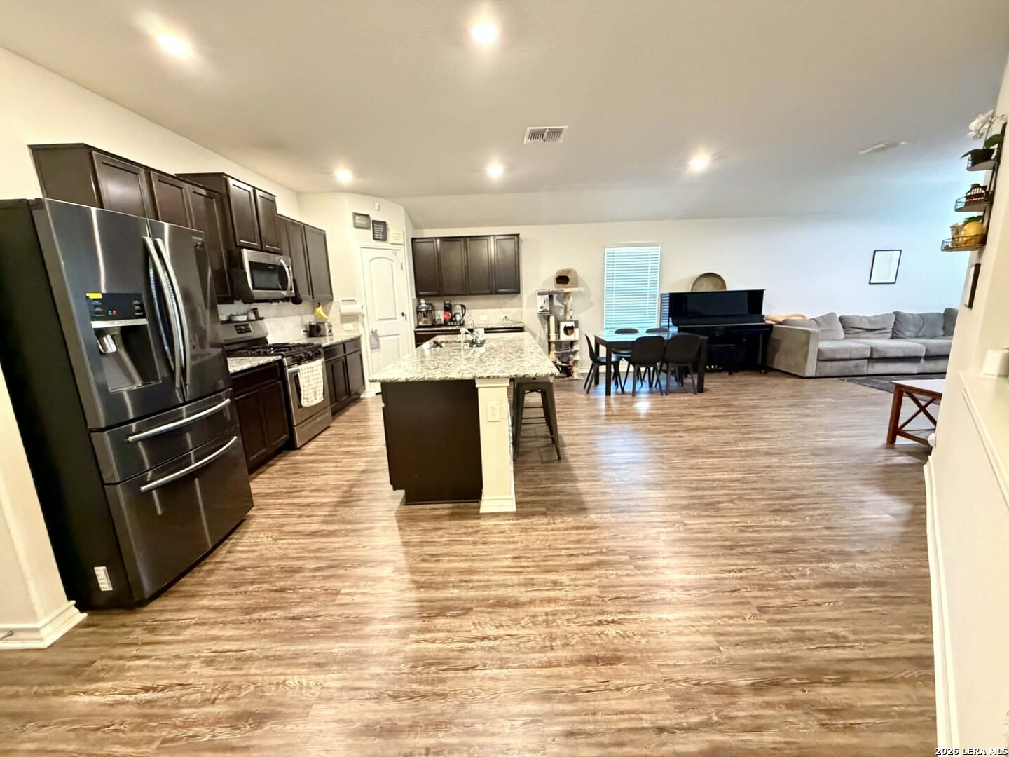 Discover this beautifully well-maintained home offering 4 bedrooms and 2 full baths. Featuring an extended back patio and lots of open living space in a well thought out floorplan. Beautiful wood-look tile floors are cool in the heat and easy to clean always and the featured oversized island in the kitchen becomes an easy hub for activities and hosting. Moon Shine Ln. is perfectly positioned in the highly sought-after Valley Ranch community where residents enjoy resort style amenities including sparkling pools, exciting waterslides, a neighborhood park with miles of scenic walking trails. Conveniently located just off Calibra Road and Loop 1604, this location provides quick access to 1604 and surrounding areas.