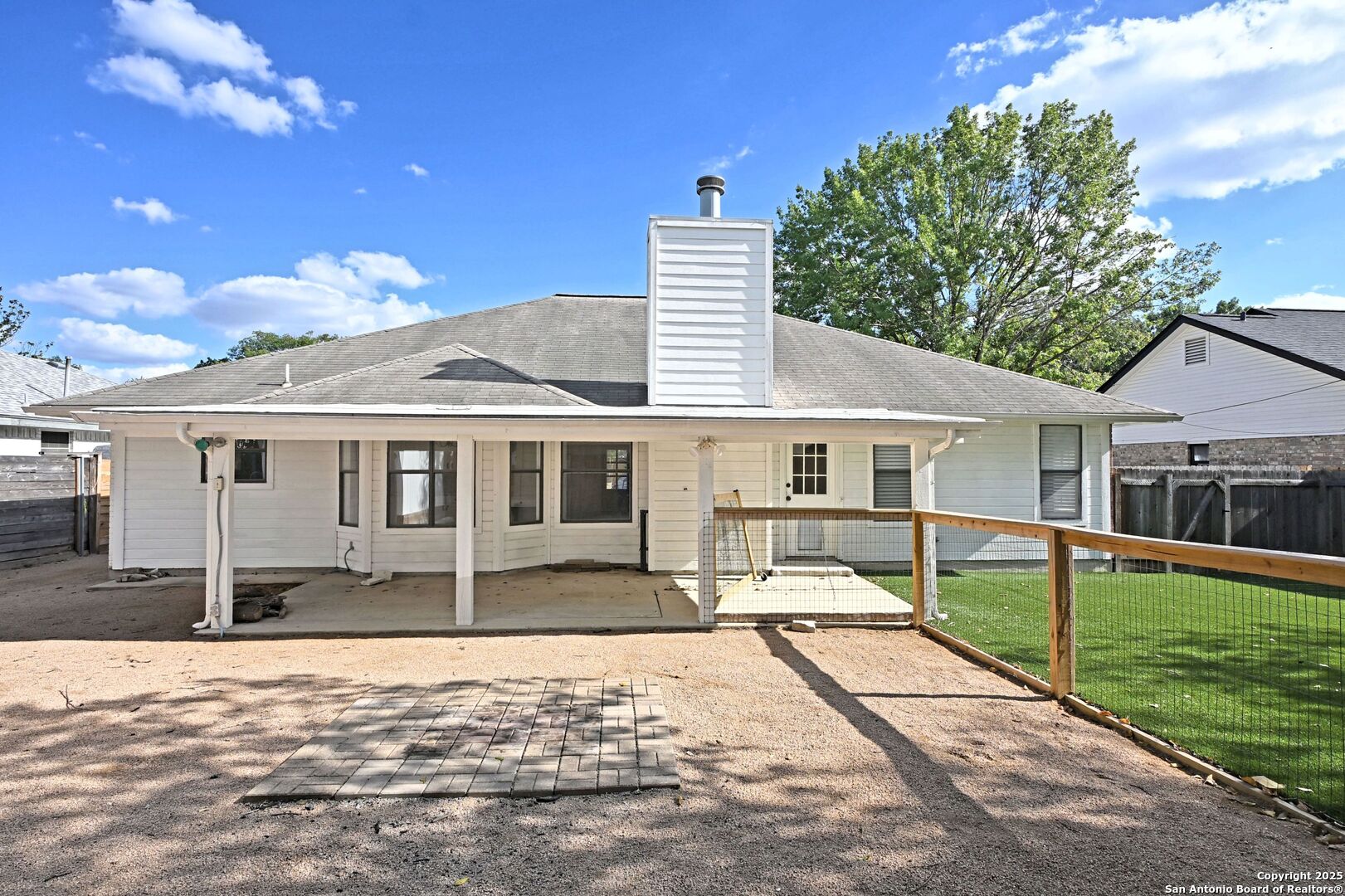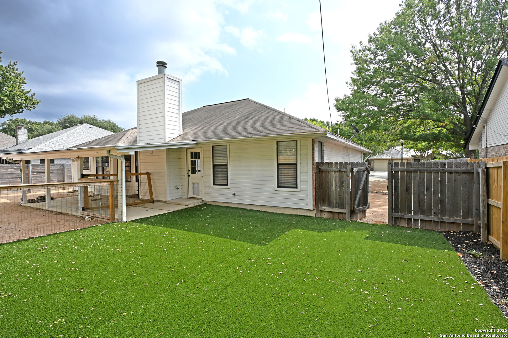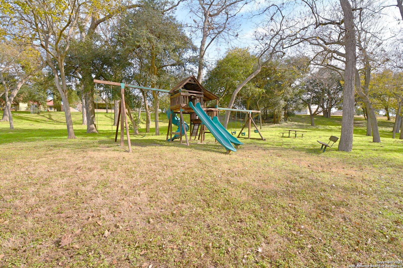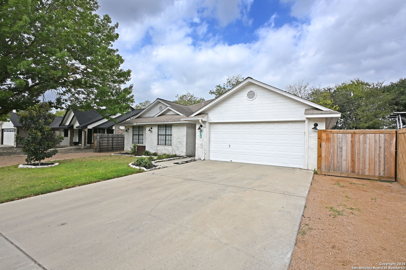 Welcome to the River Tree community where this stylish and well kept 3 bed/2 bath home with a thoughtfully designed modern farm house style interior. Enter into the inviting spacious living room with high beamed ceiling and cozy wood burning fireplace. Tour the gourmet kitchen with exquisite marble counter tops, white shaker cabinets, and the bay window that illuminates the dining area. Additional dining space is available in the dedicated formal dining area with a modern chandelier. Escape into the world of luxury in the primary bedroom suite with elegant tray ceiling that helps open up the space, walk-in closet, and a private bathroom with dual sinks, shiplap walls, and tiled walk-in double shower featuring dual shower heads. The backyard is dog friendly with astro turf and dedicated fenced in areas. Park your RV or other recreational vehicles on the left side of the home with gate. Enjoy the River Tree amenities with access to the Guadalupe River, boat ramps/dock, playground, tennis court, and community pool.