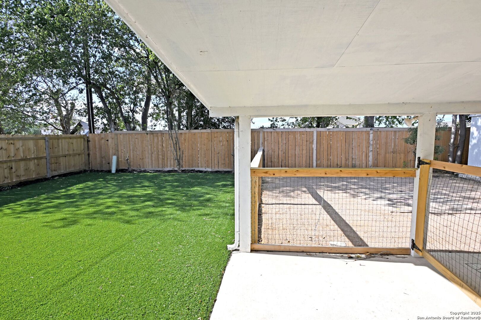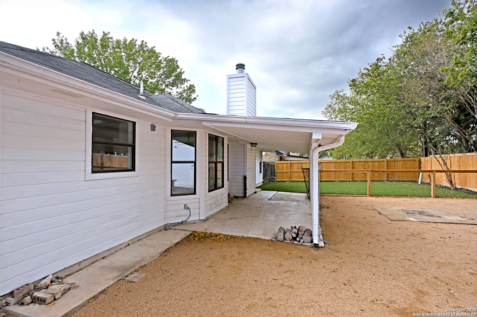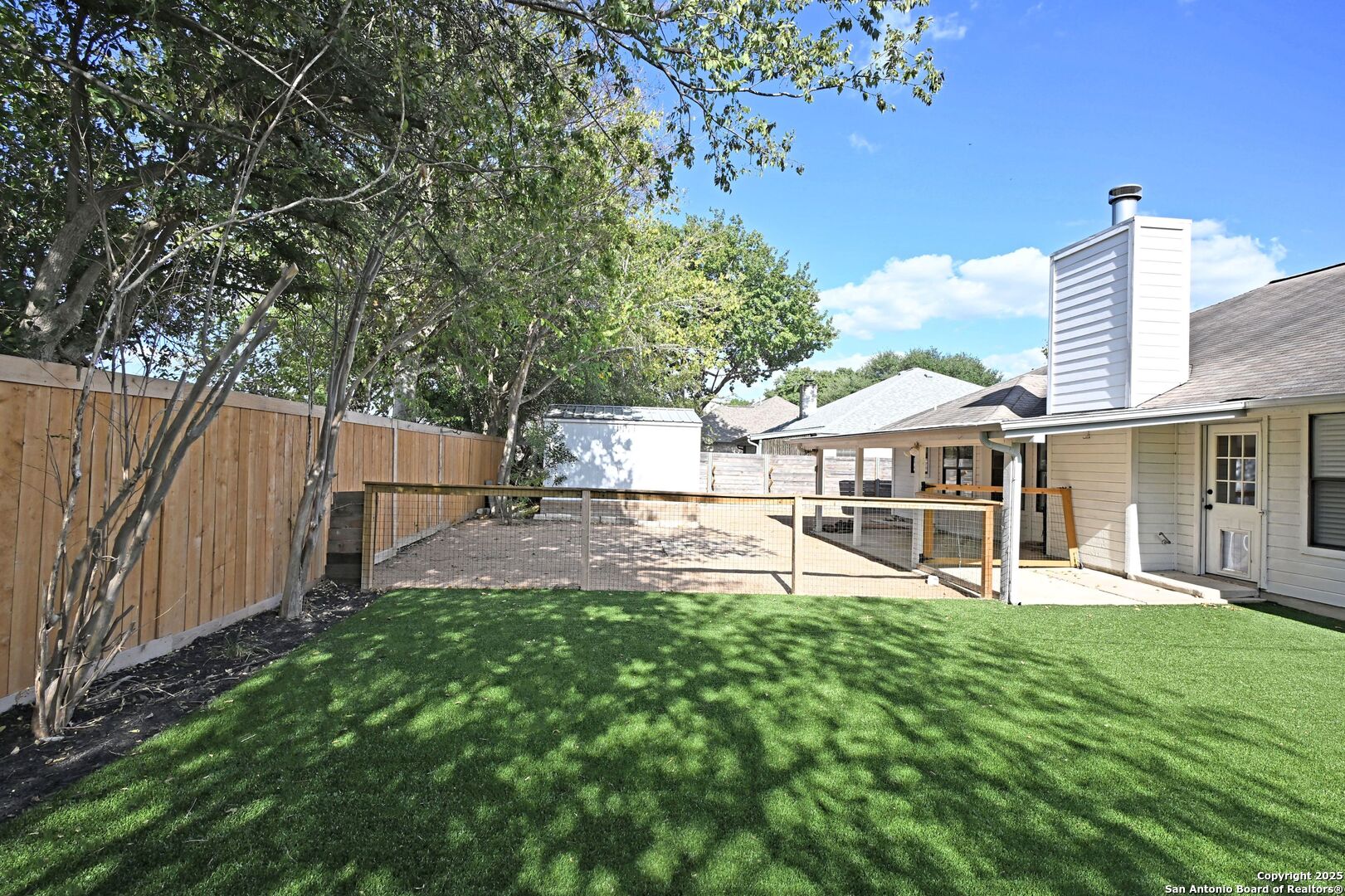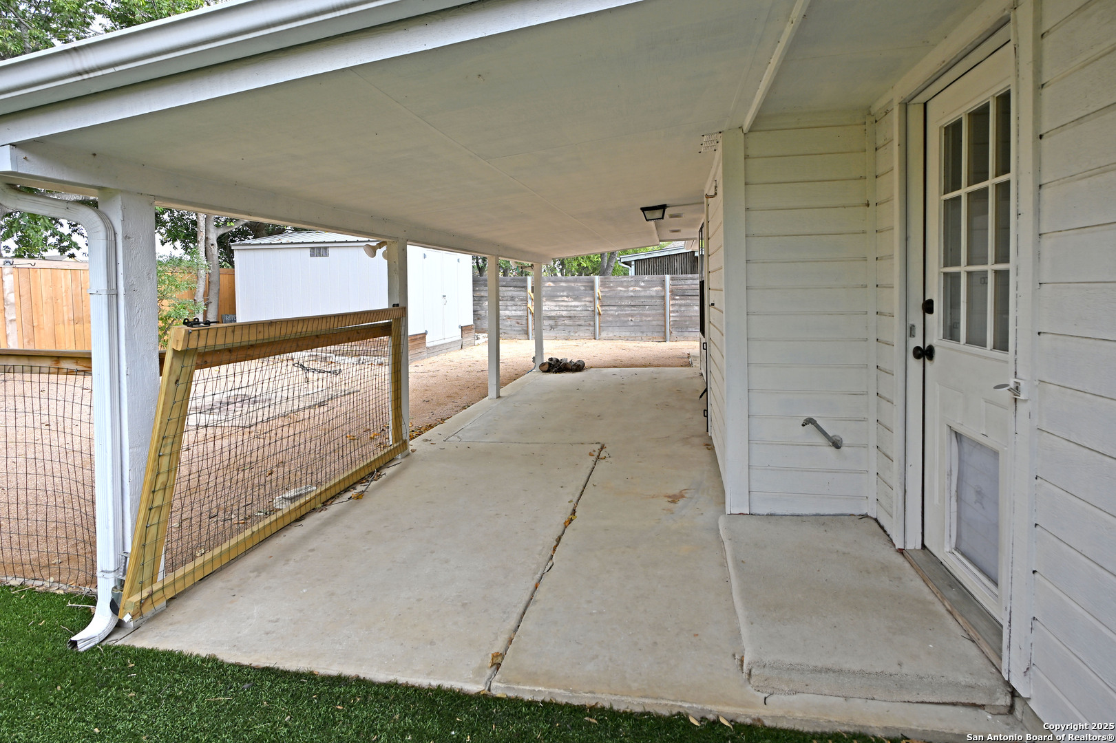 Welcome to the River Tree community where this stylish and well kept 3 bed/2 bath home with a thoughtfully designed modern farm house style interior. Enter into the inviting spacious living room with high beamed ceiling and cozy wood burning fireplace. Tour the gourmet kitchen with exquisite marble counter tops, white shaker cabinets, and the bay window that illuminates the dining area. Additional dining space is available in the dedicated formal dining area with a modern chandelier. Escape into the world of luxury in the primary bedroom suite with elegant tray ceiling that helps open up the space, walk-in closet, and a private bathroom with dual sinks, shiplap walls, and tiled walk-in double shower featuring dual shower heads. The backyard is dog friendly with astro turf and dedicated fenced in areas. Park your RV or other recreational vehicles on the left side of the home with gate. Enjoy the River Tree amenities with access to the Guadalupe River, boat ramps/dock, playground, tennis court, and community pool.