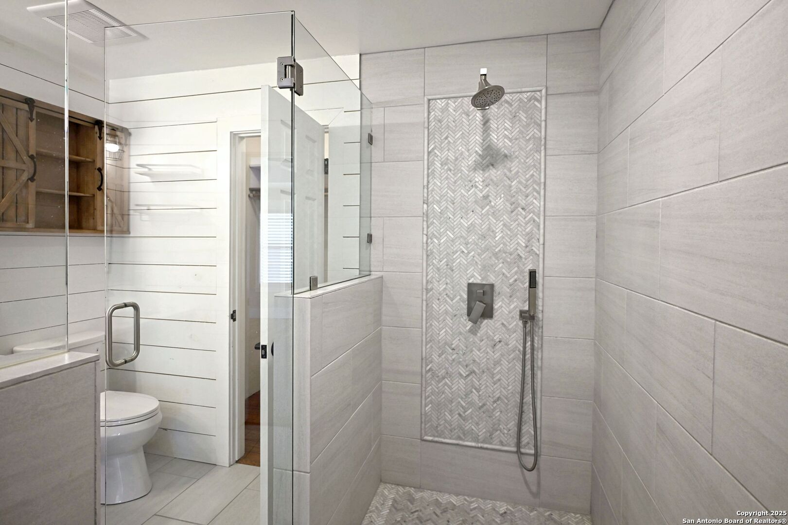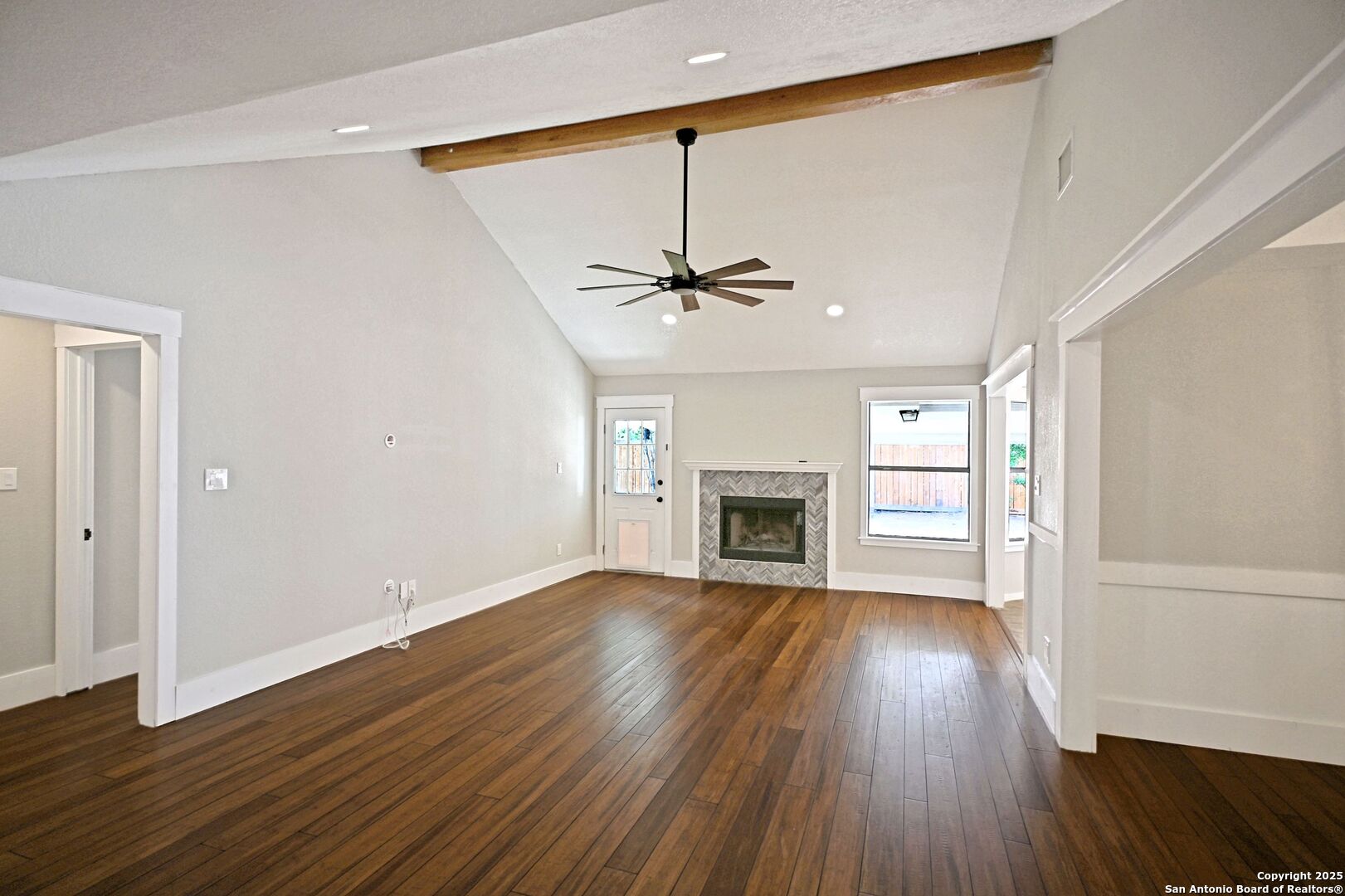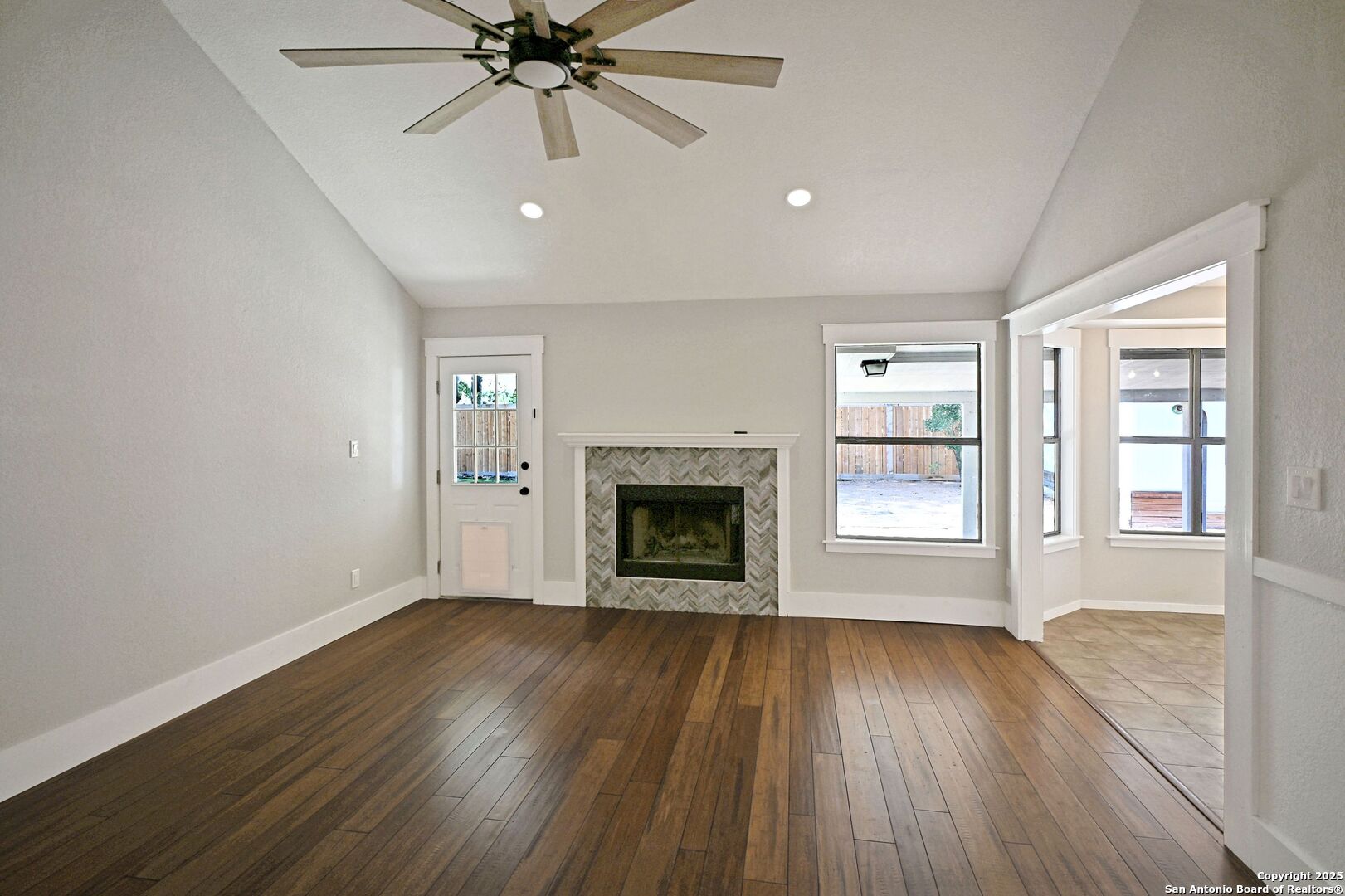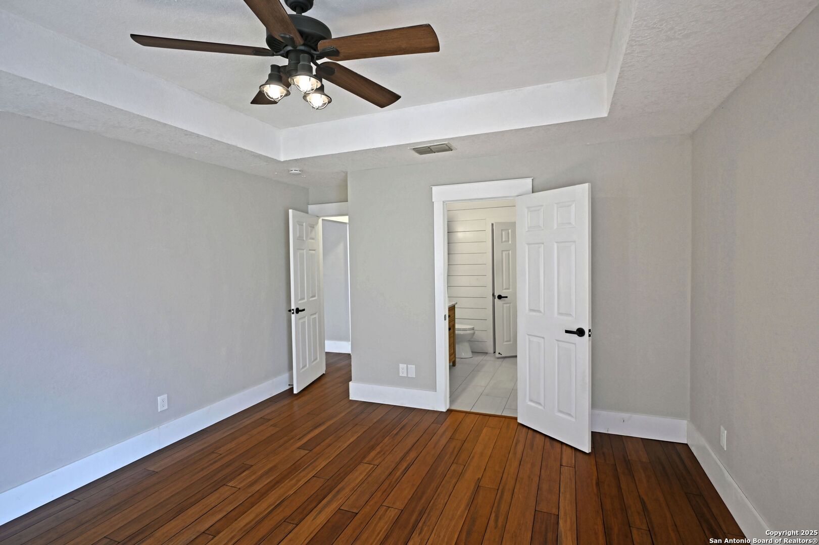 Welcome to the River Tree community where this stylish and well kept 3 bed/2 bath home with a thoughtfully designed modern farm house style interior. Enter into the inviting spacious living room with high beamed ceiling and cozy wood burning fireplace. Tour the gourmet kitchen with exquisite marble counter tops, white shaker cabinets, and the bay window that illuminates the dining area. Additional dining space is available in the dedicated formal dining area with a modern chandelier. Escape into the world of luxury in the primary bedroom suite with elegant tray ceiling that helps open up the space, walk-in closet, and a private bathroom with dual sinks, shiplap walls, and tiled walk-in double shower featuring dual shower heads. The backyard is dog friendly with astro turf and dedicated fenced in areas. Park your RV or other recreational vehicles on the left side of the home with gate. Enjoy the River Tree amenities with access to the Guadalupe River, boat ramps/dock, playground, tennis court, and community pool.