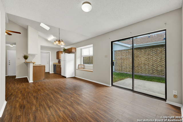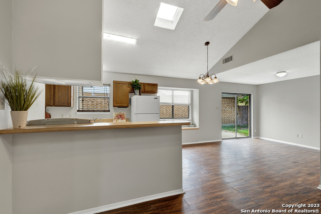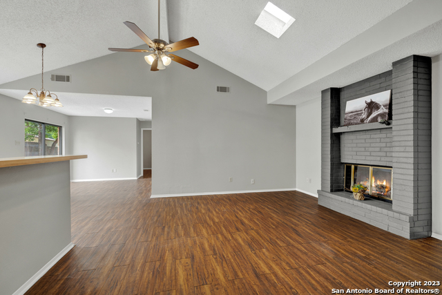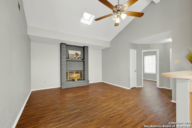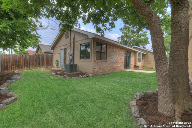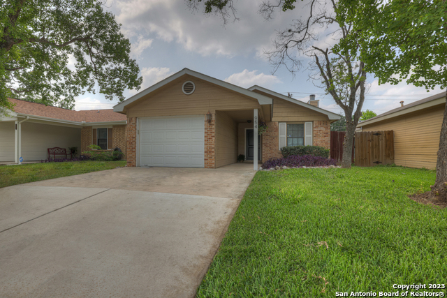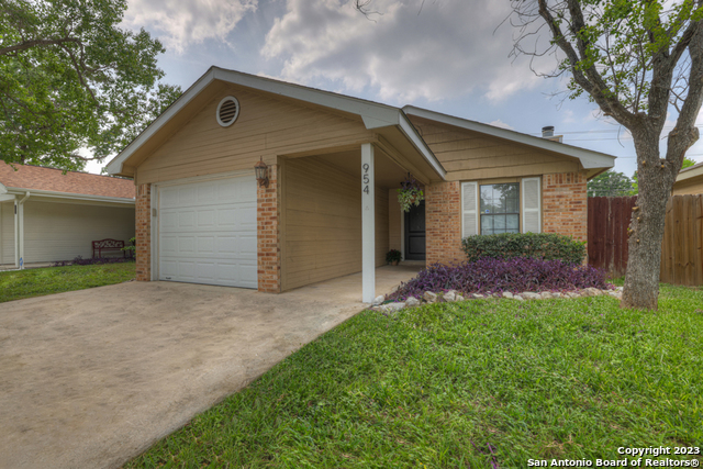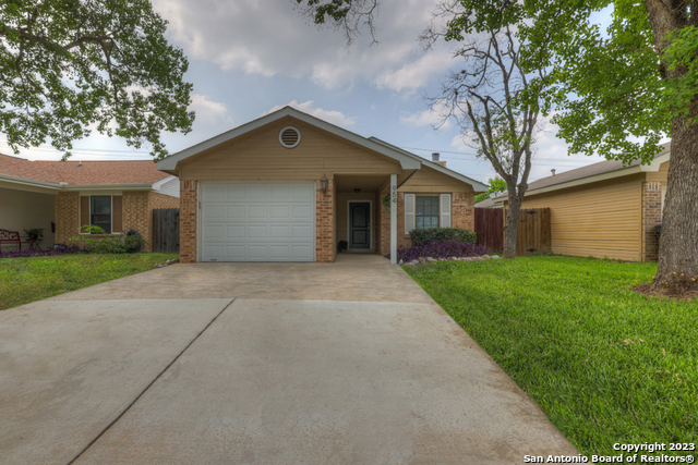 Centrally located yet hidden away, this delightful home is in a neighborhood with mature trees and peace and quiet. When you enter you'll notice high ceilings, natural light, and updates throughout. This home boasts three bedrooms, two full baths, vaulted ceilings in the living and primary suite, hard floors, a wood-burning fireplace, and new paint. With a well designed and open floor plan, this home feels spacious. Enjoy BBQing, playing catch with the kids, or unwinding in the privacy of the fenced yard that backs up to a greenbelt. Don't miss out on this opportunity to move into a charming home close to dining, parks, shopping, entertainment, and all that New Braunfels has to offer!