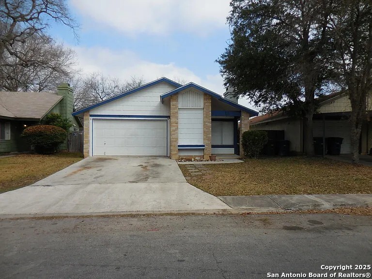 Great Three bedroom home with two baths. Large open living area with fireplace. Nice kitchen that includes a gas stove, refrigerator, dishwasher as is. Ample backyard. Patio on side of home perfect barbeque area. This is a great opportunity to buy a wonderful home that just needs a little TLC. Tile flooring throughout. Large attached two car garage. Plenty of windows gives this home a bright sunny feeling. Close to freeways, 1604, 410, Sea World, shopping -- anything you could want. Better hurry.
