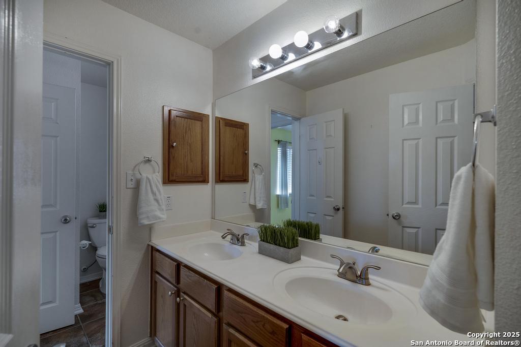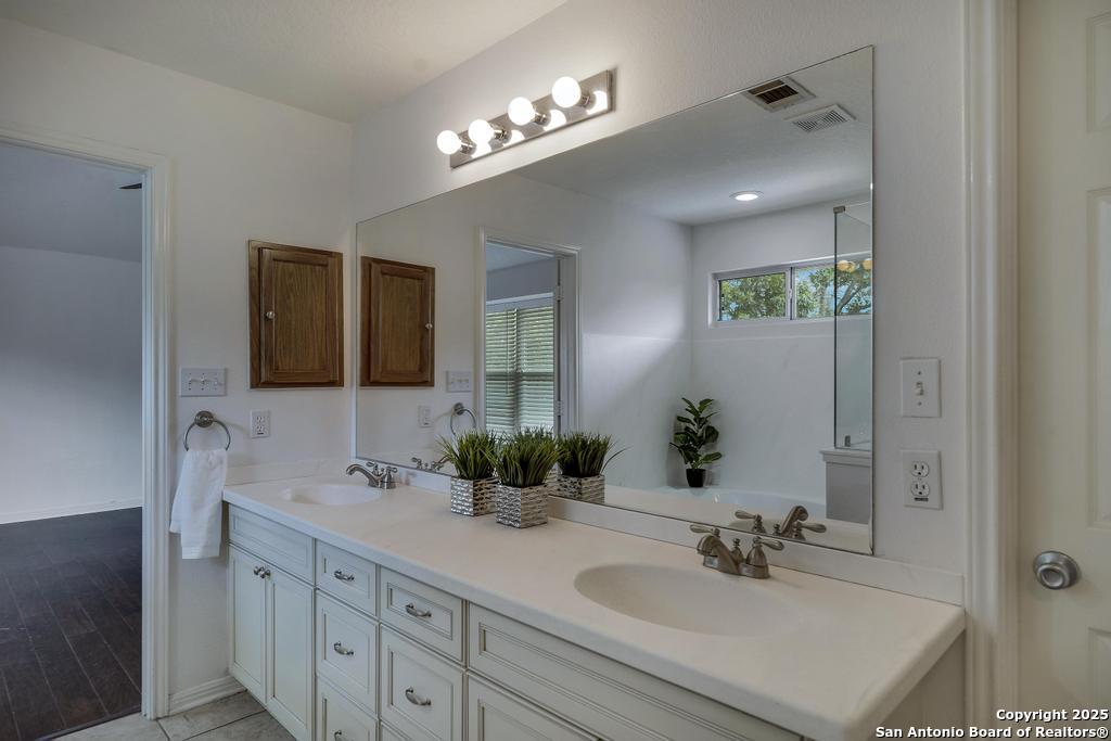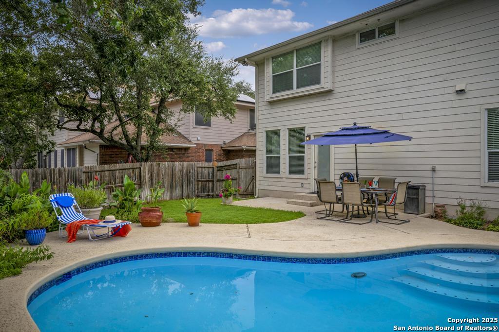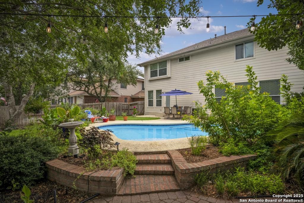 Open House: Saturday, November 1 from 1-3 pm! We will see you there! Your dream backyard oasis awaits and comes with a gorgeous 2-story brick traditional home nestled on a unique and very private cul-de-sac lot in the coveted & gated Westover Forest within The Reserve at Westover! This stunning home features a beautiful, shady resort-like backyard with a sparkling Gary Pool set in a landscaped treed green space that offers multiple areas for dining and entertaining. The light and bright interior welcomes with a large family room that includes a wall of windows overlooking the backyard and is highlighted by a gas fireplace. There is also a separate dining room and spacious office both with engineered hardwood floors on the main level. The spacious kitchen offers an abundance of counters and cabinets centered around the island, & stainless appliances such as newer dishwasher ('25) and disposal ('25) and a lovely breakfast room. Upstairs you will find a freshly painted 20' x 16' separate owner's retreat and ensuite with dual vanities, garden tub, separate shower and custom shelving in the primary closet. A wonderful game room measuring 18' x 17' features new carpeting (Aug '25) as well as a media closet. Three additional secondary good sized bedrooms and bath with separate shower from from the vanity with 2 sinks, round out the upper level of this lovely home. Newer roof was installed in 2025. Sprinkler system front & back yards. The 2-car garage also features water softener and shelving. Near Sea World, with easy access to 1604 and 151!