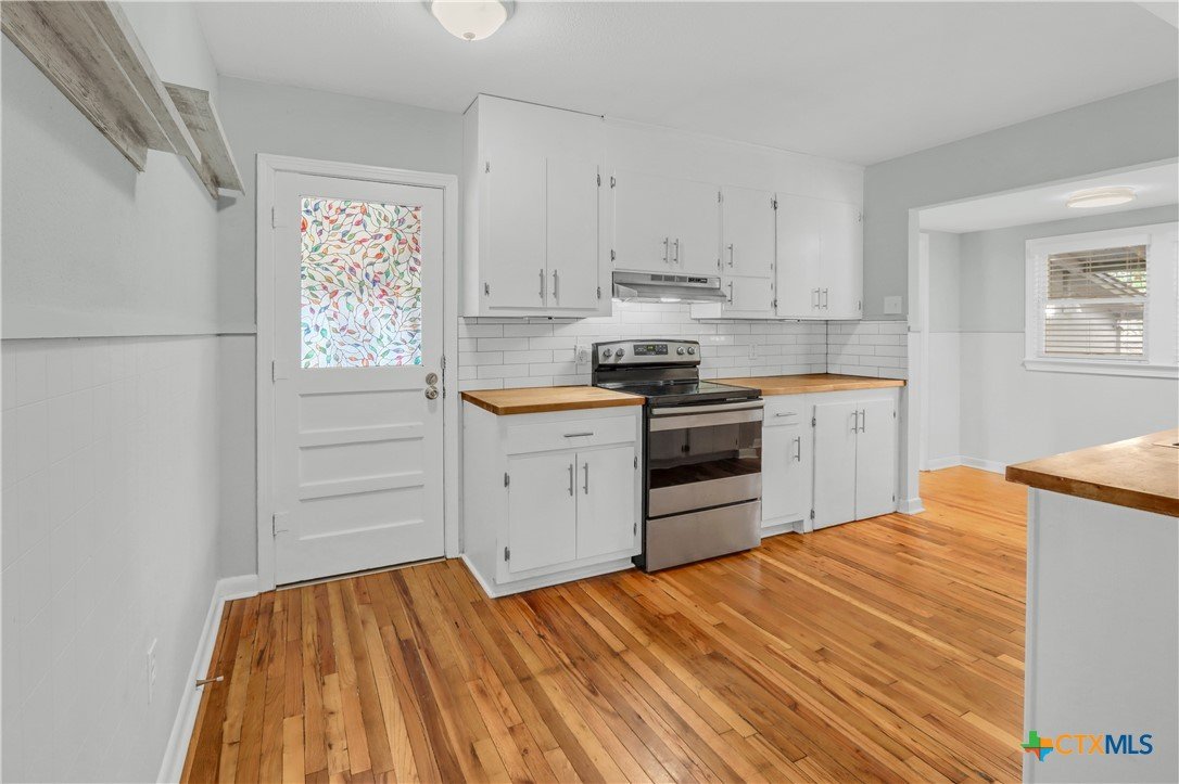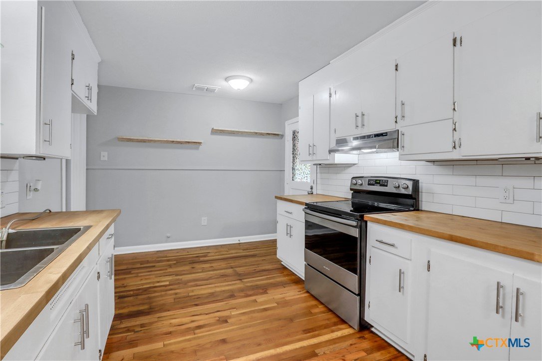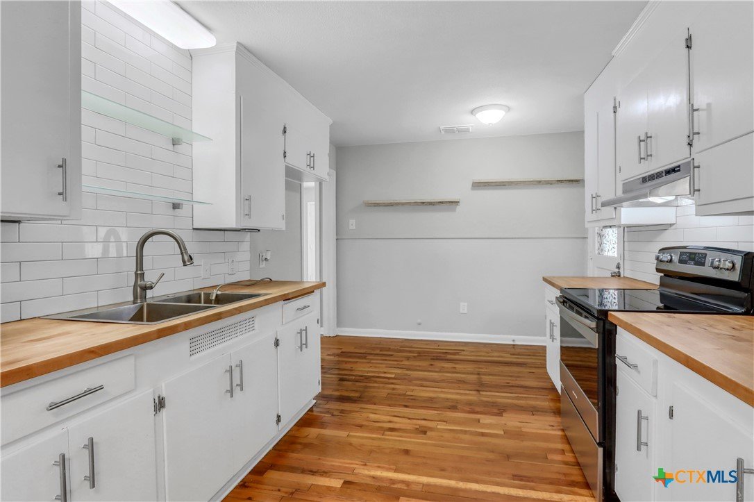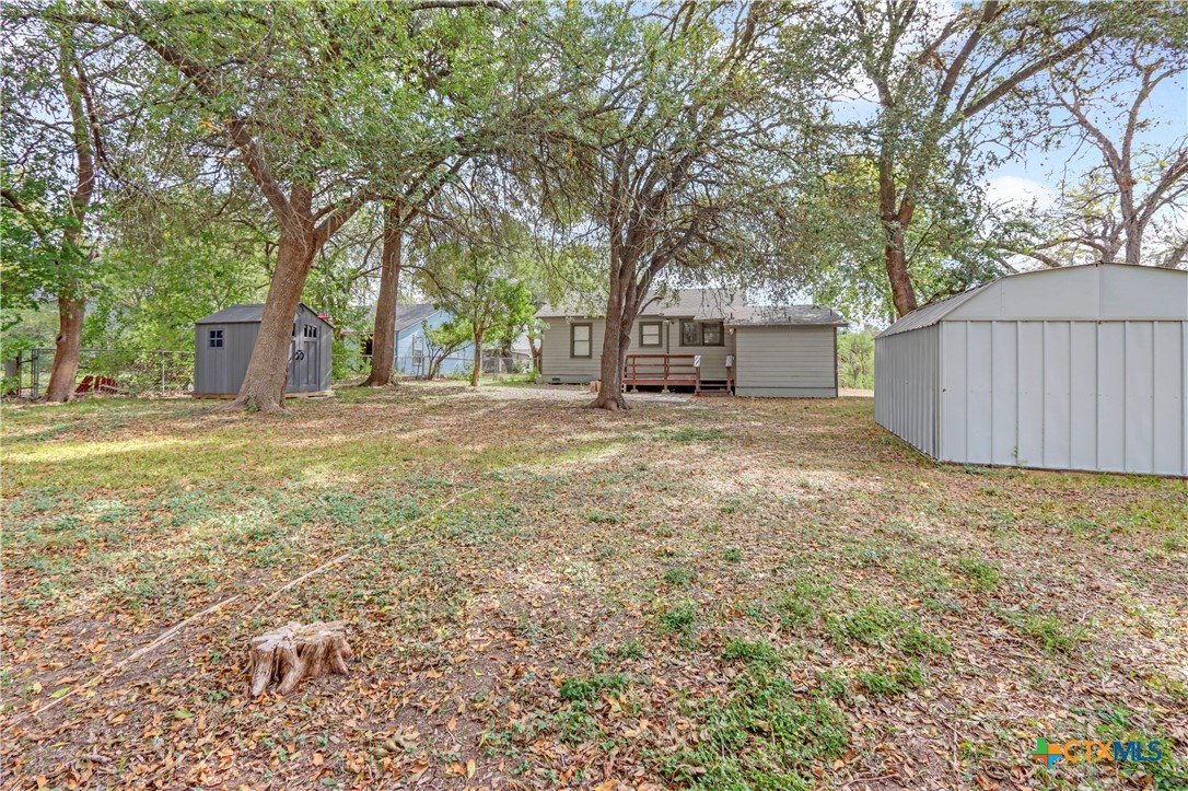 Conveniently located near downtown Seguin, retail, restaurants, and medical. This circa 1940s 3 bedroom 2 bath home features gorgeous original wood floors with some modern updates. Kitchen features butcher block counters, subway tile backsplash, and a cozy breakfast/dining area. This .24 acre lot includes mature shade trees, two storage units, carport, and additional alley access. Owner's suite has direct access to the back deck and expansive yard.