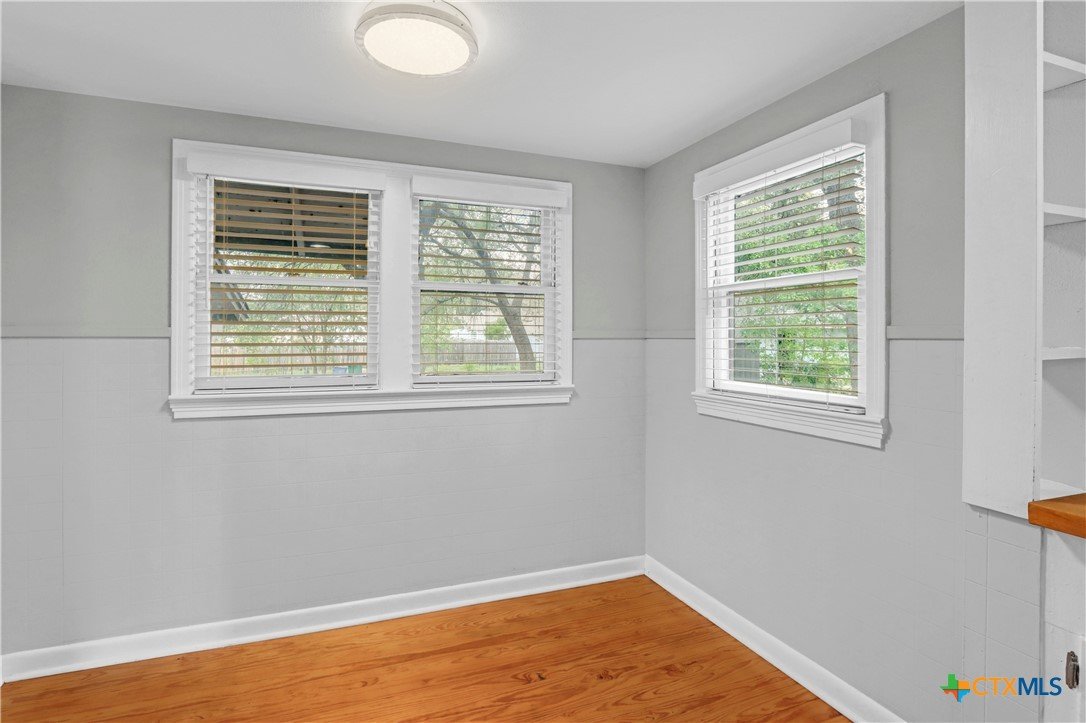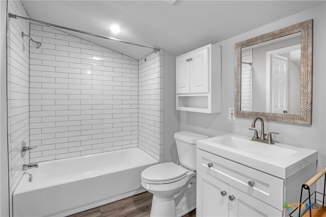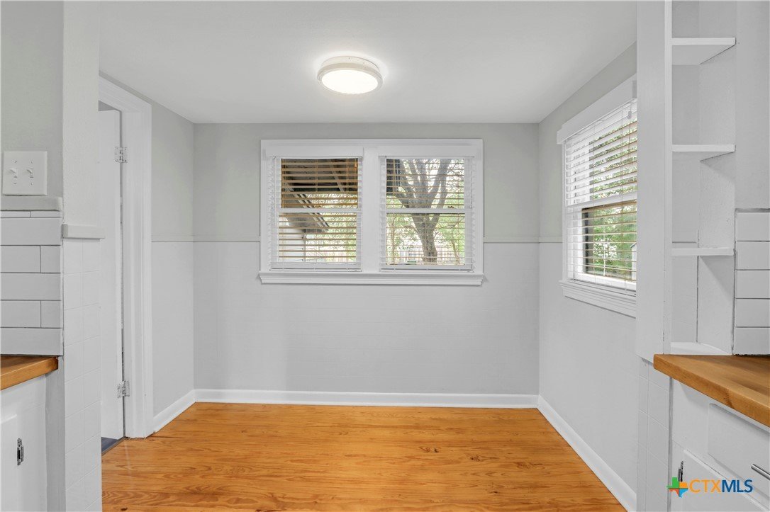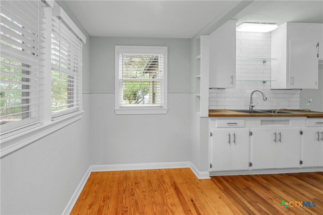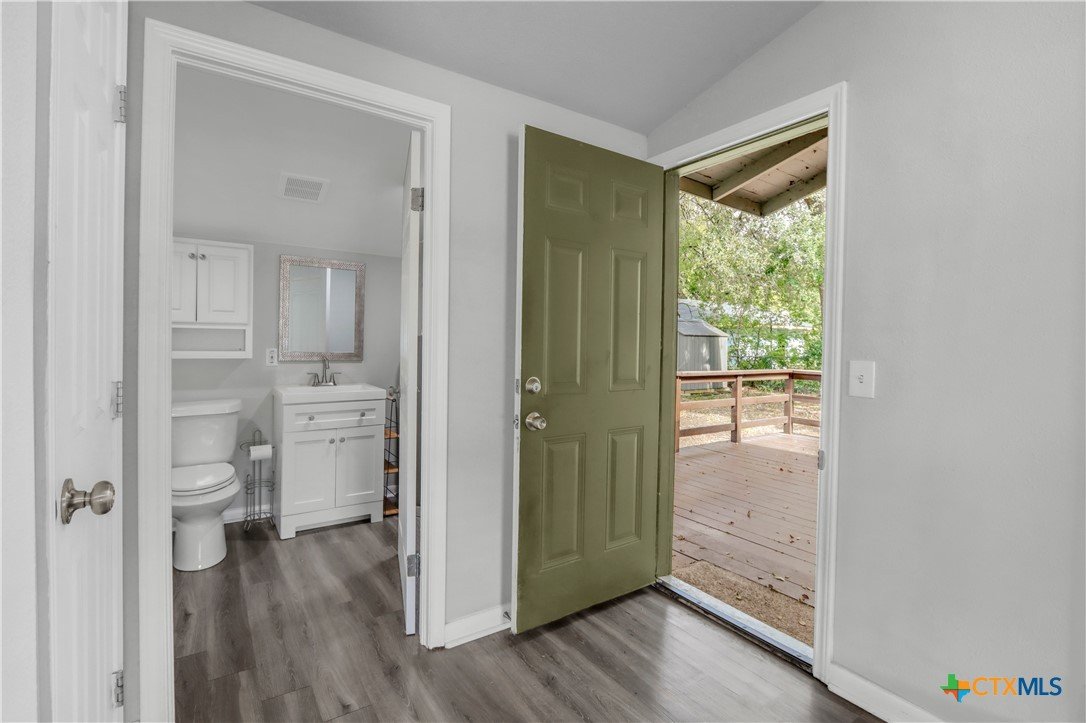 Conveniently located near downtown Seguin, retail, restaurants, and medical. This circa 1940s 3 bedroom 2 bath home features gorgeous original wood floors with some modern updates. Kitchen features butcher block counters, subway tile backsplash, and a cozy breakfast/dining area. This .24 acre lot includes mature shade trees, two storage units, carport, and additional alley access. Owner's suite has direct access to the back deck and expansive yard.