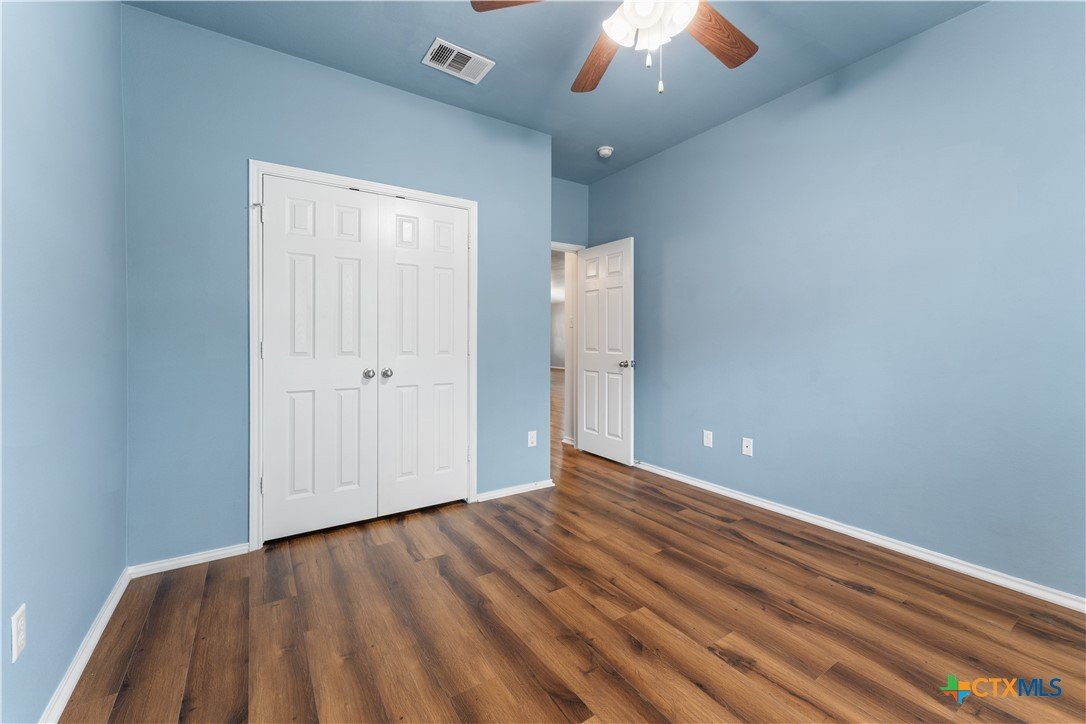 This home greets visitors with exceptional curb appeal, offering a warm and inviting welcome. The new luxury vinyl plank flooring, designed to resemble wood, provides both style continuity and functionality throughout. The open-concept layout features a spacious living area, an eat-in kitchen with 42" maple cabinets, a tiled backsplash accented with glass tiles, and a hand-stenciled custom accent wall in the dining area. The owner and secondary bedrooms are adorned with richly colored paint, adding character and charm. The exterior boasts three sides of brick construction, complemented by Hardi-pl siding on the back, including brick columns on the rear patio for-maintenance upkeep. Home also has a new roof added along with new sod! The community offers two pools, a children's splash zone, walking trails, a sports court and playgrounds, making it a truly desirable place to live. This home is undoubtedly a must-see!