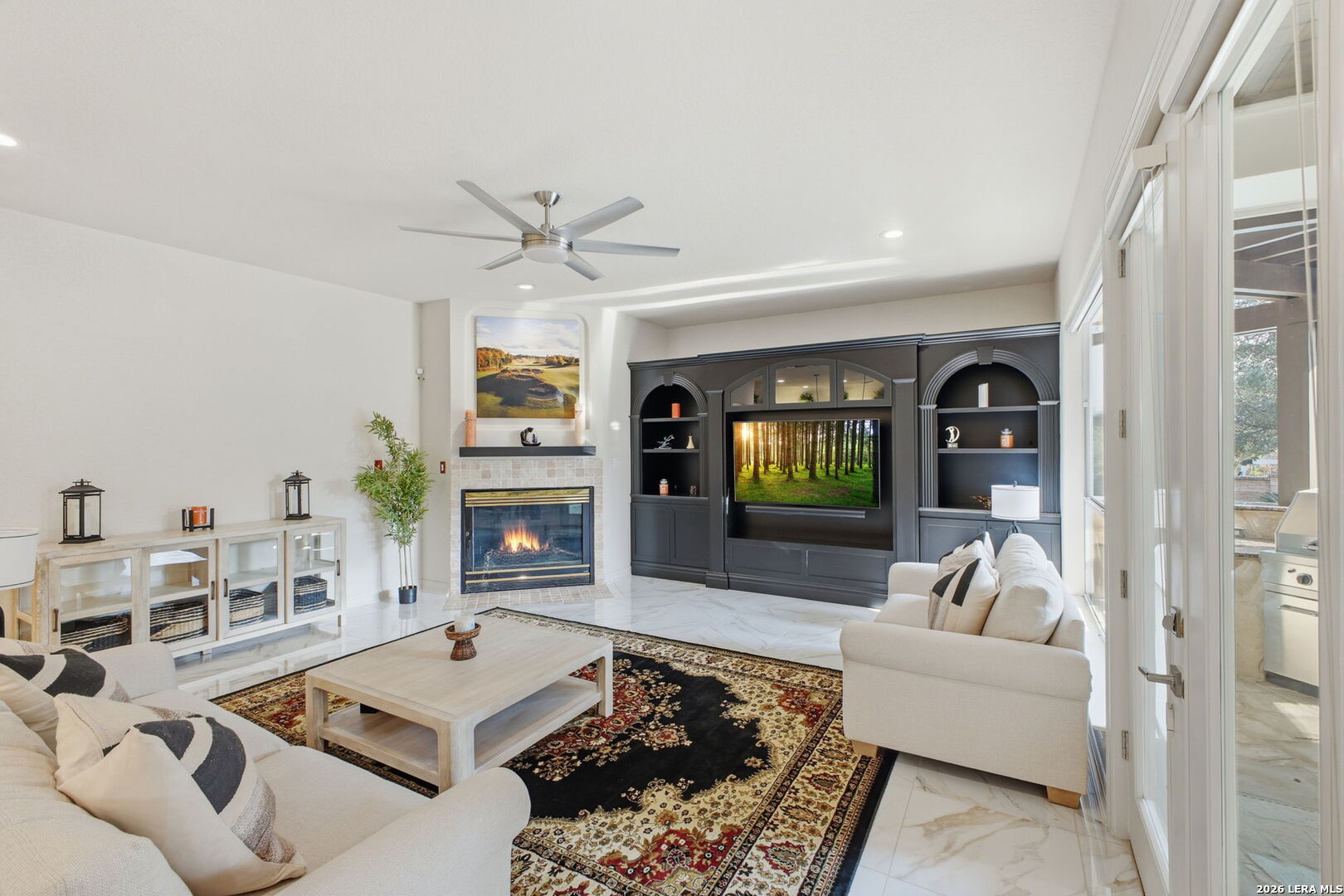 Luxury estate in a private gated community in Garden Ridge featuring pool, spa, putting greens, and in-home golf simulator. This custom home offers a grand entry, wine grotto with separate sub zero fridge, multiple private study spaces, and main-level primary suite with fully remodeled spa bath (2024). A true Chef's kitchen includes gas cooktop, quartz countertops, new stainless appliances, updated lighting, and open living spaces with gas fireplace. New reverse osmosis system in the home, tankless water heaters and so much more. Main level guest suite, fresh interior and exterior paint, hardwood floors, ceramic tile in wet areas, and new roof (2023). Upstairs features two bedrooms and large game room with fireplace. Backyard includes covered patio, outdoor kitchen, composite decking, FULLY RENOVATED heated pool and spa, professional landscaping, new irrigation system, and lighting. Exceptional privacy, luxury finishes, and golf-focused lifestyle.
