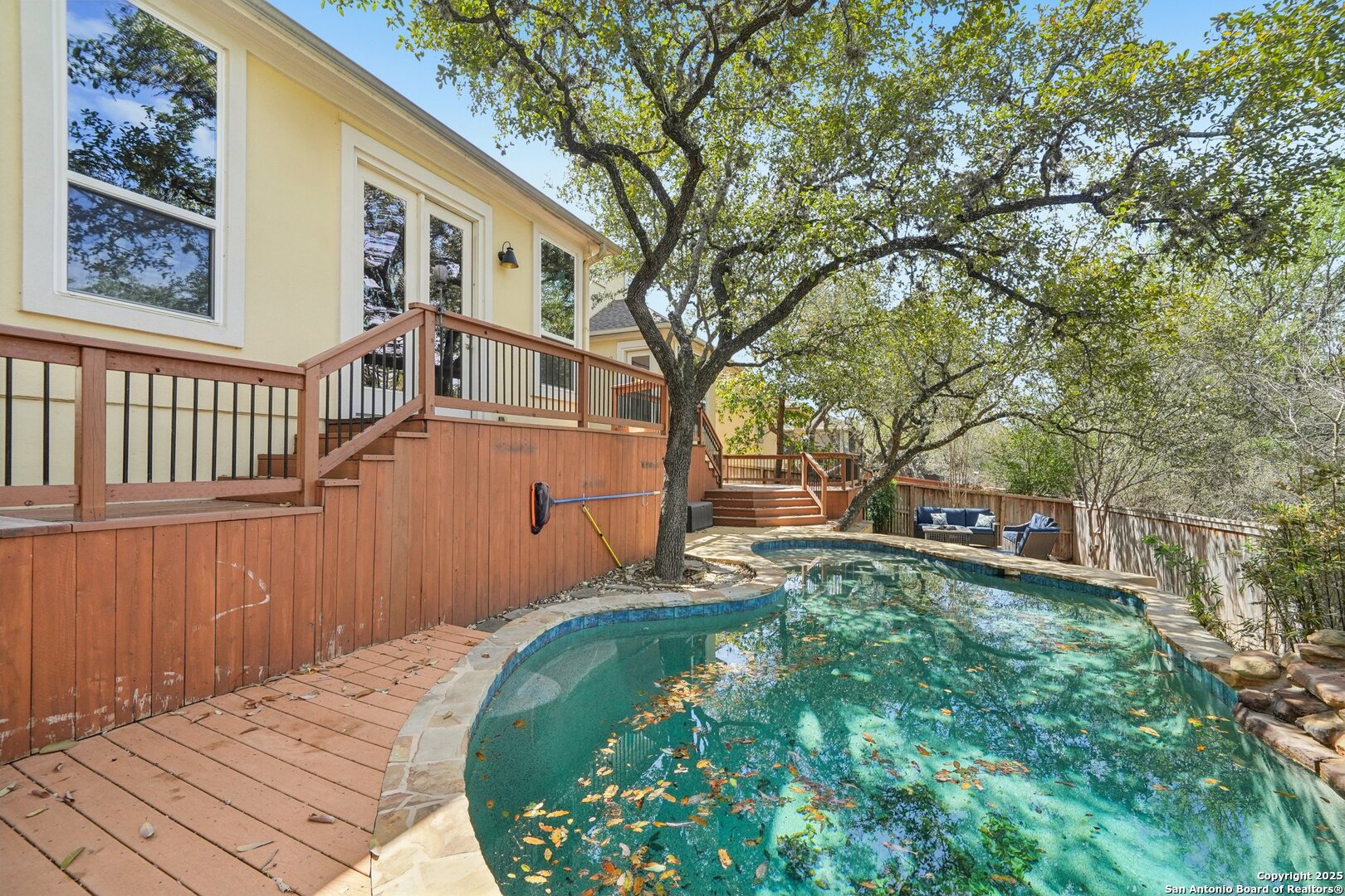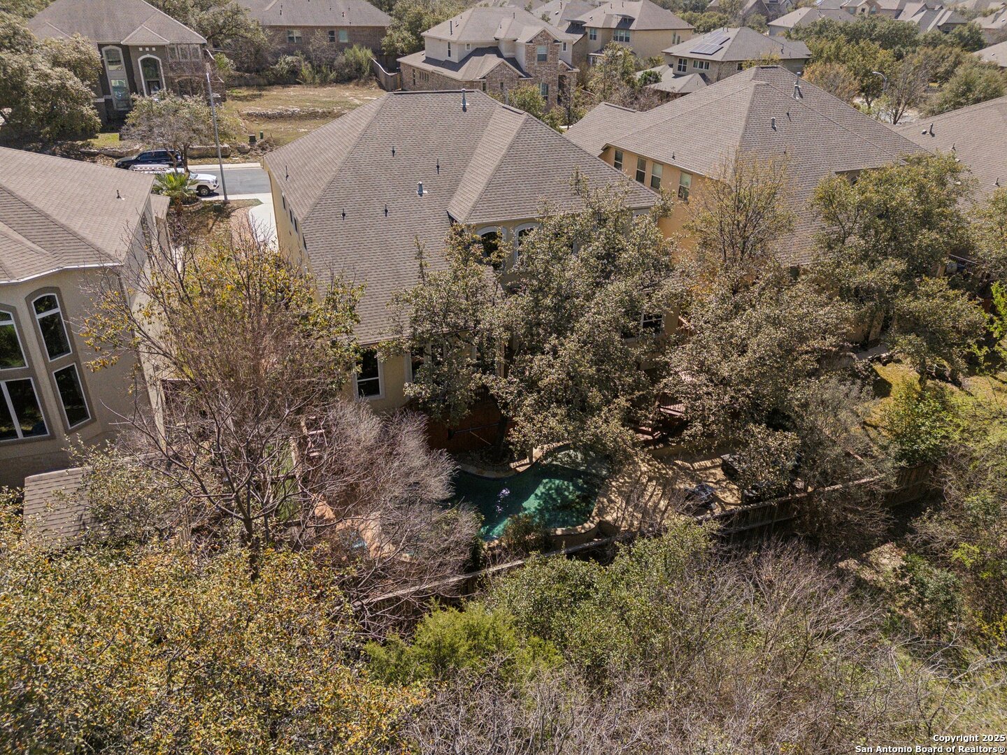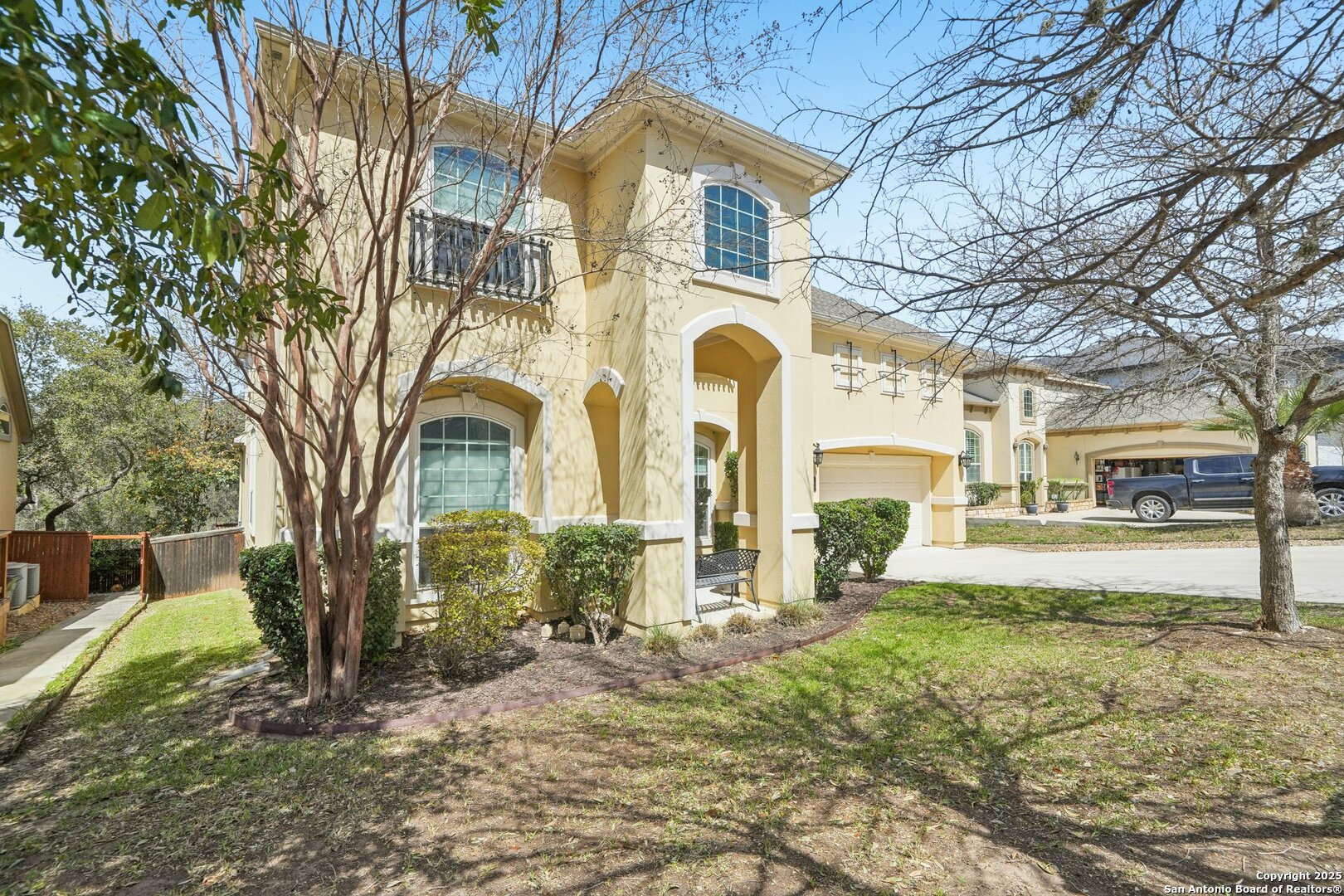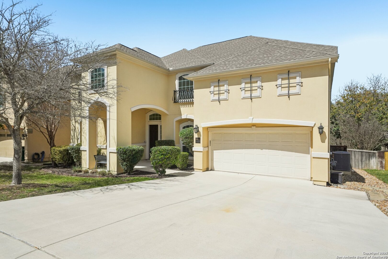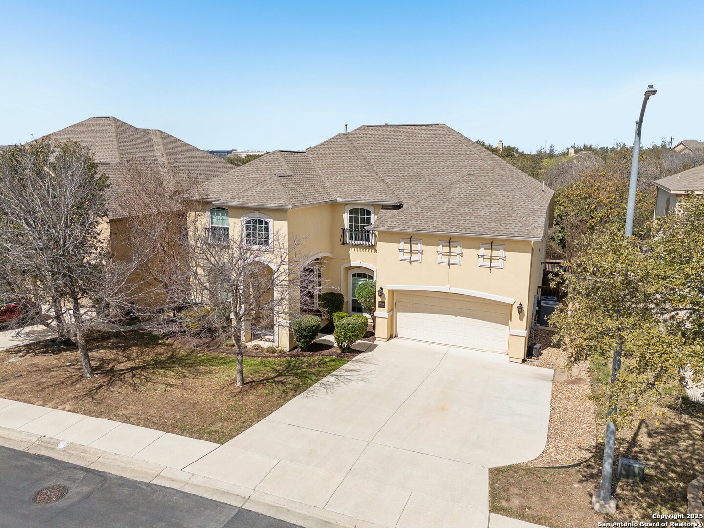 Experience luxury living in this stunning home nestled in the highly sought-after gated community of Aviara with a pool! Boasting five bedrooms and four-and-a-half bathrooms, this home offers soaring ceilings, elegant dark wood floors, and an open-concept layout perfect for modern living. The main level features two en-suite bedrooms, including a private primary suite with direct backyard access through elegant French doors. The spa-like en-suite bath includes a walk-in shower, soaking tub, and a spacious walk-in closet. The chef's kitchen is equipped with granite countertops, an oversized island, maple oak cabinets, stainless steel appliances, a gas cooktop, and a walk-in pantry. The kitchen flows seamlessly into the inviting living area with a fireplace, creating the perfect space for gatherings. Upstairs, enjoy additional spacious bedrooms, a loft, and a media room for entertainment. The backyard is a private oasis with mature trees, a deck, and a sparkling in-ground pool-perfect for Texas summers! Conveniently located near shopping, dining, and major highways. Don't miss out-schedule your showing today!