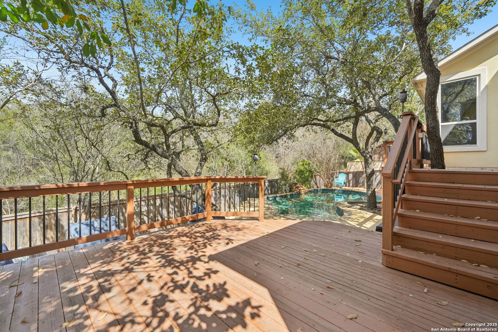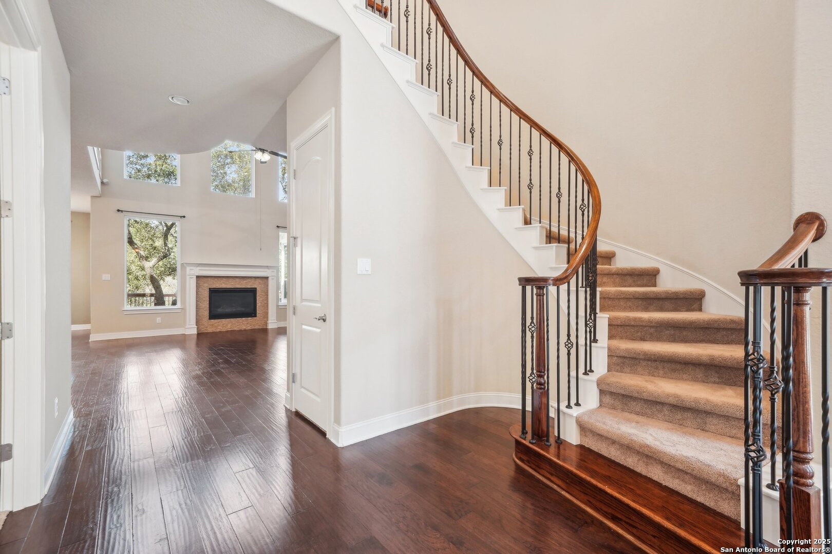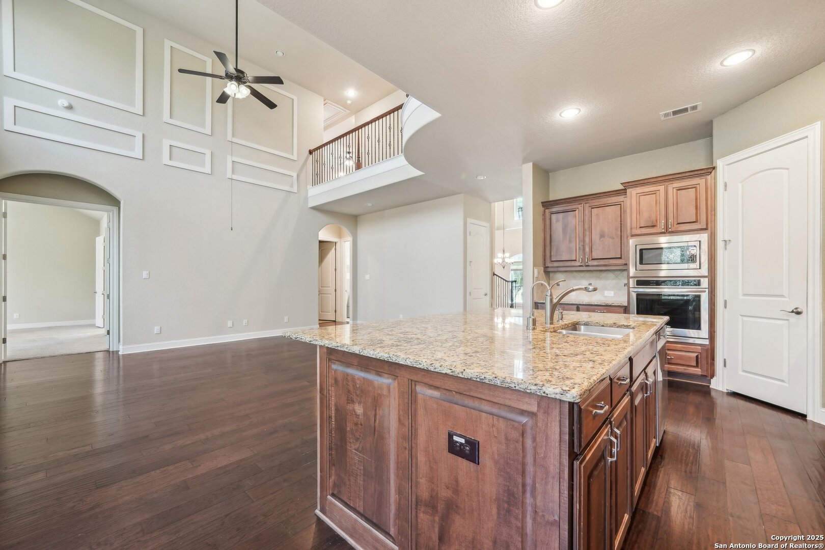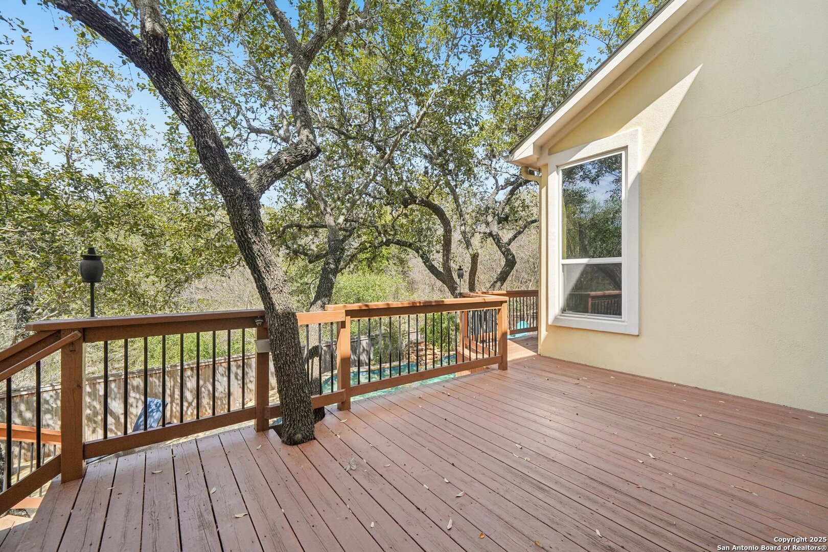Experience luxury living in this stunning home nestled in the highly sought-after gated community of Aviara with a pool! Boasting five bedrooms and four-and-a-half bathrooms, this home offers soaring ceilings, elegant dark wood floors, and an open-concept layout perfect for modern living. The main level features two en-suite bedrooms, including a private primary suite with direct backyard access through elegant French doors. The spa-like en-suite bath includes a walk-in shower, soaking tub, and a spacious walk-in closet. The chef's kitchen is equipped with granite countertops, an oversized island, maple oak cabinets, stainless steel appliances, a gas cooktop, and a walk-in pantry. The kitchen flows seamlessly into the inviting living area with a fireplace, creating the perfect space for gatherings. Upstairs, enjoy additional spacious bedrooms, a loft, and a media room for entertainment. The backyard is a private oasis with mature trees, a deck, and a sparkling in-ground pool-perfect for Texas summers! Conveniently located near shopping, dining, and major highways. Don't miss out-schedule your showing today!