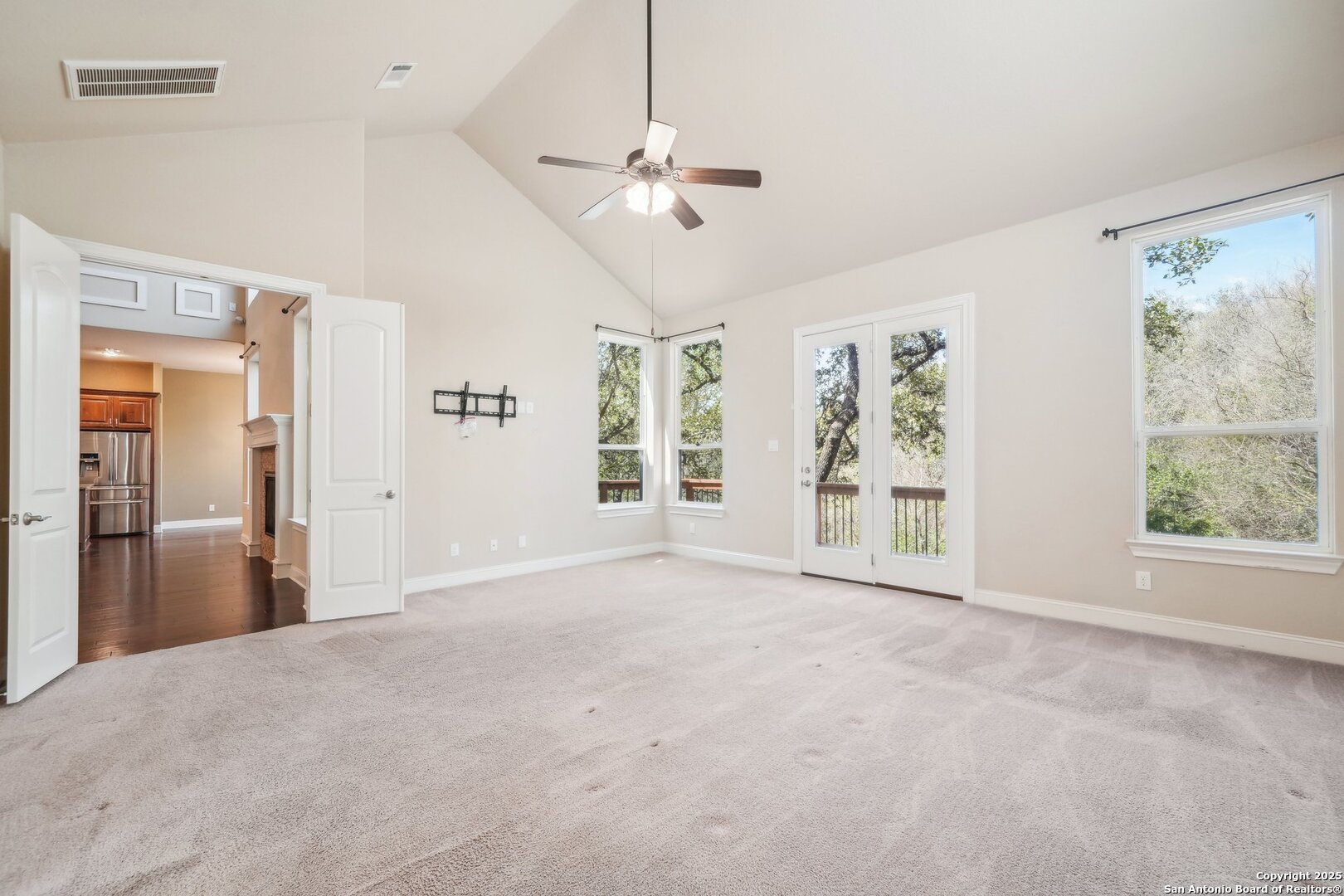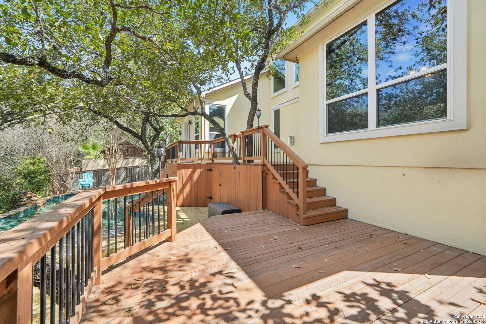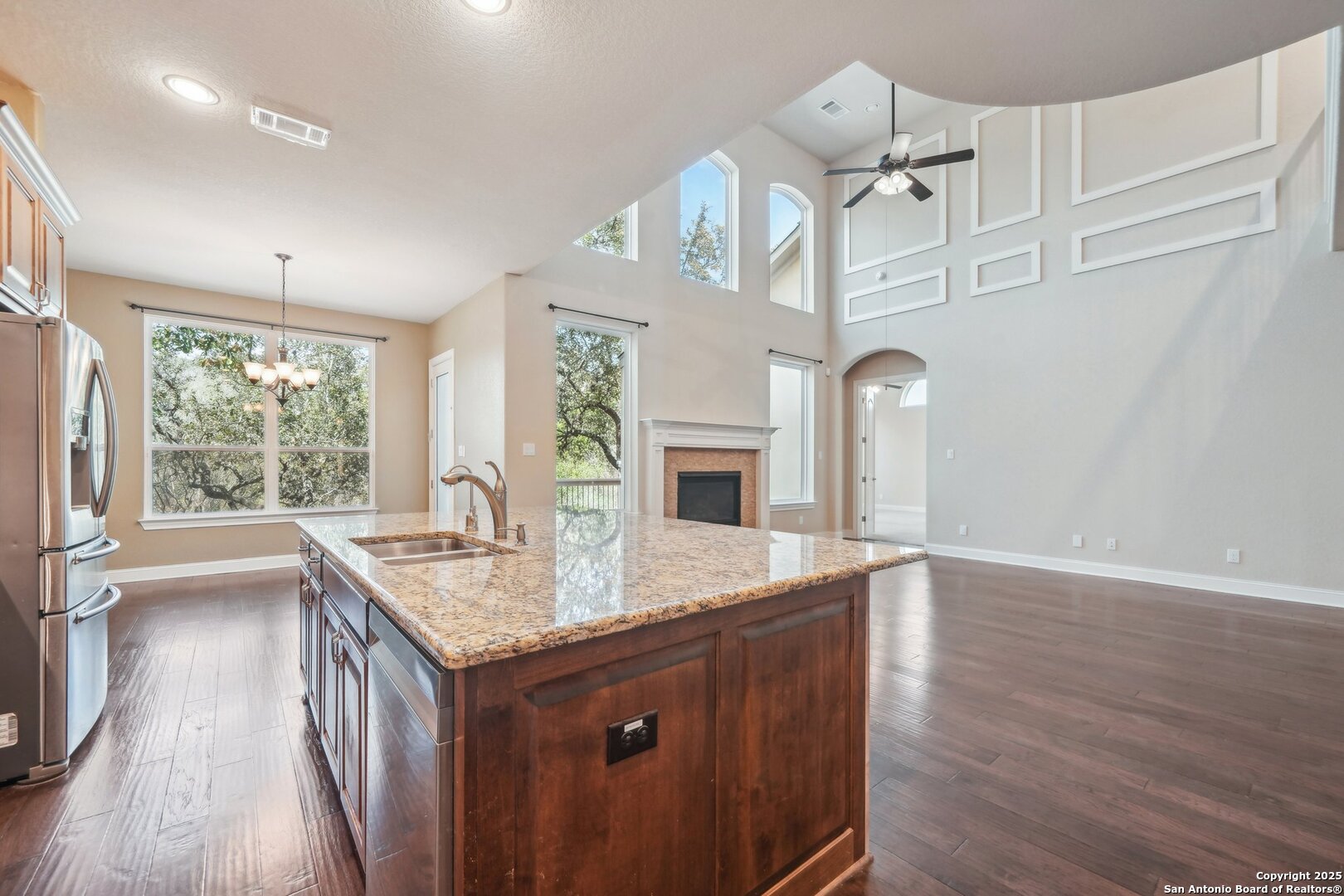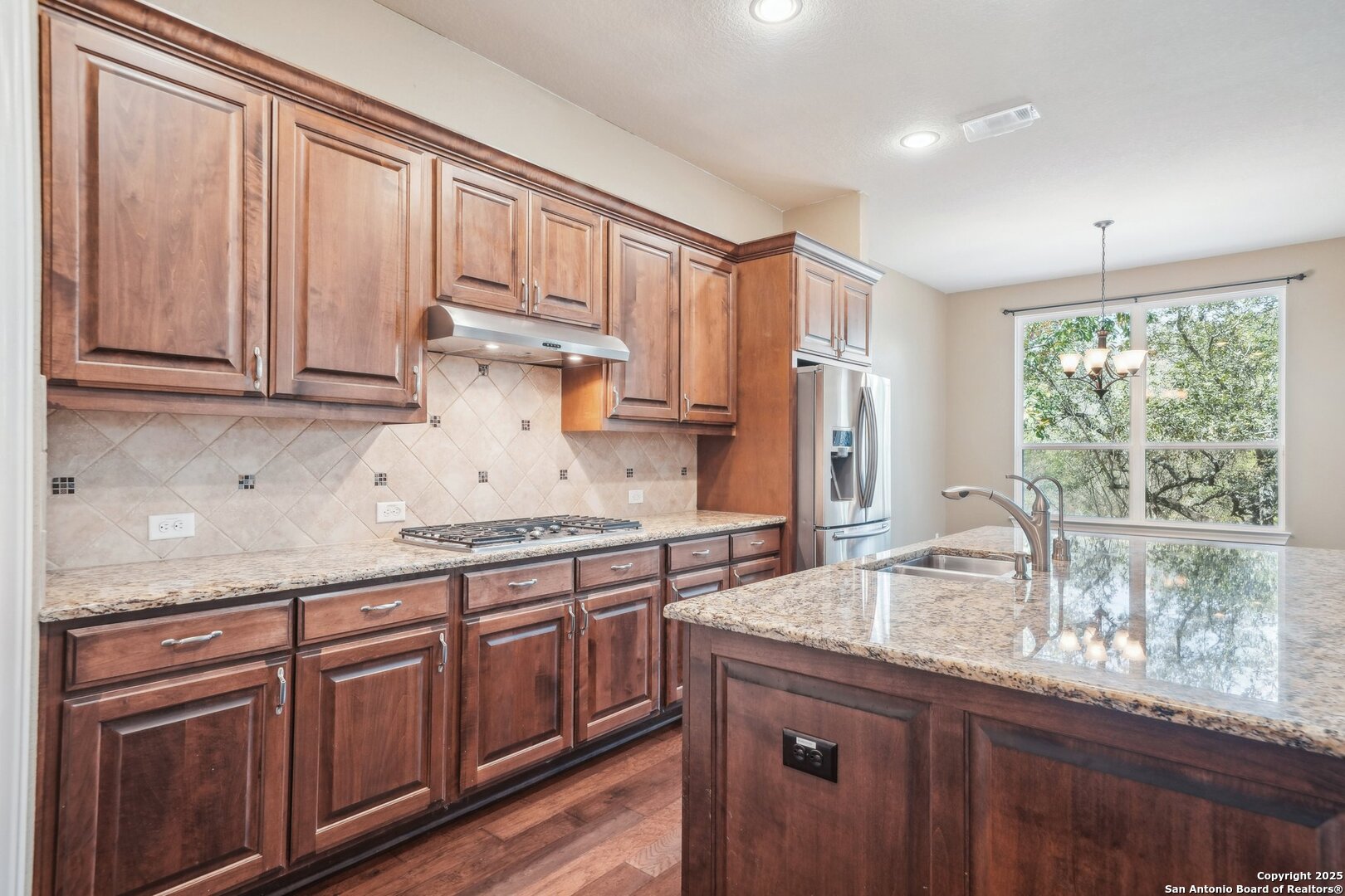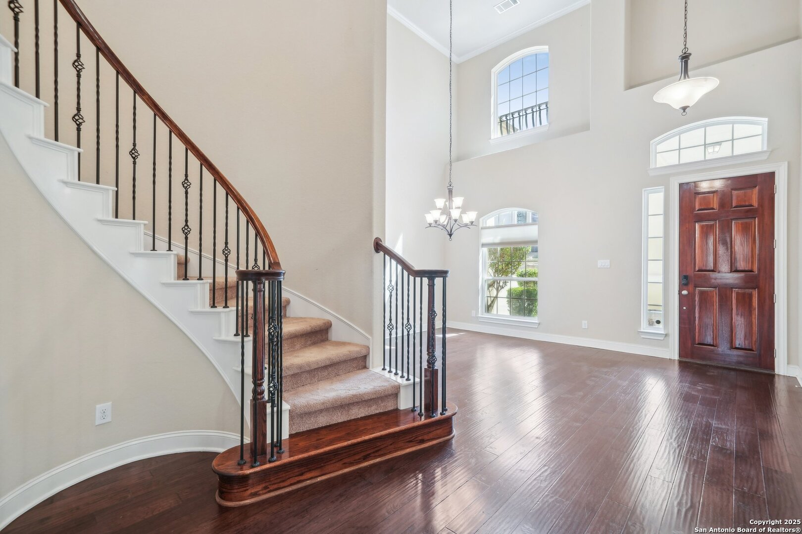 Experience luxury living in this stunning home nestled in the highly sought-after gated community of Aviara with a pool! Boasting five bedrooms and four-and-a-half bathrooms, this home offers soaring ceilings, elegant dark wood floors, and an open-concept layout perfect for modern living. The main level features two en-suite bedrooms, including a private primary suite with direct backyard access through elegant French doors. The spa-like en-suite bath includes a walk-in shower, soaking tub, and a spacious walk-in closet. The chef's kitchen is equipped with granite countertops, an oversized island, maple oak cabinets, stainless steel appliances, a gas cooktop, and a walk-in pantry. The kitchen flows seamlessly into the inviting living area with a fireplace, creating the perfect space for gatherings. Upstairs, enjoy additional spacious bedrooms, a loft, and a media room for entertainment. The backyard is a private oasis with mature trees, a deck, and a sparkling in-ground pool-perfect for Texas summers! Conveniently located near shopping, dining, and major highways. Don't miss out-schedule your showing today!