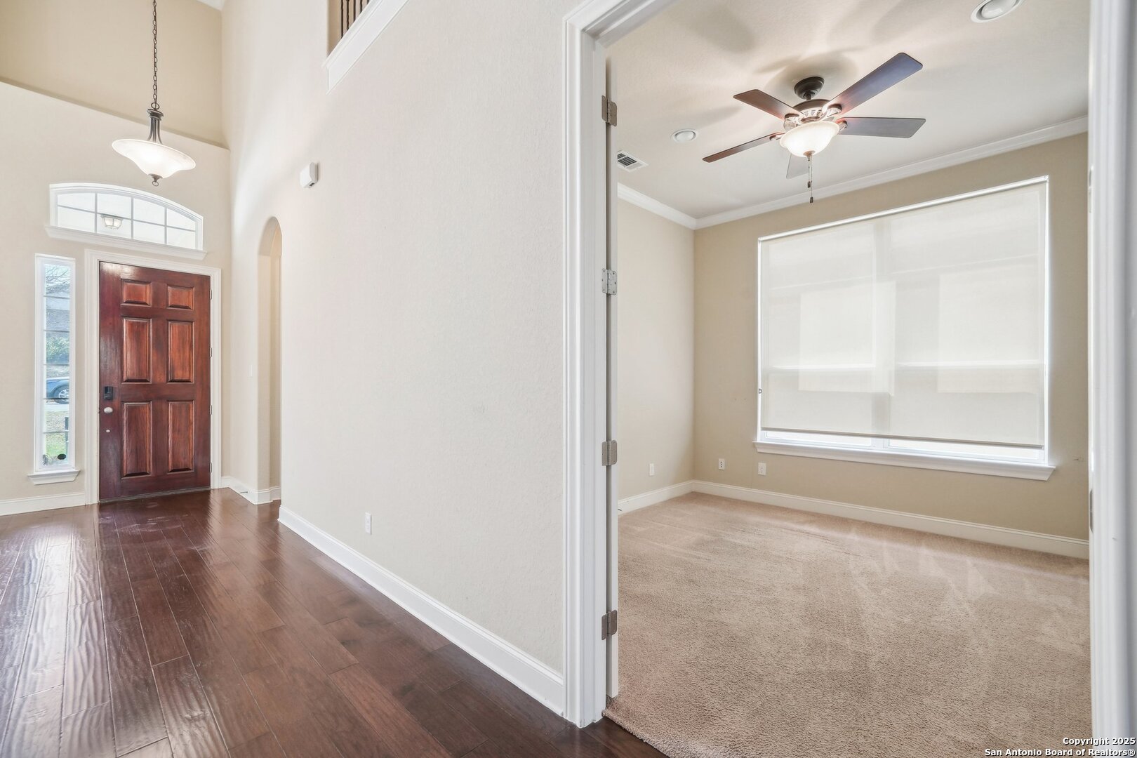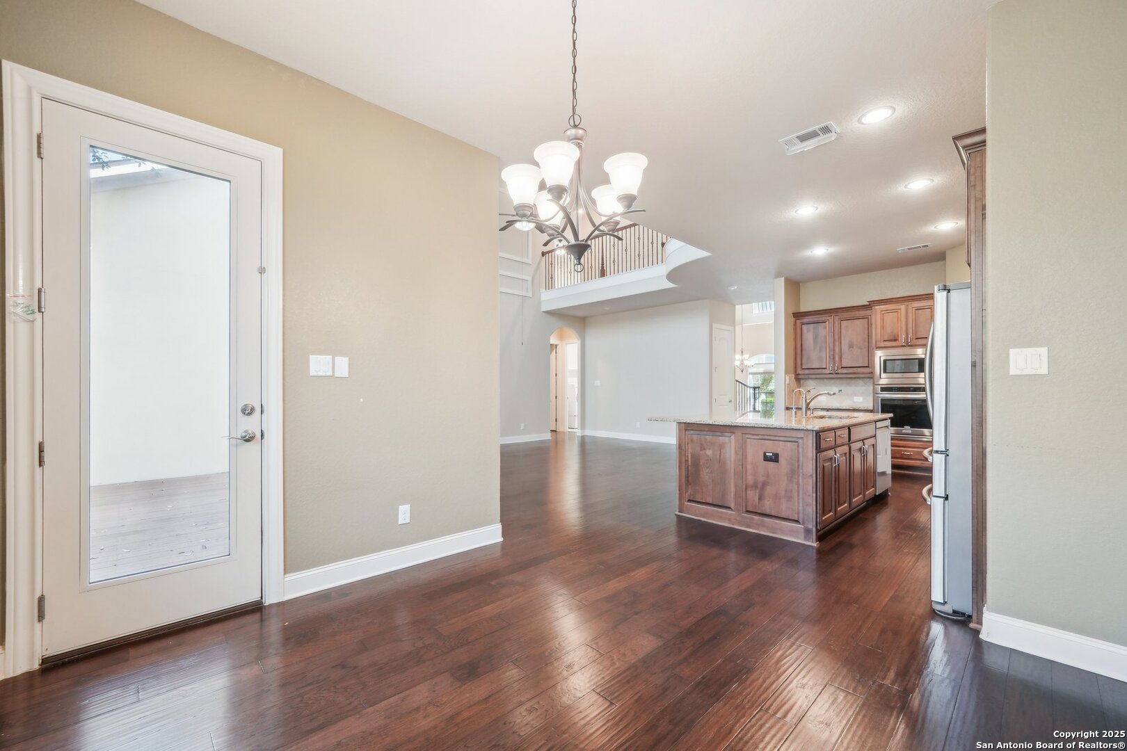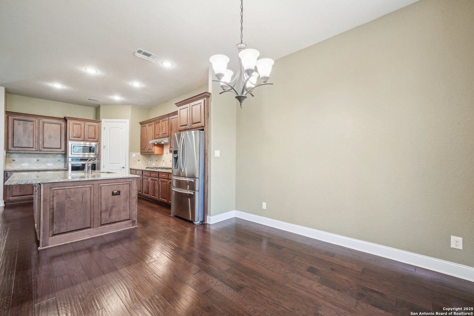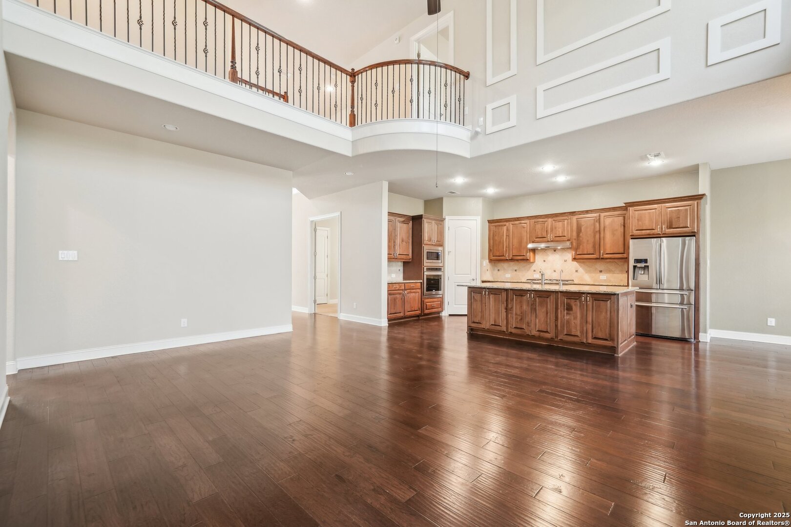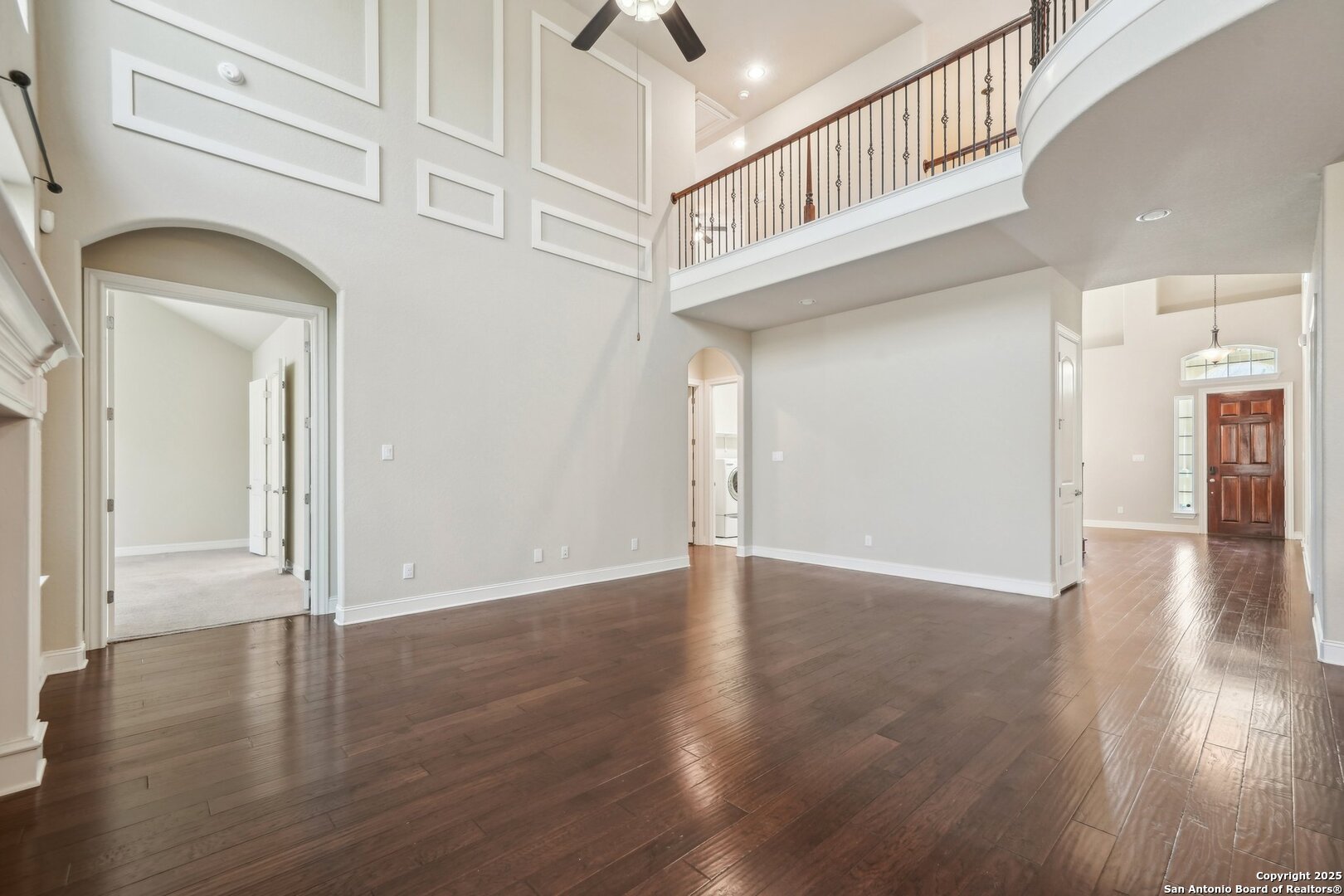 Experience luxury living in this stunning home nestled in the highly sought-after gated community of Aviara with a pool! Boasting five bedrooms and four-and-a-half bathrooms, this home offers soaring ceilings, elegant dark wood floors, and an open-concept layout perfect for modern living. The main level features two en-suite bedrooms, including a private primary suite with direct backyard access through elegant French doors. The spa-like en-suite bath includes a walk-in shower, soaking tub, and a spacious walk-in closet. The chef's kitchen is equipped with granite countertops, an oversized island, maple oak cabinets, stainless steel appliances, a gas cooktop, and a walk-in pantry. The kitchen flows seamlessly into the inviting living area with a fireplace, creating the perfect space for gatherings. Upstairs, enjoy additional spacious bedrooms, a loft, and a media room for entertainment. The backyard is a private oasis with mature trees, a deck, and a sparkling in-ground pool-perfect for Texas summers! Conveniently located near shopping, dining, and major highways. Don't miss out-schedule your showing today!