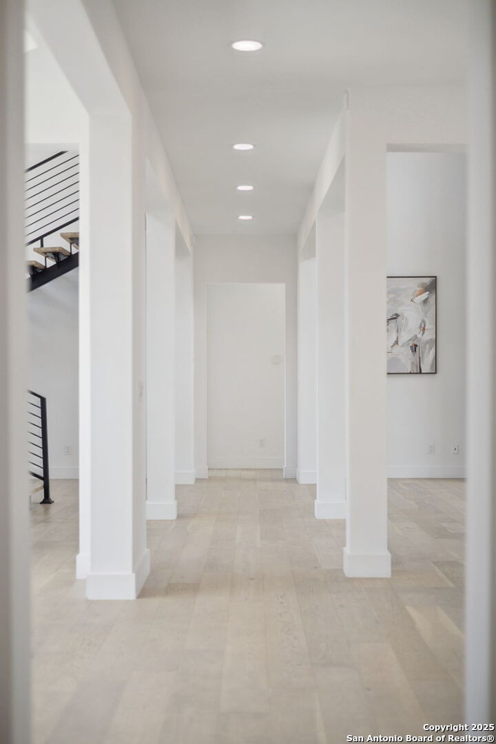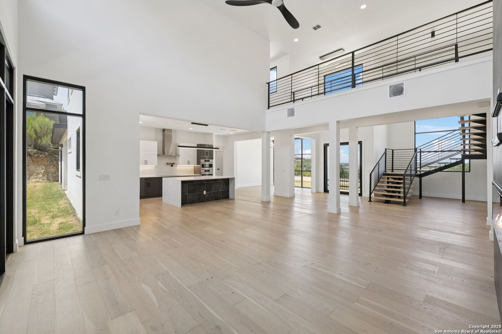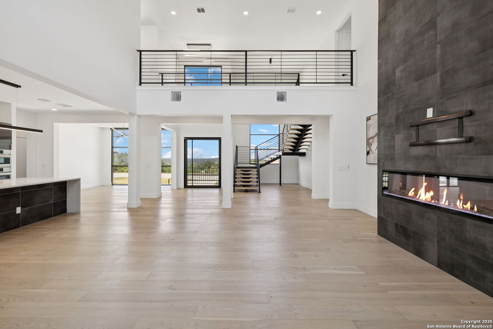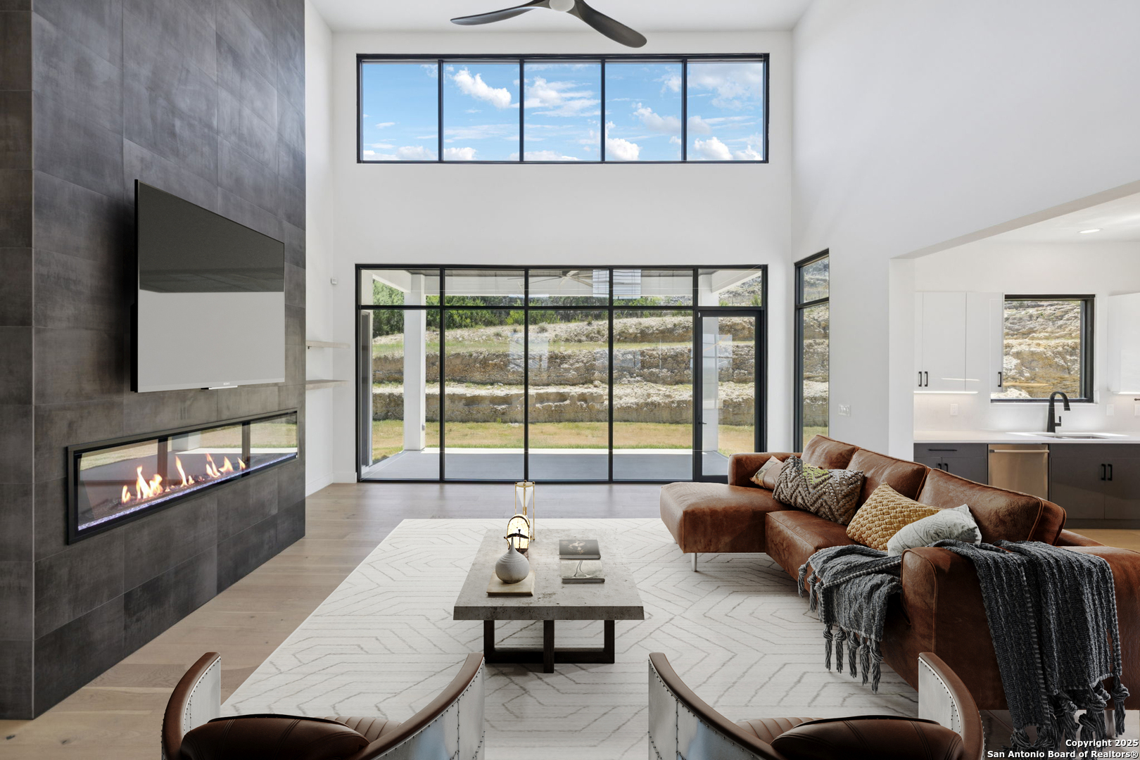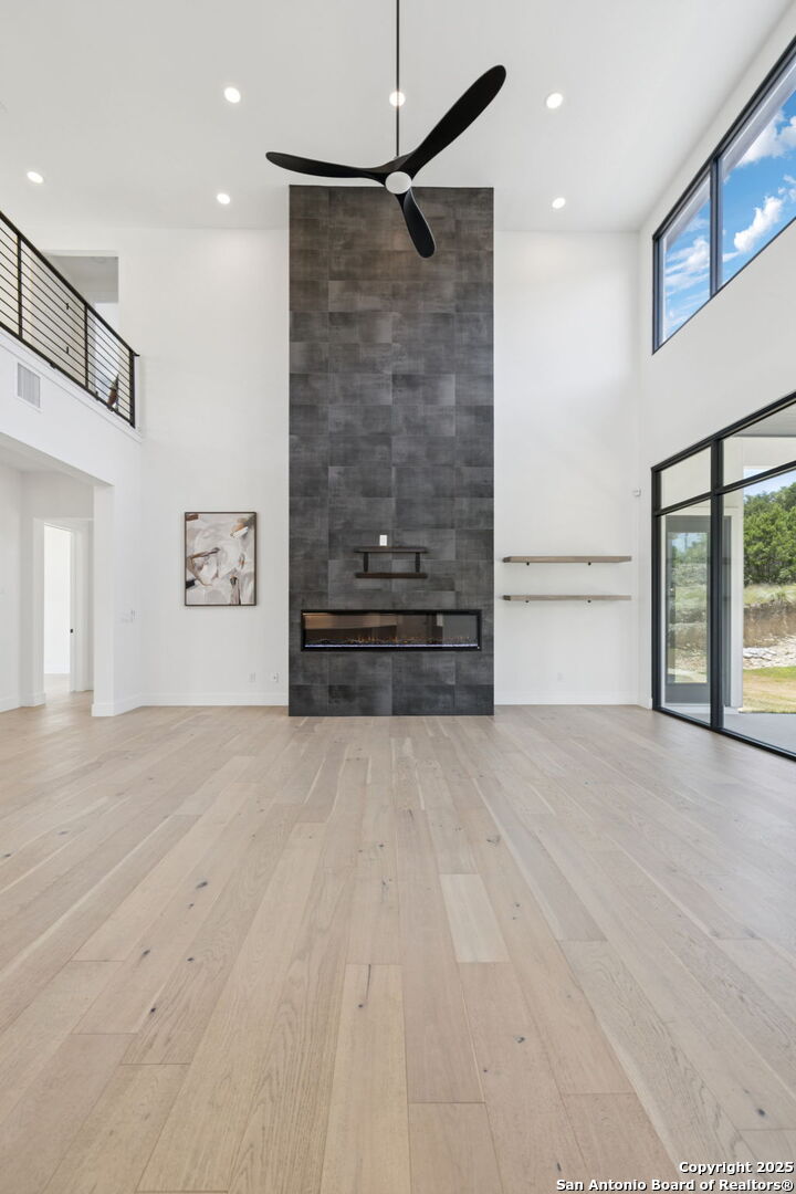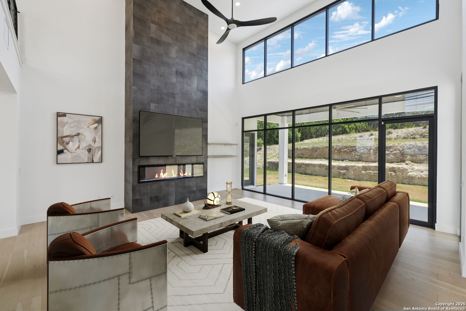 Seller motivated! Where Architectural brilliance meets the edge of the sky. There are homes you see - and homes you remember. Perched high in the prestigious Canyons at Scenic Loop, 9614 Ivory Canyon is unforgettable. It rises from the hillside like a modern sculpture, its crisp white stucco, horizontal limestone, and standing-seam metal roof glowing under the Texas sun by day and shimmering under architectural uplighting by night. From the moment you arrive, the horizon becomes yours - an uninterrupted 180 panorama of Hill Country beauty, visible from nearly every room. Step through the custom pivoting glass front door into a two-story foyer where a floating oak staircase rises beside a dramatic bookmatched marble fireplace. Natural light pours into the great room and dining space, where remote-controlled blinds, high-gloss cabinetry, and wide-plank oak floors showcase the thoughtful balance of elegance and ease. The chef's kitchen is a work of art, outfitted with a full suite of Bosch appliances - including a WiFi-enabled oven - waterfall-edge Calacatta quartz island, and a concealed walk-in pantry doubling as a prep kitchen. The primary suite is a private sanctuary designed to soothe, with floor-to-ceiling windows, boutique-style dual closets, and a spa bath wrapped in marble slabs featuring dual rainfall showers and a freestanding soaking tub. A main-level guest suite with its own living area and ensuite bath provides unmatched privacy for family or long-stay guests. Upstairs, a massive game/theater room with wet bar, storage, invites gatherings both casual and grand. Smart-home wiring throughout - including Control 4 compatibility, iPad wall controllers, and whole-home audio - ensures technology and comfort are always at your fingertips. This is a home where every detail is intentional - from remote blinds and 8-zone audio and zoned HVAC. Just six minutes from daily conveniences and 15 minutes from The Rim, yet wrapped in the quiet grandeur of the Hill Country, this home offers more than luxury - it offers presence. 9614 Ivory Canyon isn't just a home - it's a statement. Modern, bespoke, barely lived in, and built for those who demand elegance without sacrificing comfort. Schedule your private tour today and experience the harmony of design, technology, and livability this home uniquely delivers.