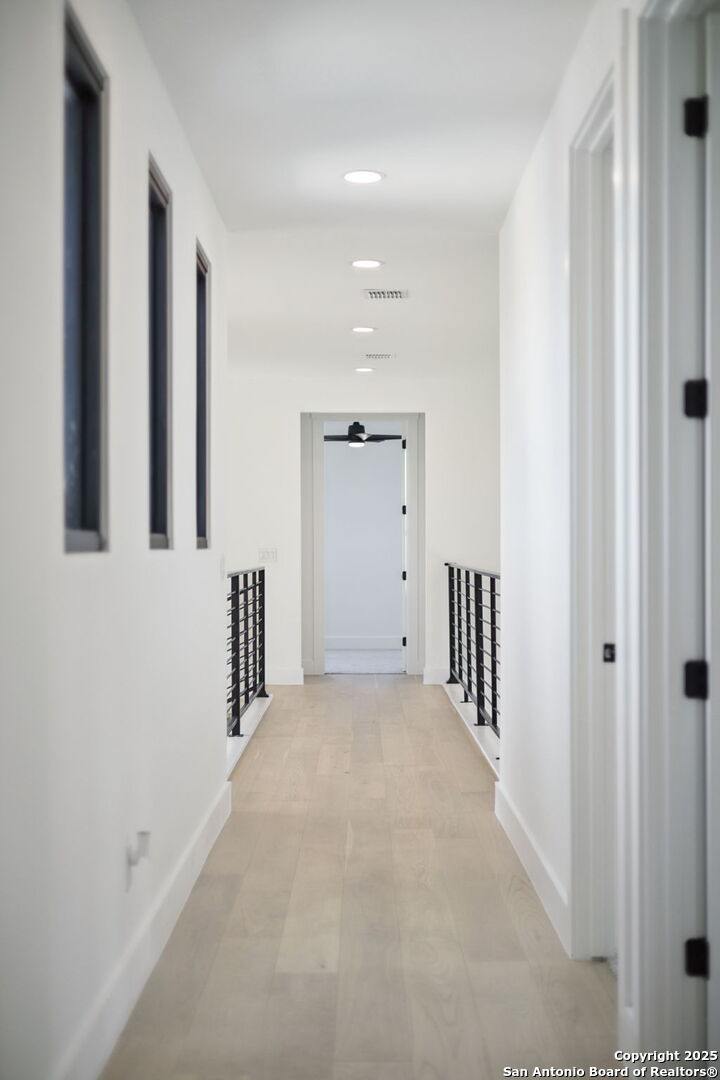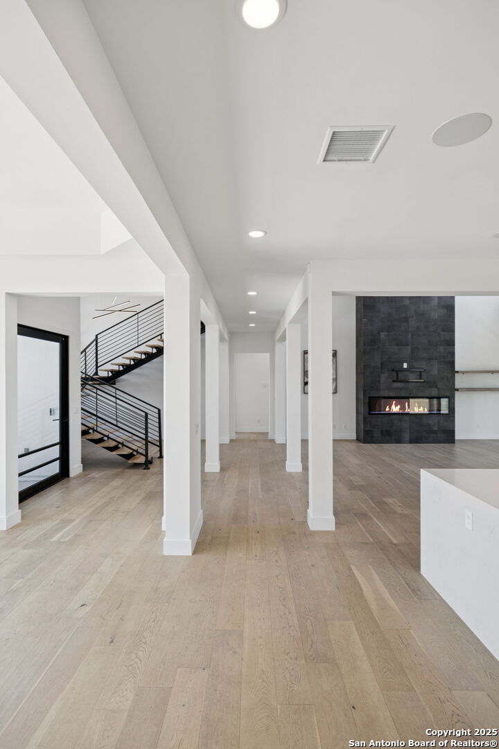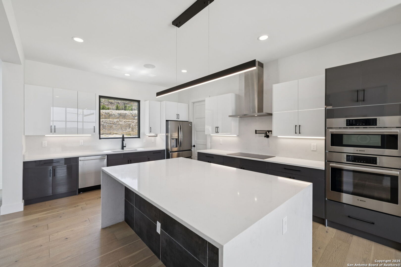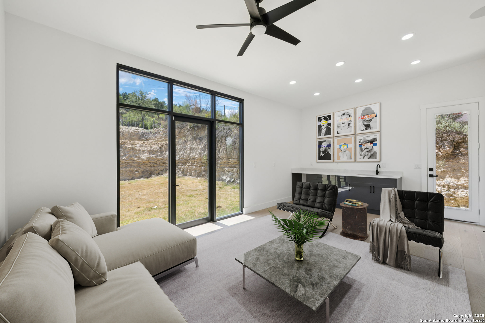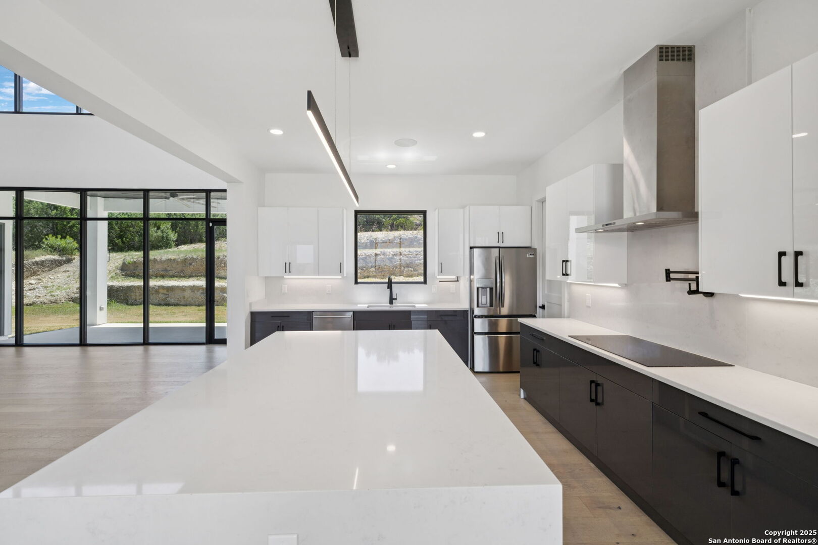 Seller motivated! Where Architectural brilliance meets the edge of the sky. There are homes you see - and homes you remember. Perched high in the prestigious Canyons at Scenic Loop, 9614 Ivory Canyon is unforgettable. It rises from the hillside like a modern sculpture, its crisp white stucco, horizontal limestone, and standing-seam metal roof glowing under the Texas sun by day and shimmering under architectural uplighting by night. From the moment you arrive, the horizon becomes yours - an uninterrupted 180 panorama of Hill Country beauty, visible from nearly every room. Step through the custom pivoting glass front door into a two-story foyer where a floating oak staircase rises beside a dramatic bookmatched marble fireplace. Natural light pours into the great room and dining space, where remote-controlled blinds, high-gloss cabinetry, and wide-plank oak floors showcase the thoughtful balance of elegance and ease. The chef's kitchen is a work of art, outfitted with a full suite of Bosch appliances - including a WiFi-enabled oven - waterfall-edge Calacatta quartz island, and a concealed walk-in pantry doubling as a prep kitchen. The primary suite is a private sanctuary designed to soothe, with floor-to-ceiling windows, boutique-style dual closets, and a spa bath wrapped in marble slabs featuring dual rainfall showers and a freestanding soaking tub. A main-level guest suite with its own living area and ensuite bath provides unmatched privacy for family or long-stay guests. Upstairs, a massive game/theater room with wet bar, storage, invites gatherings both casual and grand. Smart-home wiring throughout - including Control 4 compatibility, iPad wall controllers, and whole-home audio - ensures technology and comfort are always at your fingertips. This is a home where every detail is intentional - from remote blinds and 8-zone audio and zoned HVAC. Just six minutes from daily conveniences and 15 minutes from The Rim, yet wrapped in the quiet grandeur of the Hill Country, this home offers more than luxury - it offers presence. 9614 Ivory Canyon isn't just a home - it's a statement. Modern, bespoke, barely lived in, and built for those who demand elegance without sacrificing comfort. Schedule your private tour today and experience the harmony of design, technology, and livability this home uniquely delivers.