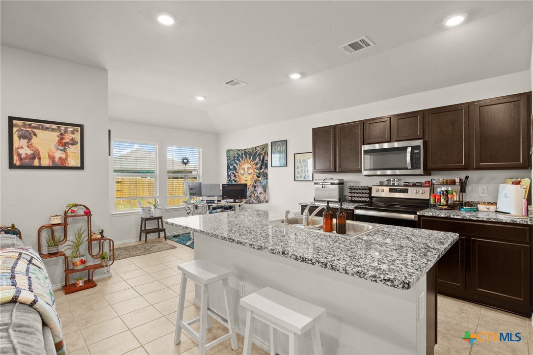 Welcome to your new home in Yowell Ranch! This property was completed in 2021 and has been gently lived in. The home has 3 bedrooms and 2 bathrooms. Its layout connects the living room, kitchen, and dining area, creating the perfect setting for hosting. There is additional lounging space outside under the covered patio. The home’s open floorplan offers comfortability and functionality to make the most of its 1,415 sq/ft. The Yowell Ranch community offers access to a community pool, pet amenities, trails, playgrounds, and sport courts. It is also on the local police station energy-grid, located near Ft. Cavazos, and is a short drive to Temple, Waco, or Austin. ***Seller’s loan is assumable and offers a 4% interest rate*** Schedule your tour today!