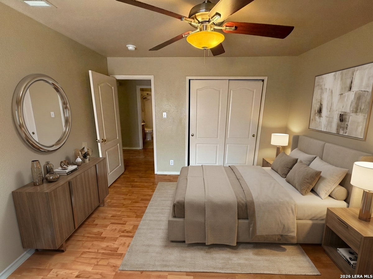 Single Story, 3 bedrooms, 2 baths in 1824 sq.ft. 2 car garage. Open floor plan; combines living & dining; plus eat-in kitchen. Granite counters; stainless steel appliances to include refrigerator. Kitchen includes large pantry, built in desk & bay window. Ensuite Primary bedroom. Primary features separate shower & garden tub; double vanities & large closet. Covered patio in backyard w/privacy fence. Neighborhood park & playground.