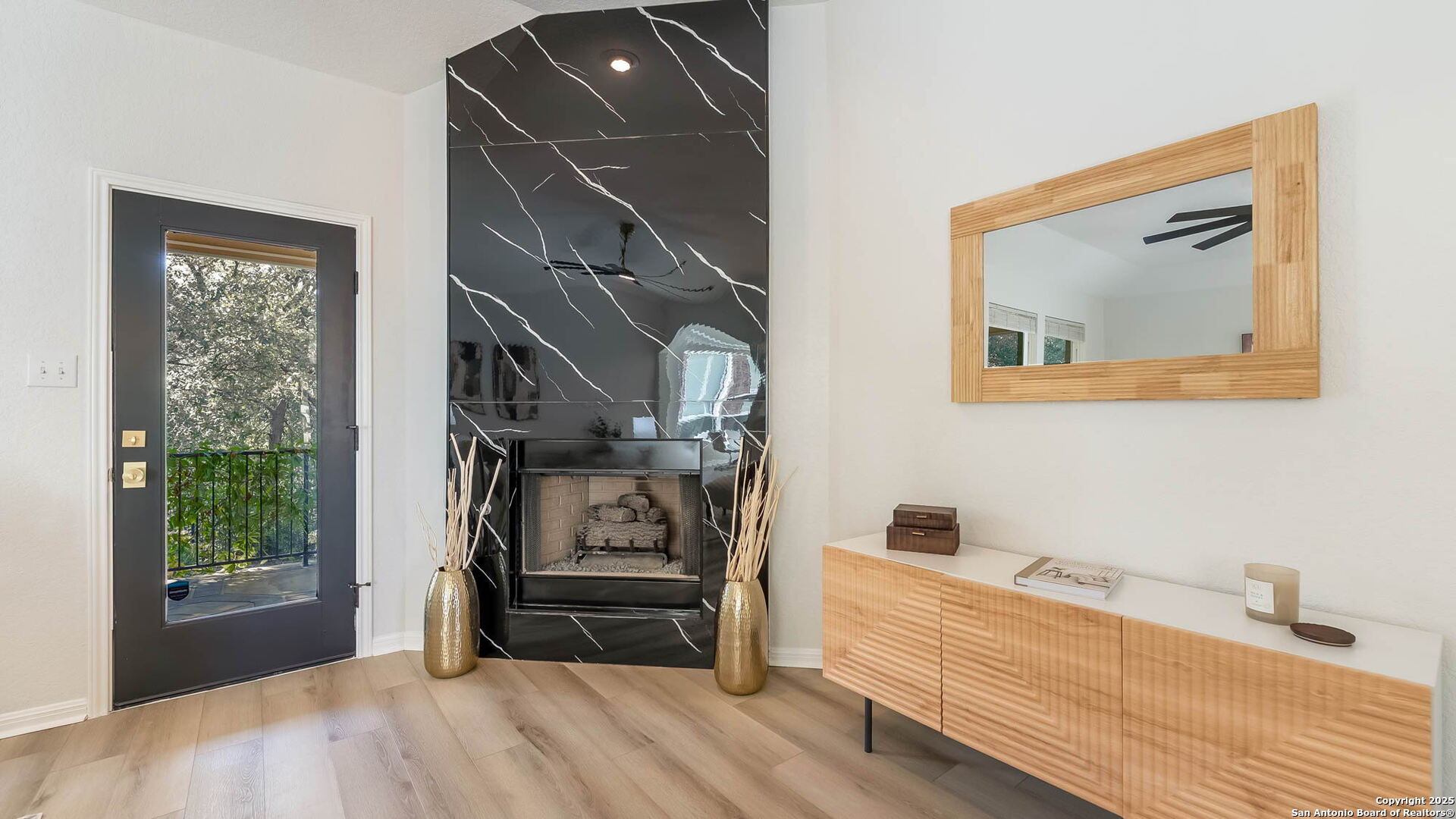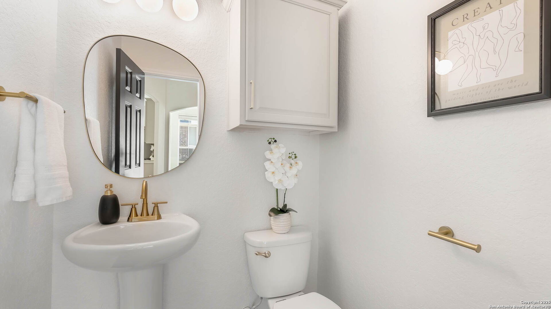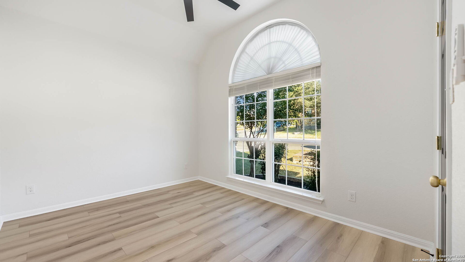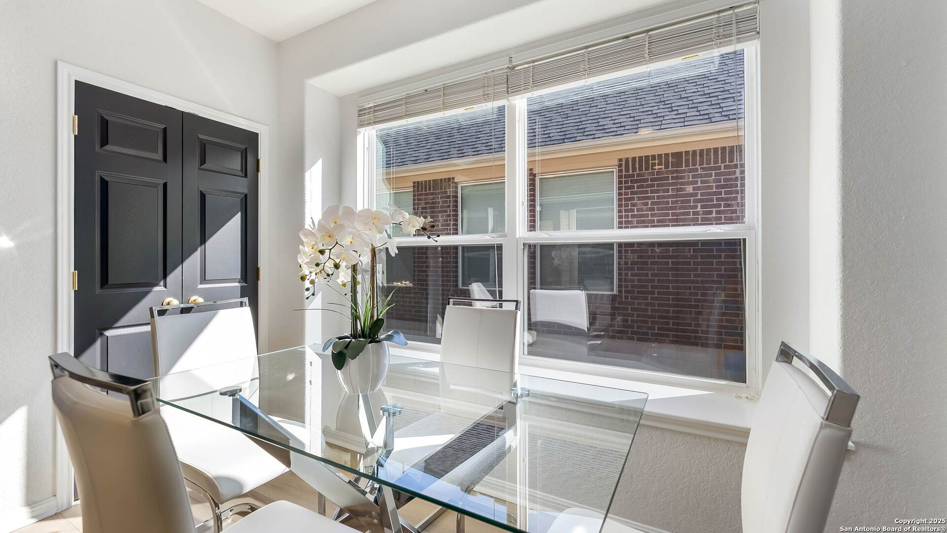 Impeccably designed and move-in ready, this elegant one-story home offers a perfect balance of sophistication and comfort within a private, gated community. Featuring an open-concept layout, this 4-bedroom, 2.5-bath residence showcases beautiful modern finishes, abundant natural light, and seamless flow between living spaces. The gourmet kitchen is the centerpiece of the home boasting sleek quartz countertops, custom cabinetry with gold hardware, stainless steel appliances, a gas cooktop, and double ovens. The kitchen opens effortlessly to the spacious living area, ideal for both entertaining and relaxing. The primary suite is a tranquil retreat with a spa-inspired bath, dual vanities, and generous closet space. Three additional bedrooms provide flexibility for guests, family, or a home office. Enjoy serene greenbelt views from the covered patio perfect for outdoor dining and peaceful evenings surrounded by mature trees. Located in a small, well-maintained gated neighborhood, this home offers privacy and convenience just minutes from Loop 1604, Highway 151, top-rated schools, major employers, and premier shopping and dining destinations.