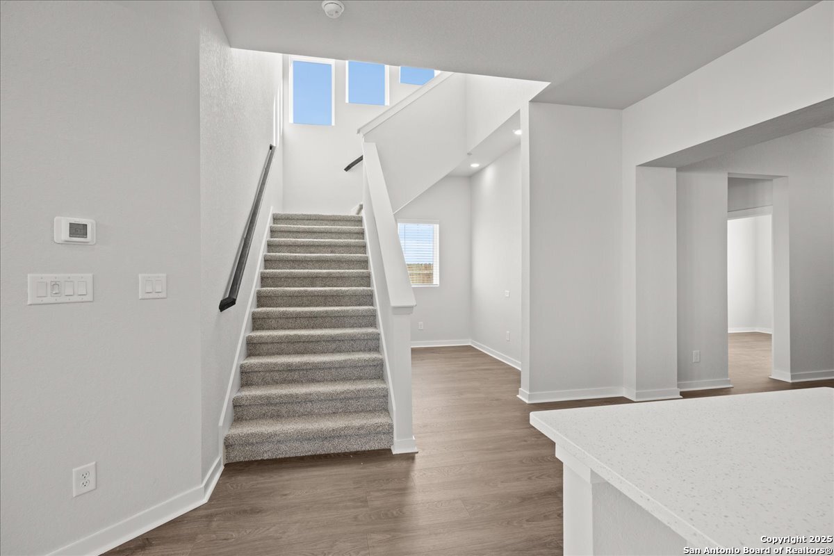 MOVE IN READY!! Welcome home to this stunning 4-bedroom, 3-bathroom home with a dedicated study & a spacious game room. 3 foot extension on the garage. The family room boasts soaring vaulted ceilings and large windows, creating a bright and inviting space. The kitchen island seamlessly overlooks the family room and breakfast area, offering a true open-concept design perfect for gatherings. Enjoy luxurious finishes throughout, including upgraded tile flooring, quartz countertops, and upgraded cabinetry with soft-close drawers. The primary retreat features separate vanities, a large walk-in shower, and an expansive walk-in closet. The thoughtful layout includes a secondary bedroom with a full bath on the main floor, while upstairs, you'll find a spacious game room, two additional bedrooms, and a full bathroom. This home is designed for convenience and comfort with full sod, a sprinkler system, a covered rear patio, and more.