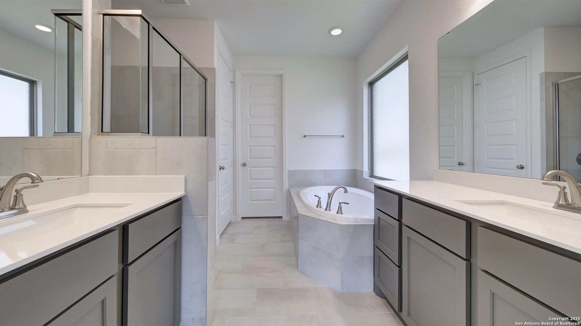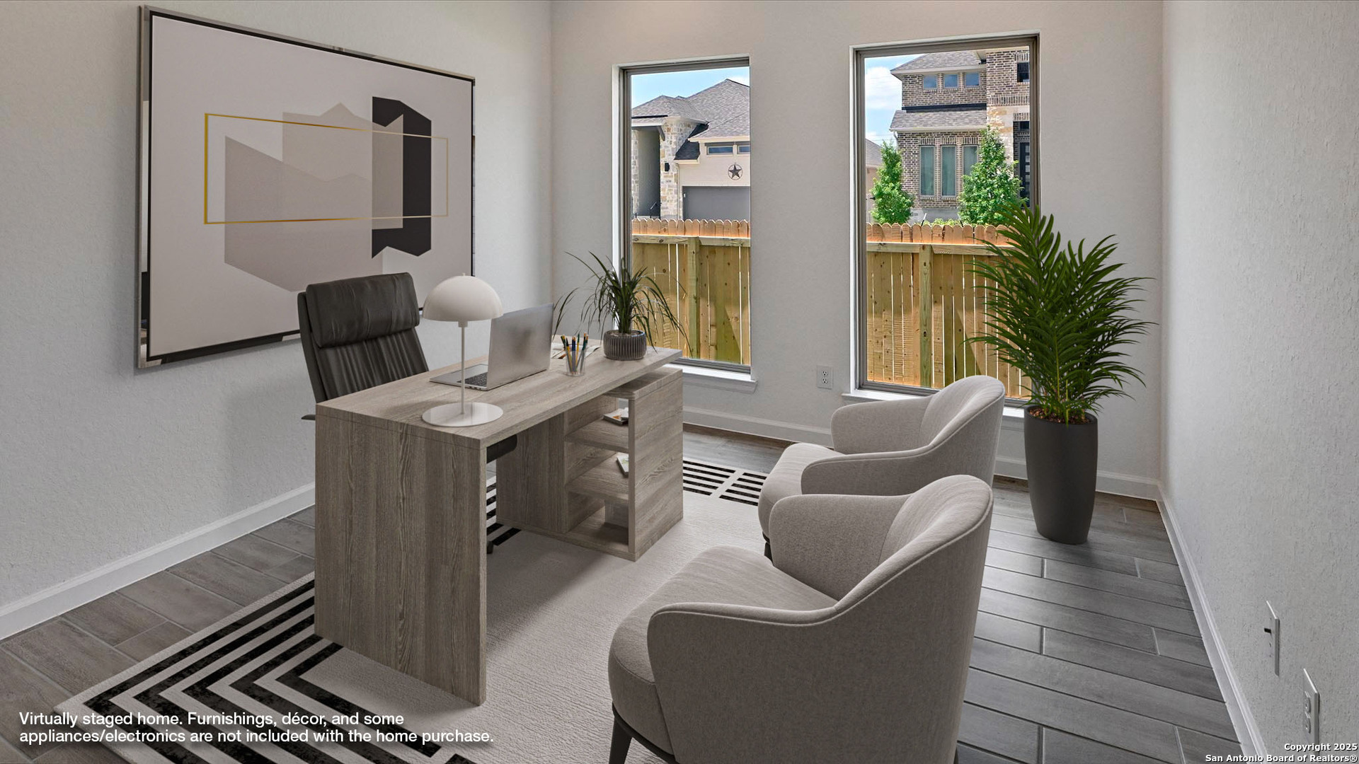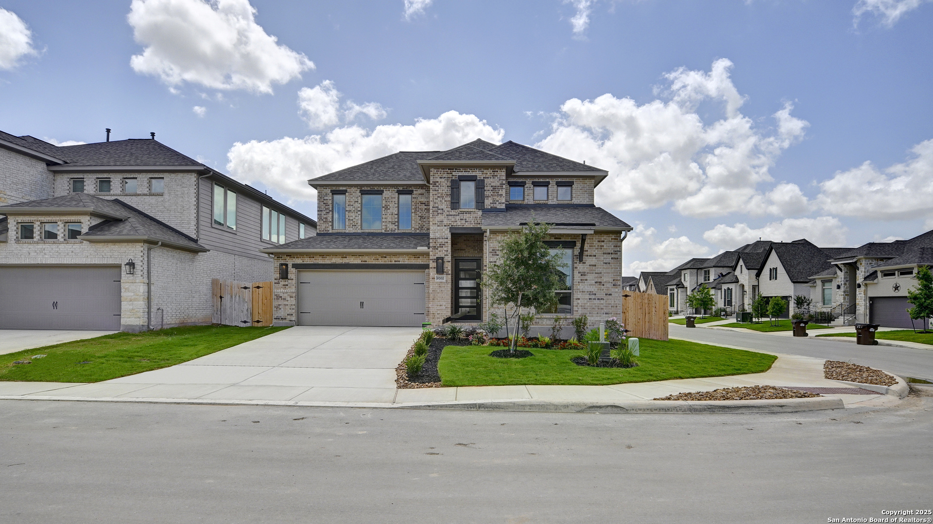 MOVE-IN READY!! Home office with French doors set at two-story entry. Two-story family room with wall of windows opens to kitchen and dining area. Kitchen hosts inviting island with built-in seating space and 5-burner gas cooktop. First-floor primary suite includes dual vanities, garden tub, separate glass-enclosed shower and large walk-in closet in primary bath. A second bedroom is downstairs. Two secondary bedrooms and a game room are upstairs. Extended covered backyard patio and 5-zone sprinkler system. Two-car garage.