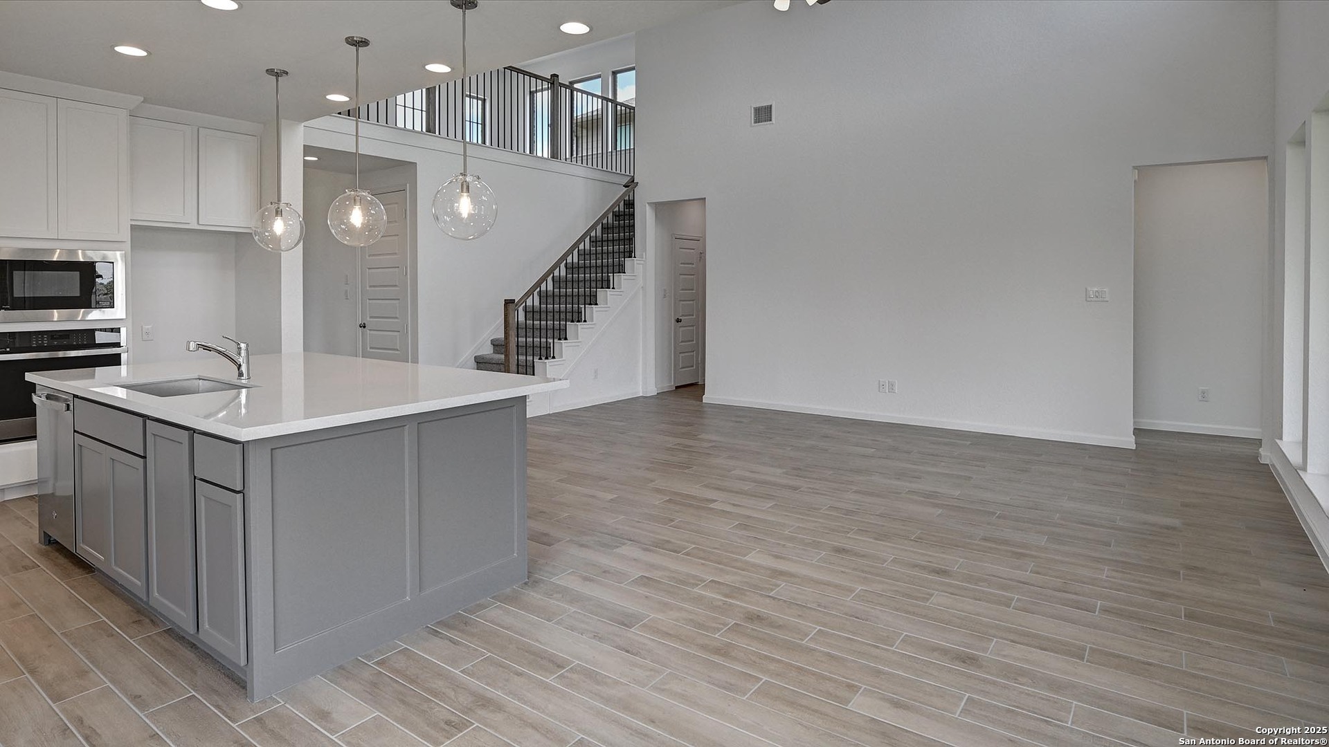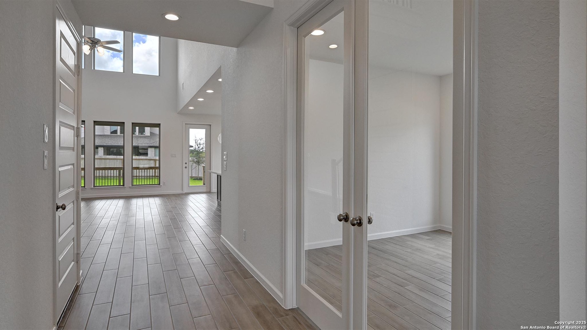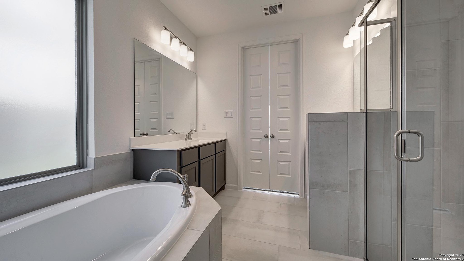 MOVE-IN READY!! Home office with French doors set at two-story entry. Two-story family room with wall of windows opens to kitchen and dining area. Kitchen hosts inviting island with built-in seating space and 5-burner gas cooktop. First-floor primary suite includes dual vanities, garden tub, separate glass-enclosed shower and large walk-in closet in primary bath. A second bedroom is downstairs. Two secondary bedrooms and a game room are upstairs. Extended covered backyard patio and 5-zone sprinkler system. Two-car garage.