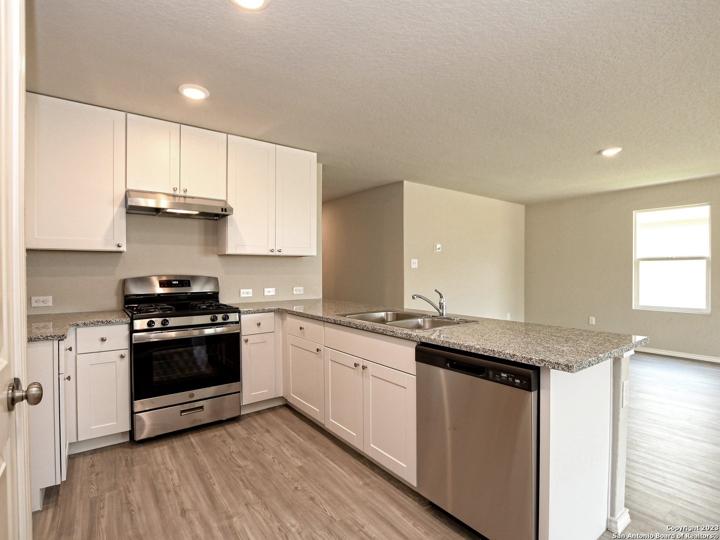 4 BR / 2 BA, 1,667 SF home. This single-story home has an efficient layout which includes four bedrooms in total with the owner's suite strategically placed toward the back of the home for added privacy. The living area flows into the family room, dining area and modern kitchen in an open layout for maximized interior space. Waterwheel is a master-planned community nestled in the hill country near Alamo Ranch! The community features luxurious amenities such as a community clubhouse, fitness center, swimming pool, and community trails. It's prime location embodies a rural lifestyle with easy access to urban conveniences. Homeowners enjoy scenic green belt views and have convenient access to the beautiful Government Canyon State Park with over 40 miles of nature trails. Waterwheel provides a wonderful community atmosphere in the Northside ISD school zone, one of the sought-after school districts in San Antonio. This community is also close to Alamo Ranch shopping, Westover Hills employers, La Cantera, The Rim, Six Flags Fiesta Texas, and Lackland AFB!